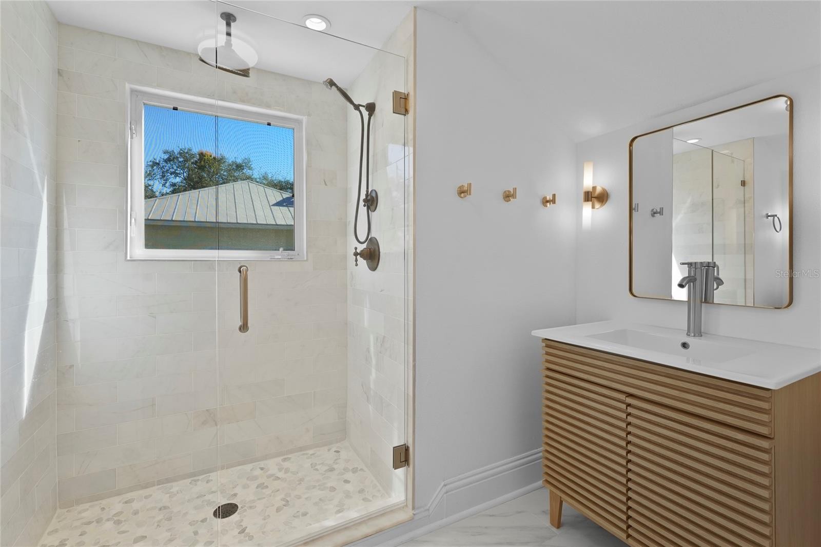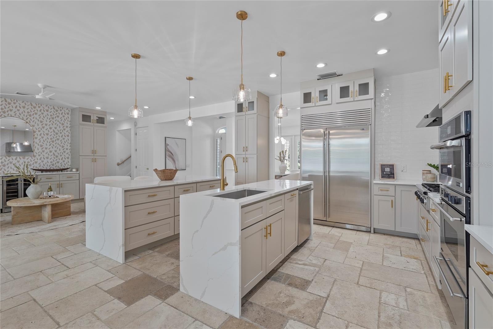 Welcome to this stunning 5-bedroom, 5-bathroom home ideally located near the Hillview District, downtown Sarasota, and just minutes from to Southside Elementary School. Enjoy the best of “West of the Trail” living in this beautifully updated residence that blends timeless architectural charm with modern luxury. The home features a brand-new gourmet kitchen highlighted by a striking double island with quartz waterfall countertops, stainless steel appliances including a gas cooktop and hood, a wine refrigerator, and a custom buffet offering abundant storage. A true formal dining room provides the perfect setting for entertaining. Original travertine tile floors flow throughout the expansive first floor, leading to the primary suite with a large walk-in closet and a spa-inspired ensuite with direct access to the pool deck. The split floor plan also includes a private guest suite with its own ensuite bath. Floor-to-ceiling windows fill the home with natural light and showcase views of the exceptional backyard. Upstairs, you’ll find three additional bedrooms and two fully updated bathrooms. The backyard is truly a rare find—a private oasis featuring a spacious pool, covered lanai, pergola, outdoor shower, storage shed, and full fencing. With its generous size and proximity to downtown, this outdoor space is perfect for relaxing, entertaining, or creating lasting memories. This exceptional home offers comfort, elegance, and an unbeatable location—an opportunity not to be missed.