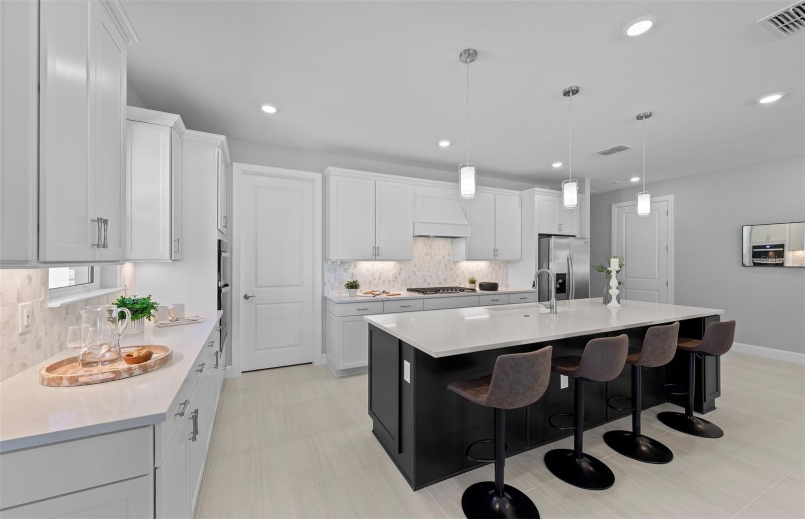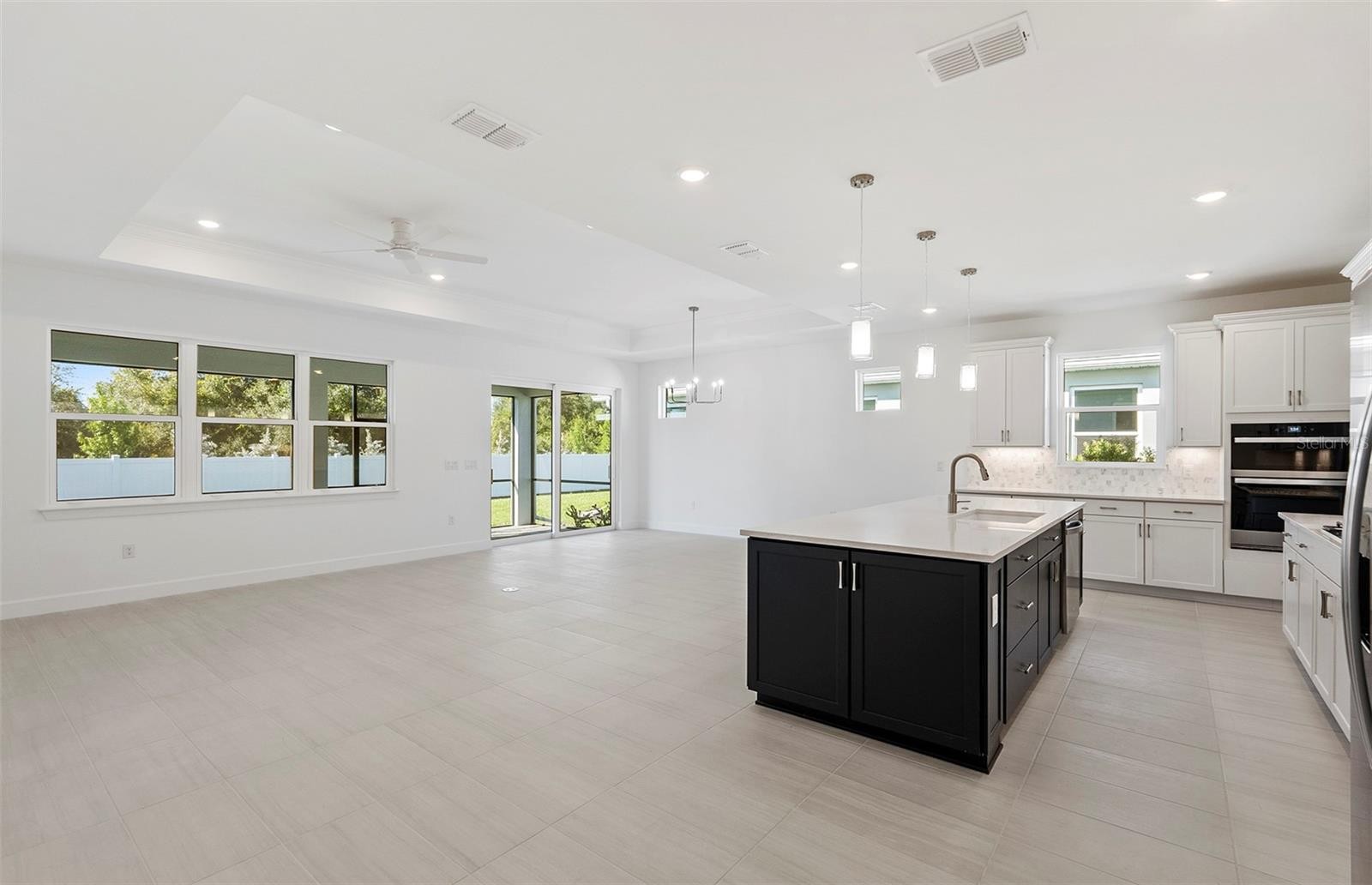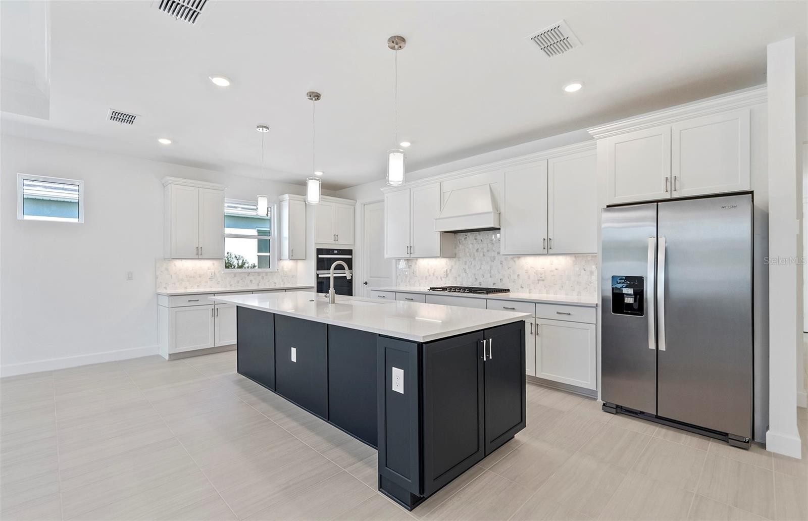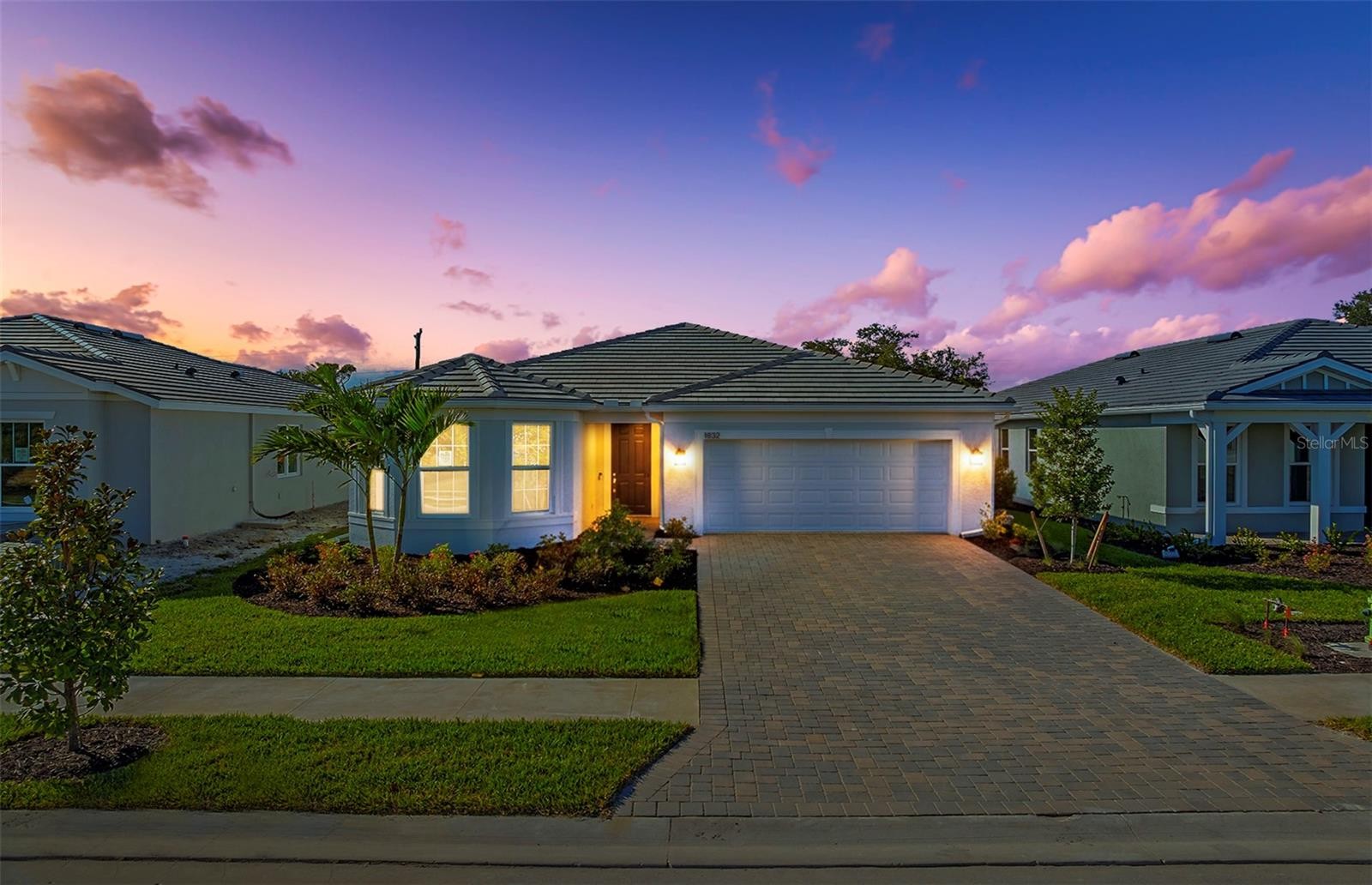 This beautifully crafted Palmary floor plan offers 3 bedrooms, 2 baths, and a 2-car garage, nestled in a brand new boutique style community. This home features an open floor plan with porcelain tile flooring throughout, impact-resistant doors and windows, a tray ceiling in the gathering room and a tankless water heater. The kitchen is a chef’s delight with gas cooking, a built-in microwave/wall oven combo with white cabinetry and contrasting Admiral blue center island with Silestone countertops. Other features include an enlarged shower in the owner's bedroom, upgraded laundry rm w/sink and cabinetry, spacious screened lanai and washer/dryer/fridge are included! Relaxation is easy at the community pool and cabana area while cooking at the BBQ grill area. Don't miss this opportunity to own a brand-new home with designer finishes! Photos are from a furnished model. Options for this home may vary.