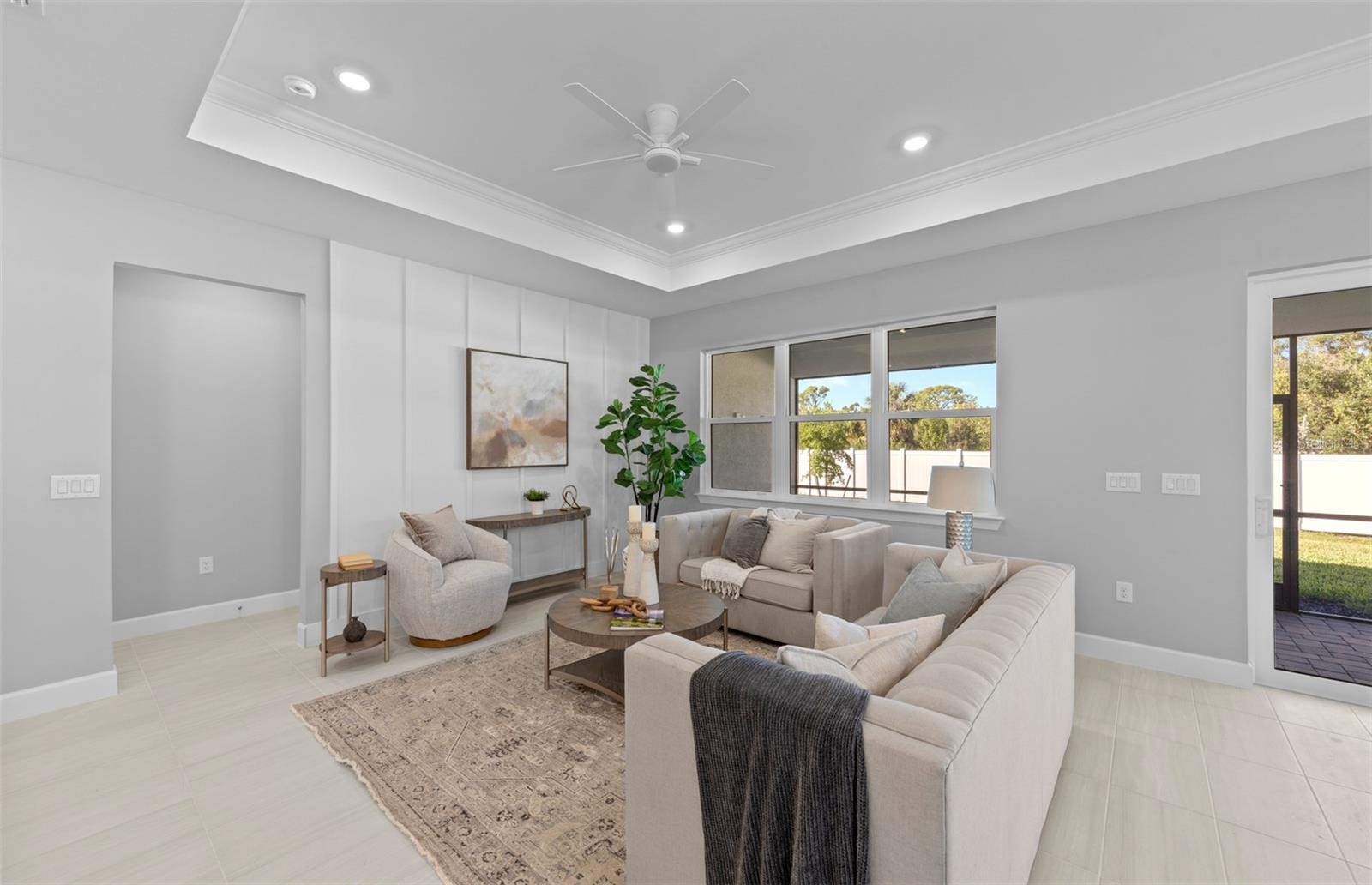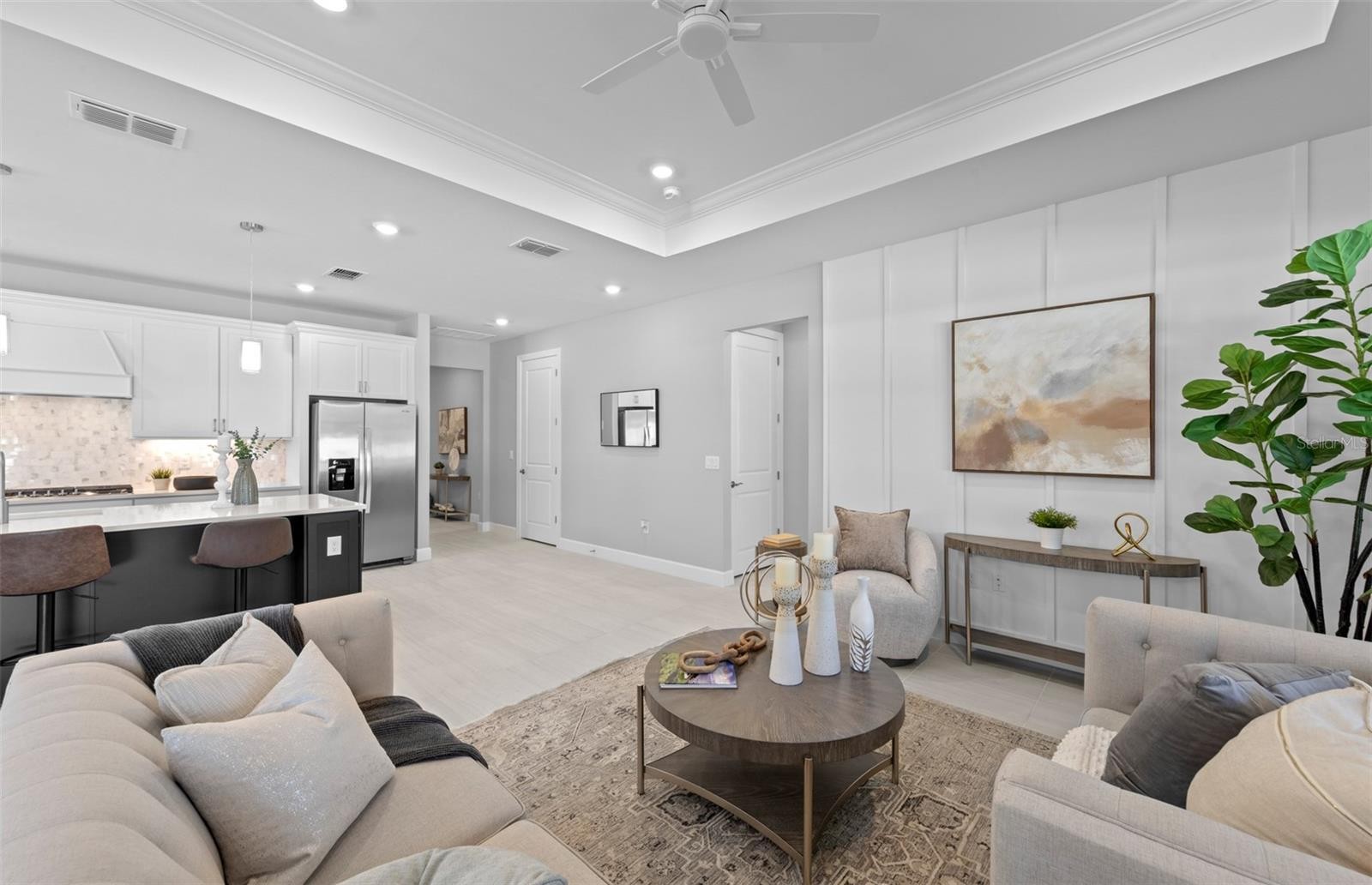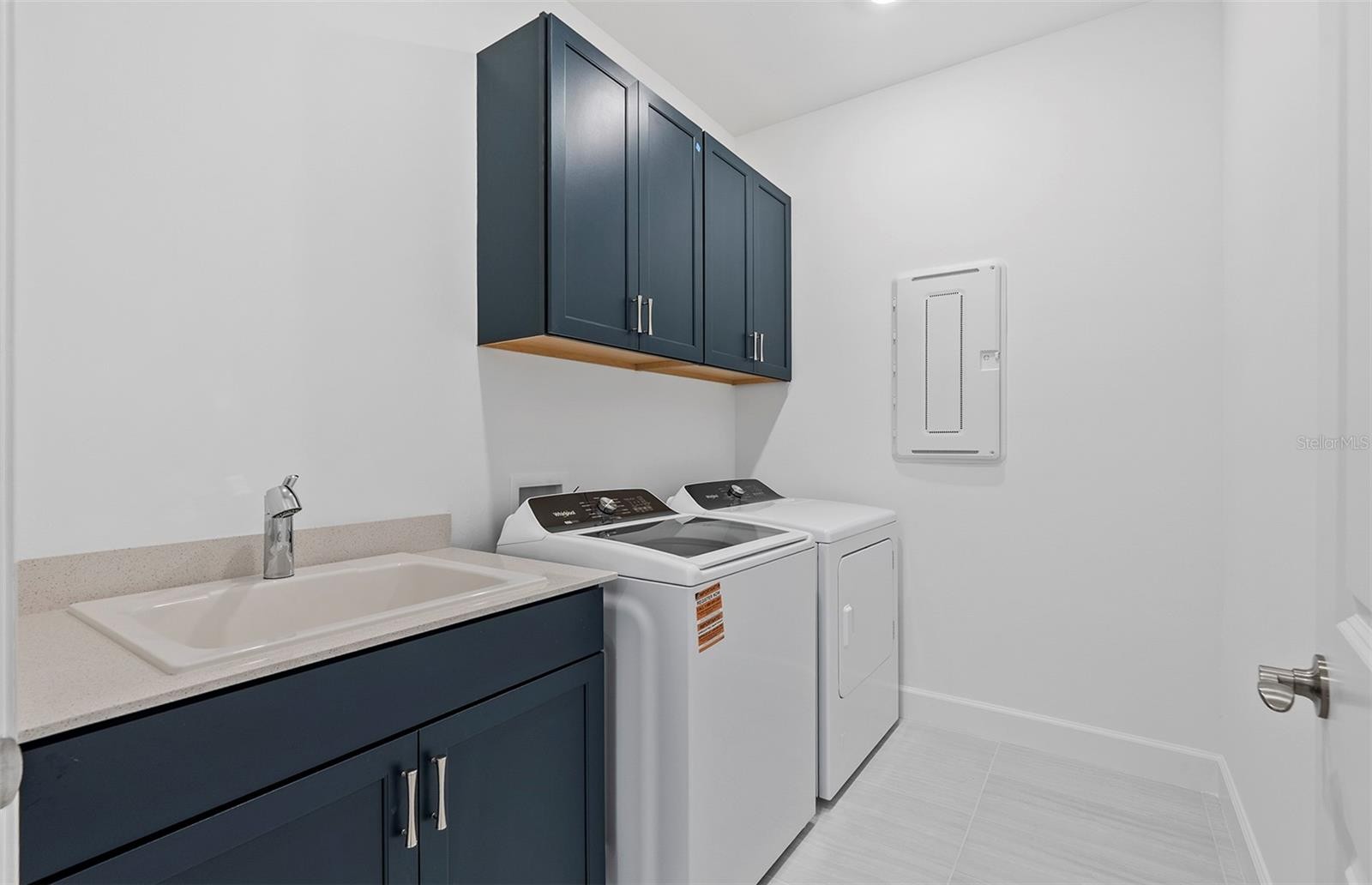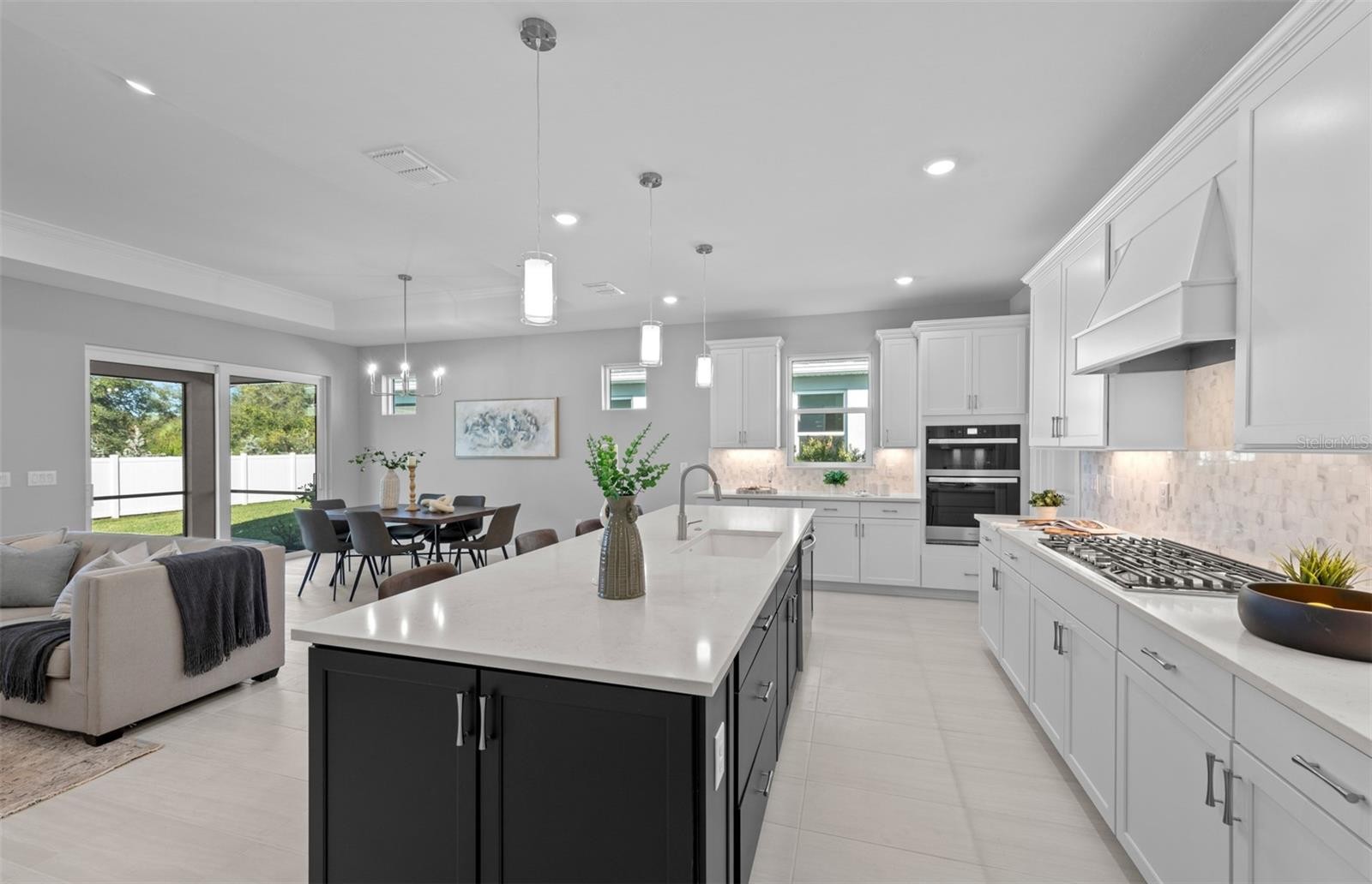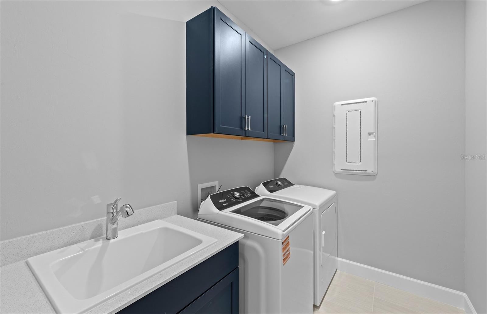 This beautifully crafted Palmary floor plan offers 3 bedrooms, 2 baths, and a 2-car garage, nestled in a brand new boutique style community. This home features an open floor plan with porcelain tile flooring throughout, impact-resistant doors and windows, a tray ceiling in the gathering room and a tankless water heater. The kitchen is a chef’s delight with gas cooking, a built-in microwave/wall oven combo with white cabinetry and contrasting Admiral blue center island with Silestone countertops. Other features include an enlarged shower in the owner's bedroom, upgraded laundry rm w/sink and cabinetry, spacious screened lanai and washer/dryer/fridge are included! Relaxation is easy at the community pool and cabana area while cooking at the BBQ grill area. Don't miss this opportunity to own a brand-new home with designer finishes! Photos are from a furnished model. Options for this home may vary.