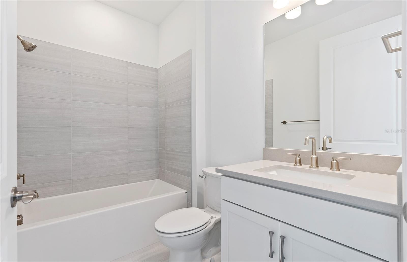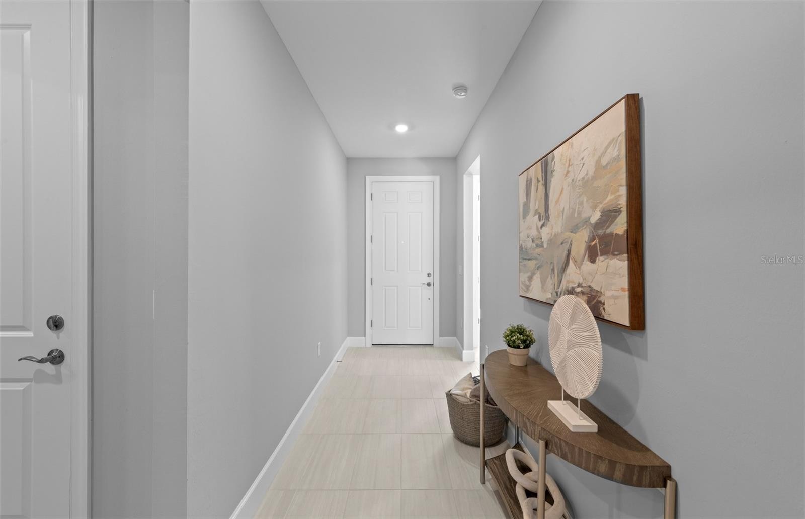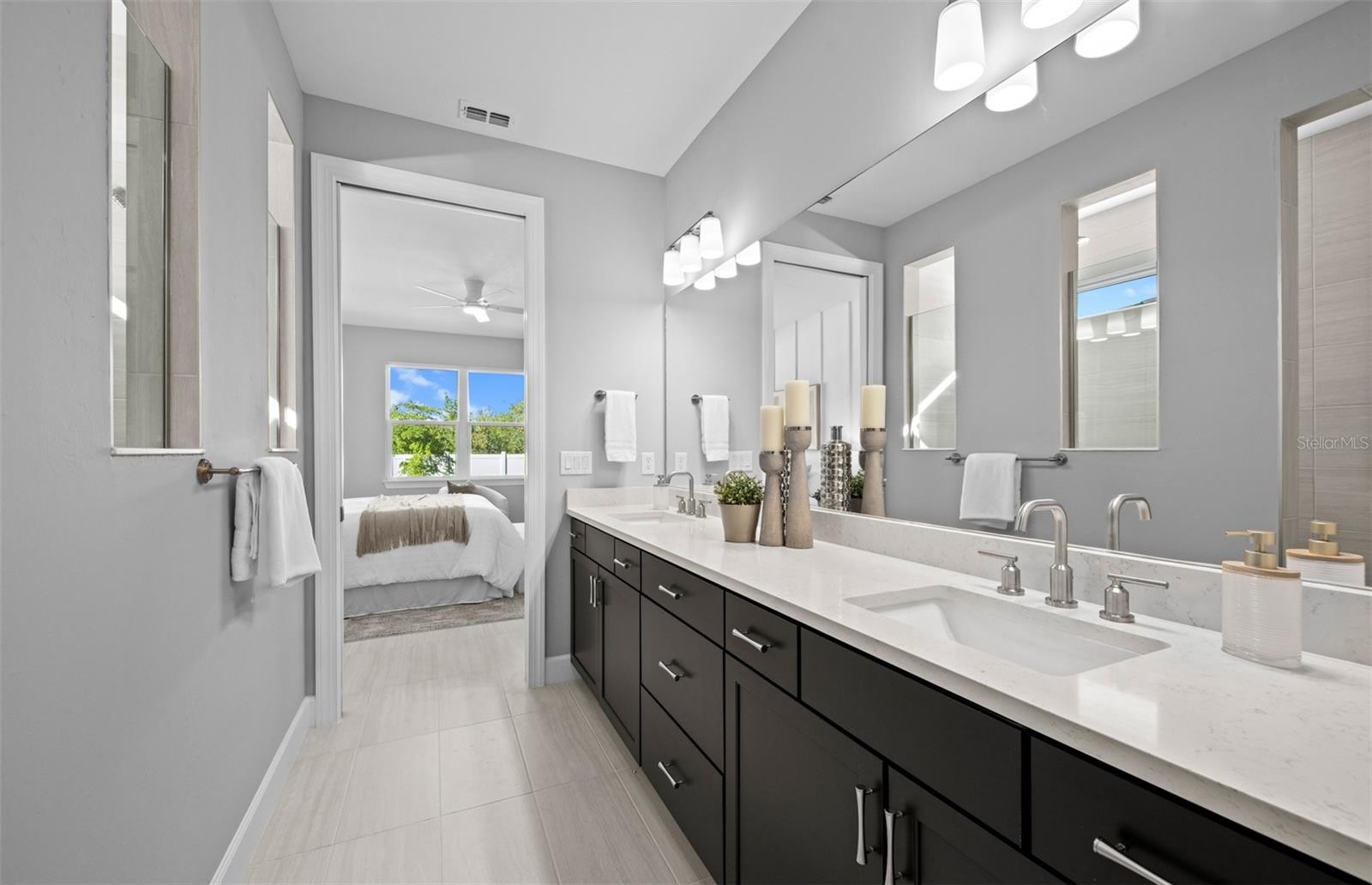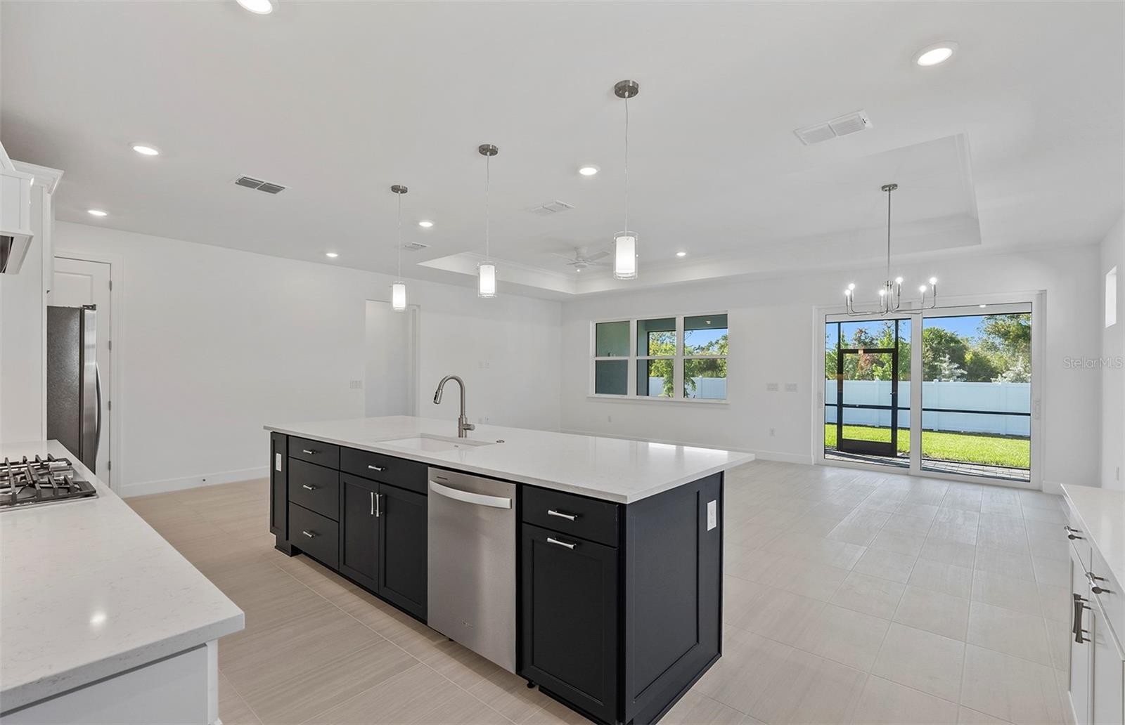 This beautifully crafted Palmary floor plan offers 3 bedrooms, 2 baths, and a 2-car garage, nestled in a brand new boutique style community. This home features an open floor plan with porcelain tile flooring throughout, impact-resistant doors and windows, a tray ceiling in the gathering room and a tankless water heater. The kitchen is a chef’s delight with gas cooking, a built-in microwave/wall oven combo with white cabinetry and contrasting Admiral blue center island with Silestone countertops. Other features include an enlarged shower in the owner's bedroom, upgraded laundry rm w/sink and cabinetry, spacious screened lanai and washer/dryer/fridge are included! Relaxation is easy at the community pool and cabana area while cooking at the BBQ grill area. Don't miss this opportunity to own a brand-new home with designer finishes! Photos are from a furnished model. Options for this home may vary.