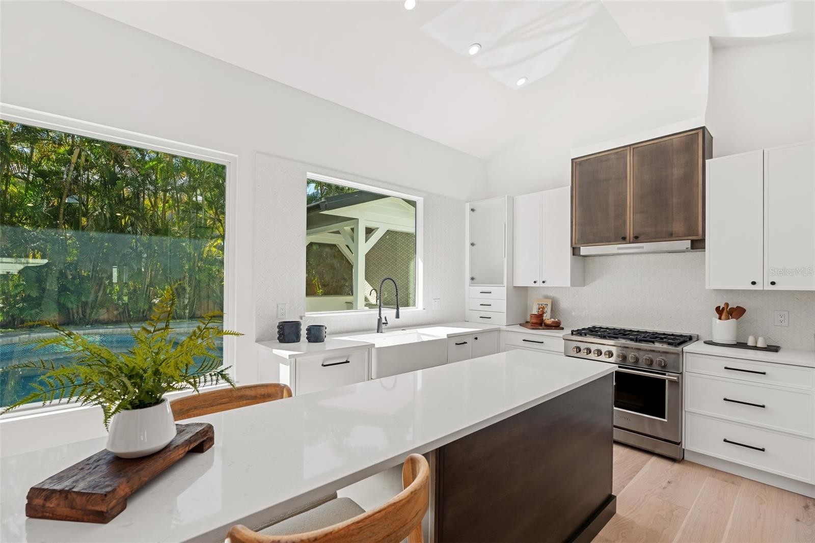 Reimagined to the standards of new construction and completed in 2026 by WG Homes, this 3-bedroom, 3-bath modern farmhouse is ideally located West of the Trail—one of Sarasota’s most coveted neighborhoods. Light-filled and inviting, the home showcases high-end finishes and timeless design, framed by a majestic oak tree and topped with a standing-seam metal roof. Inside, soaring 16-foot ceilings and a dramatic wall of windows flood the interiors with natural light, while white oak flooring flows throughout the main living spaces. The chef’s kitchen serves as the heart of the home, highlighted by a vaulted ceiling, an oversized island with seating, luxury appliances, a gas cooktop, custom wood cabinetry, and a striking mother-of-pearl backsplash. The primary suite offers a peaceful sanctuary with French doors opening to the outdoors. The spa-inspired bath features an oversized shower, marble flooring, floating dual vanities, a large soaking tub, and a generous walk-in closet. Privately situated on the opposite side of the home are two guest suites served by two full bathrooms, including one en-suite, providing comfortable accommodations for family and visitors. Outdoor living is equally impressive. The backyard is designed for entertaining with a heated pool and a cabana complete with sink, refrigerator, custom tile finishes, and inviting gathering space. A spacious fenced yard and mature palm landscaping enhance the setting. Offering peace of mind, the home is located outside of a flood zone and features all new impact-rated windows and doors. Additional upgrades include a one-car garage with epoxy flooring, private irrigation well, new plumbing lines, new electrical, and a new HVAC system. The location is exceptional—just minutes to the barrier islands and downtown Sarasota and only blocks from Southside Village, Sarasota Memorial Hospital, and Southside Elementary School. A rare opportunity to own a move-in-ready luxury modern farmhouse in one of Sarasota’s most coveted locations.