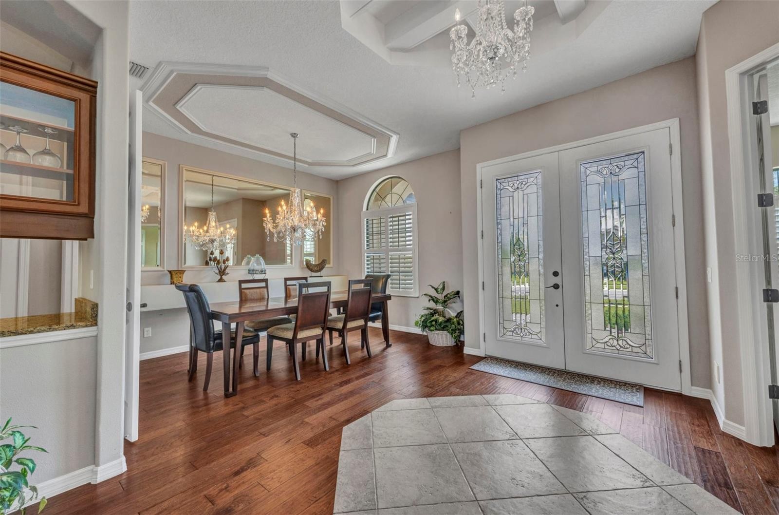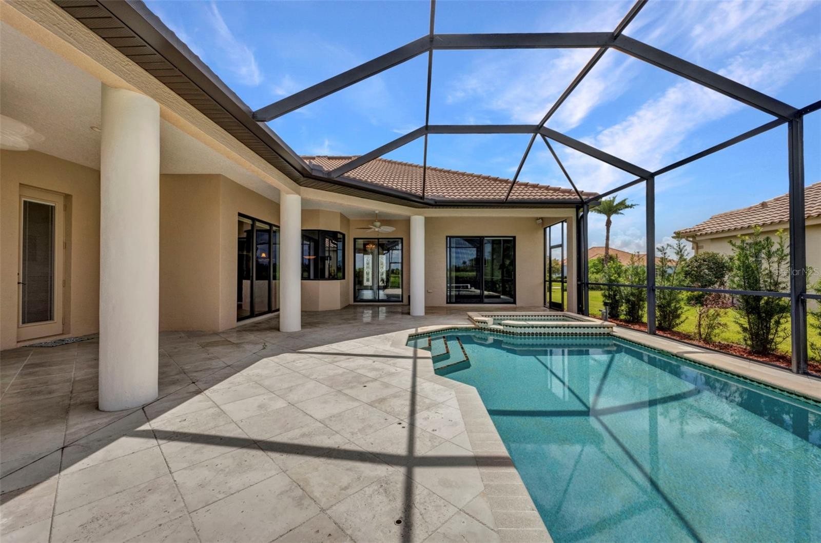 Best Value in Bobcat Trail — Just $189/Sq Ft! This stunning 3,172 sq. ft. custom-built Medallion home is priced to sell at $599000.00—the best price per square foot home in the gated community of Bobcat Trail! Featuring 4 bedrooms, 3 full baths (including a pool bath), an oversized garage, and major recent updates including 2 brand-new A/C units (2025), new gas pool heater (2024), fresh exterior paint, and upgraded landscaping (2024). Inside, you'll find elegant hardwood flooring, a formal dining room with plantation shutters, and a private office with French doors. The spacious living room flows to the west-facing lanai—perfect for enjoying Florida sunsets. The chef’s kitchen boasts stainless appliances, double wall ovens, a gas cooktop, breakfast bar (seats 6), and a dinette with stunning aquarium glass windows overlooking the pool. The private primary suite includes dual walk-in closets (one doubles as a hurricane-safe room), a large en-suite bath with soaking tub, walk-in shower, dual vanities, and water closet. Additional bedrooms are generously sized and paired with two more full baths—one with a tub/shower combo and the other serving as a convenient pool bath. The expansive media/game room with wet bar and sliders to the lanai is ideal for entertaining. Resort-style outdoor living includes a heated Gunite pool & spa, full outdoor kitchen, and ample covered space. Hurricane shutters and a built-in safe room provide added peace of mind. Bobcat Trail is a gated, deed-restricted community with low HOA fees ($150/year), offering residents access to a heated community pool, pickleball and tennis courts, fitness center, clubhouse, library, and scenic sidewalks. With style, space, upgrades, and unbeatable value—this is your opportunity to own the best-priced home in Bobcat Trail. Schedule your private showing today!