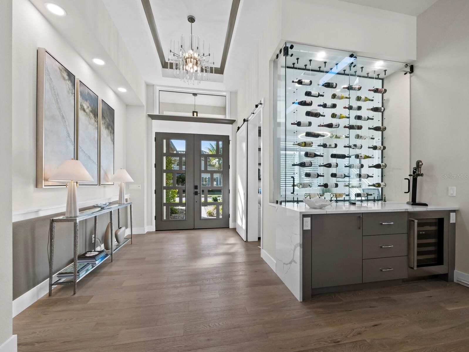 Brand-new contemporary design located West of the Trail on Sarasota’s coveted Flower Streets. This stunning four-bedroom, four-and-a-half-bath residence offers exceptional design, thoughtful functionality, and spans 3,370 square feet under air, complete with a den, bonus room, private elevator, and three-car garage. From the moment you arrive, the quality and attention to detail are unmistakable. Inside, the home features wide-plank French Oak flooring throughout both levels, solid-core doors, vaulted ceilings, and an abundance of custom built-ins. The chef’s kitchen is exceptionally appointed with matte finished custom cabinetry, professional-grade appliances, including a 48-inch GE Monogram dual-fuel range with six burners and griddle, Bosch dishwasher, wine refrigeration, and a large center island topped with quartzite, ideal for cooking, entertaining, and gathering. Outdoor living is equally impressive, featuring a saltwater pool and spa, outdoor kitchen, fire features, and a picture-window pool cage designed to maximize views while maintaining privacy. Lush, professionally designed landscaping surrounds the home, enhanced by low-voltage architectural uplighting in both the front and rear yards. Additional premium features include a locally sourced custom iron and glass front door, high-end bathroom finishes throughout, and a comprehensive AV and smart-home package with interior and exterior cameras, built-in speakers with SONOS technology, and multiple Frame TVs. This home also incorporates numerous energy-efficient and green features, including high-impact windows and doors, Icynene open-cell spray foam insulation, insulated garage doors, natural gas service, irrigation with well, and it comes Generator ready. ( Plumbing and electric is there should someone want one down the road) No power lines on this street as they have moved utilities underground. The location is truly exceptional—West of the Trail, just minutes to the barrier islands and downtown Sarasota without the congestion, and only blocks from Southside Village, Sarasota Memorial Hospital, and top-rated Southside Elementary and Sarasota High School. This is a rare opportunity to own a brand-new, move-in-ready luxury home in one of Sarasota’s most desirable neighborhoods. This home checks every box—schedule your private showing today.