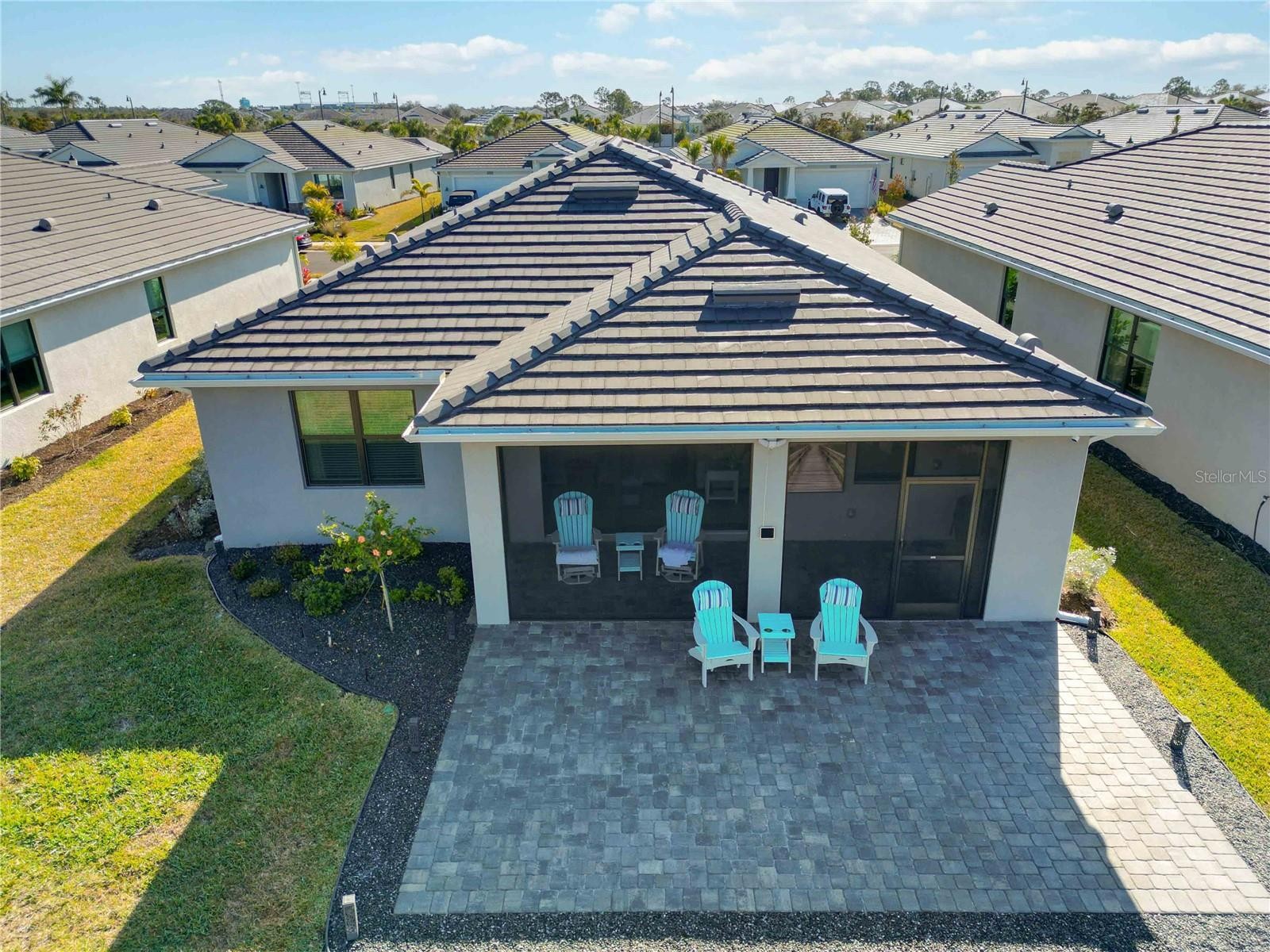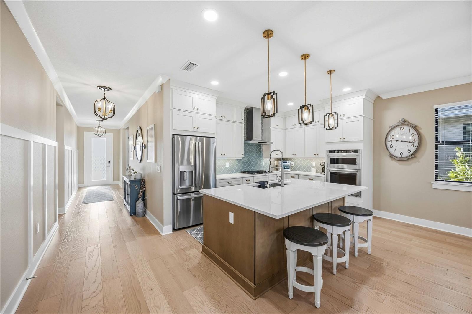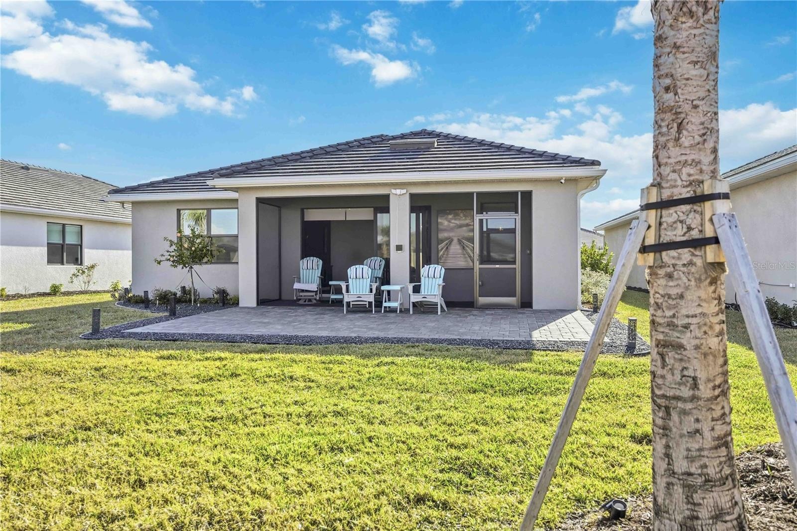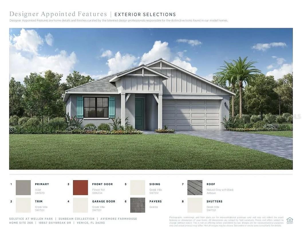 One or more photo(s) has been virtually staged. GAS COMMUNITY, FULL GUTTER SYSTEM, WHOLE-HOME GENERAC GENERATOR, IMPACT-RATED WINDOWS AND DOORS, CUSTOM CEILING BEAMS, CROWN MOLDING, DESIGNER LIGHTING, KITCHENAID APPLIANCES, OUTDOOR KITCHEN PREPPED full-height backsplash, upgraded pendant lighting, oversized pantry, water softener system with reverse osmosis, engineered hardwood flooring throughout with no carpet set the tone for the level of upgrades and care found throughout this beautifully enhanced three-bedroom, two-bath home in the gated community of Solstice at Wellen Park, set on a premium pond-view homesite. Enjoy outdoor living on the extended, sealed paver patio and screened lanai with added landscaping, creating a private, relaxing space designed for year-round Florida living. The spacious primary suite features double crown molding and a professionally designed custom closet, with additional highlights including a custom drop zone, glass shower doors in the guest bath, window blinds throughout, designer ceiling fans, and an Electrolux washer and dryer. Walking trails connecting to Downtown Wellen and the Atlanta Braves stadium enhance the lifestyle, along with maintenance-free living and resort-style amenities including a clubhouse, yoga lawn, and pool, with future plans for a fitness center, pickleball and bocce courts, scenic gathering spaces, and more, all near top-rated Sarasota County schools and less than 15 minutes to the Gulf Coast’s beautiful beaches.one or more photos have been digitally edited
