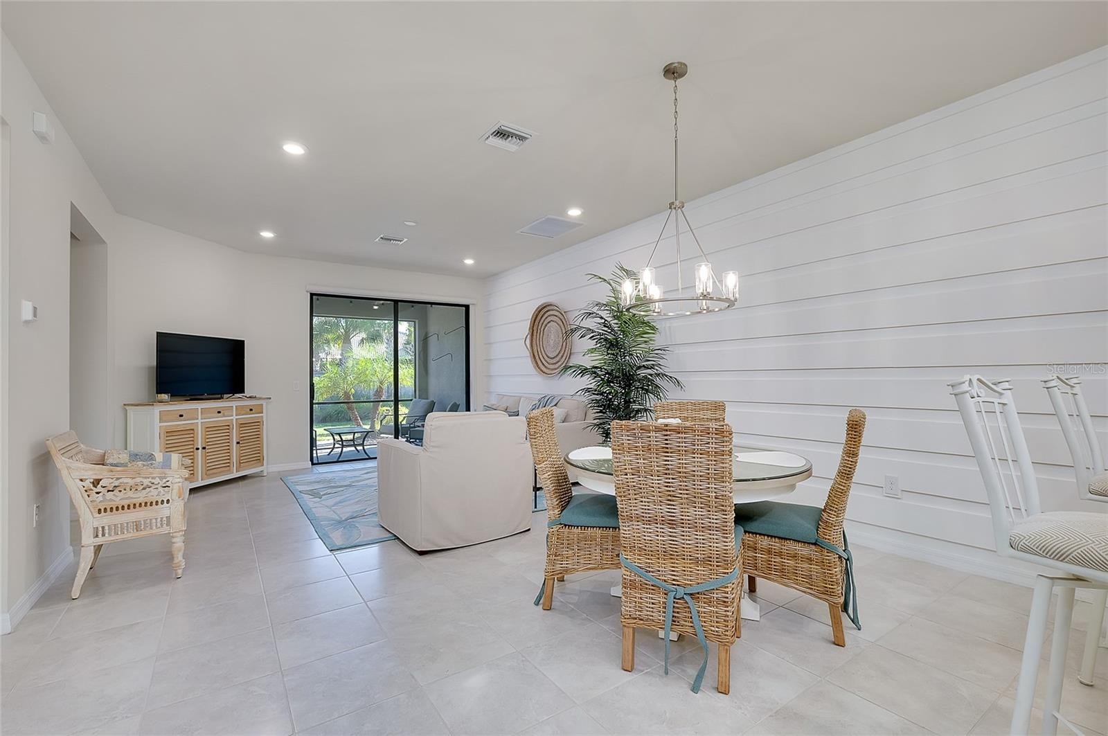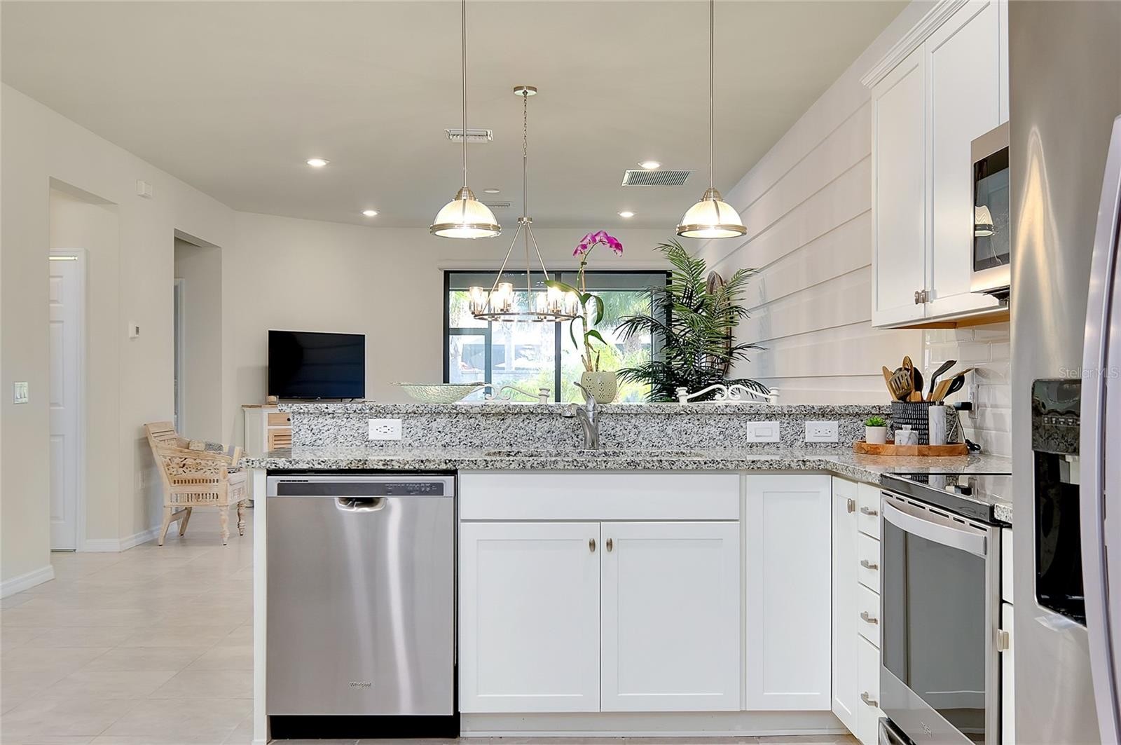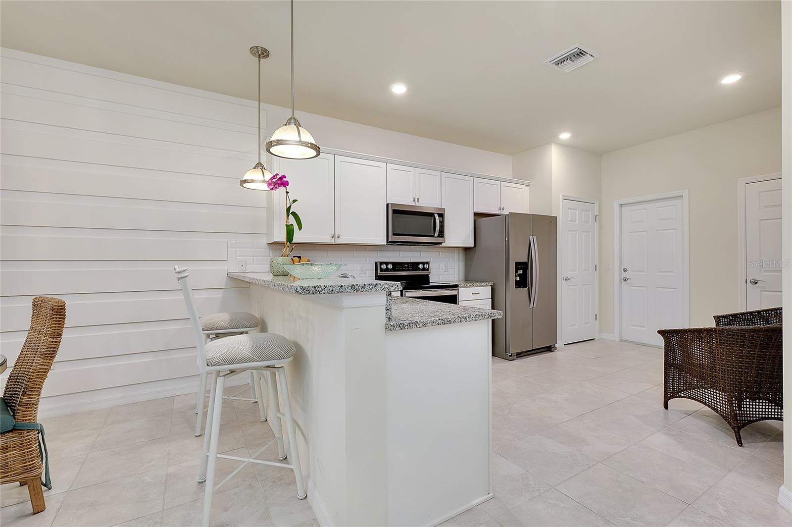 Discover the carefree Florida lifestyle in this beautifully upgraded 2-bedroom villa with den in the highly sought-after Islandwalk community. This interior unit of a quad (4 connected villas)lives large with 1,433 sq ft of thoughtfully designed space and stunning custom touches throughout. The homes shows like a model home! Step inside to a bright, inviting floor plan with glass French Doors just beyond the front door. These doors give privacy to the den/office just to the right as you enter. The villa has tile flooring throughout and charming Plantation Shutters on all windows. The heart of the home is a coastal white kitchen showcasing upgraded stainless steel appliances with abundant wood cabinetry accentuated by granite counters and a subway-tile backsplash. The breakfast bar has been upgraded with under-the-counter lighting which is ideal for entertaining. The custom shiplap accents the living room wall adding character and elevates the home's coastal-elegant feel. The slider out to the lanai is fitted with a custom sun-blocking shade. However the lanai faces East so you will not have any of the hot evening sun! The primary suite offers comfort and privacy with a generously sized bedroom, walk-in closet, and en-suite bath. This bathroom offers double vanities, granite counters and a tiled shower. A second bedroom and full guest bath provide flexible space for visitors. Enjoy peaceful mornings and relaxing evenings from your screened lanai surrounded by pristine landscaping. The Sellers selected this villa for the privacy it offers. Another impressive detail the Sellers want to share is the quality construction features of the villa. Pulte/DiVosta utilized steel-reinforced concrete block construction and professionally engineered roof trusses with hurricane tie-downs for wind protection. This, along with the aluminum hurricane shutters, provides peace-of-mind during inclement weather. Located in a resort-style gated community, residents of Islandwalk enjoy 2 community centers, multiple pools, pickleball and tennis courts, fitness facilities and an active calendar of social events. For the nature lover, Islandwalk offers pristine landscaping, picturesque arched bridges and miles of walking/biking trails. Next door to Islandwalk is the popular Wellen Park offering a vibrant blend of lifestyle, recreation, restaurants and boutique shops. The focal point of Wellen Park is the 80-acre Grand Lake where you can rent kyaks or just take the 3-mile walk or bike-ride around it. There is entertainment and Farmers Markets--something for everyone at Wellen Park! Just down the street from Wellen Park is Cool Today Park Stadium, the spring training home of the Atlanta Braves. The area also offers other venues throughout the year. Venture 20 minutes away and you have Historic Downtown Venice with the Venice Theater, Kentucky Military Museum, shops and restaurants. The Gulf Coast Beaches of Venice, Manasota and Englewood are all 20 to 30 minutes away. The culture and activities of downtown Sarasota are about 45-60 minutes away. There is so much to see and do! Immaculate, move-in ready, and perfectly situated--this villa offers the best of maintenance-free living in one of Wellen Park's most desirable neighborhoods. Make your appointment today!
