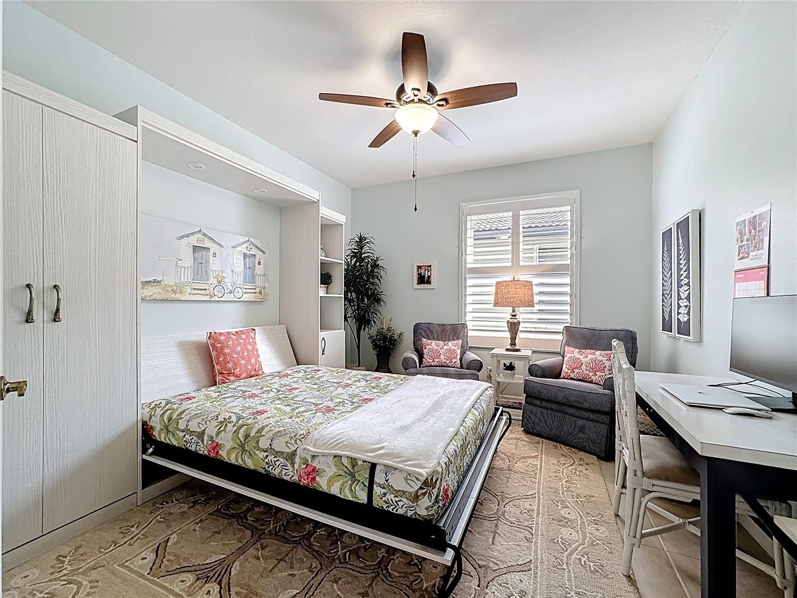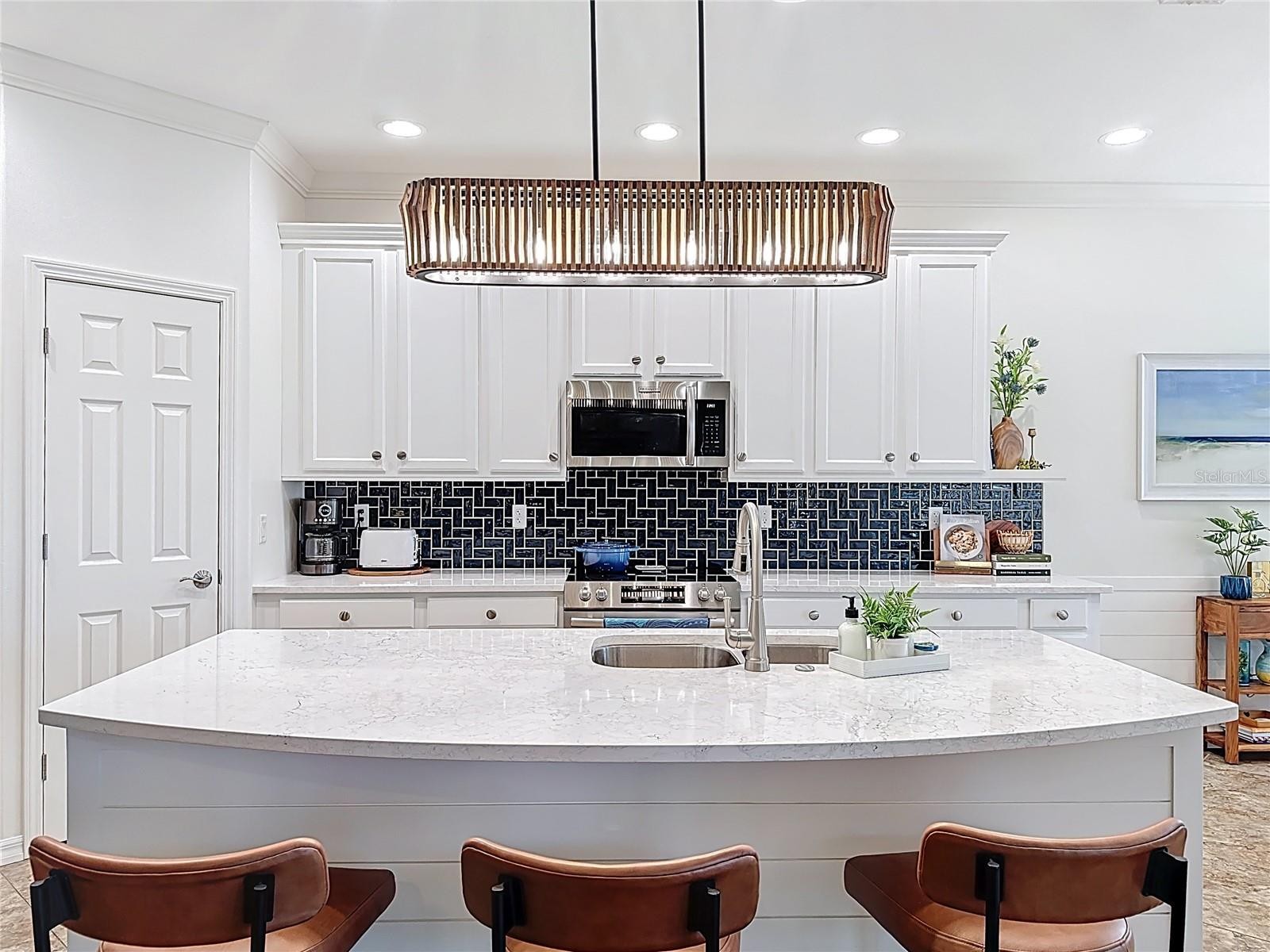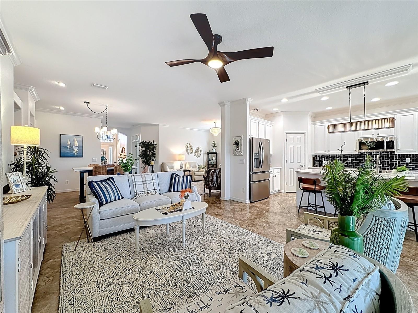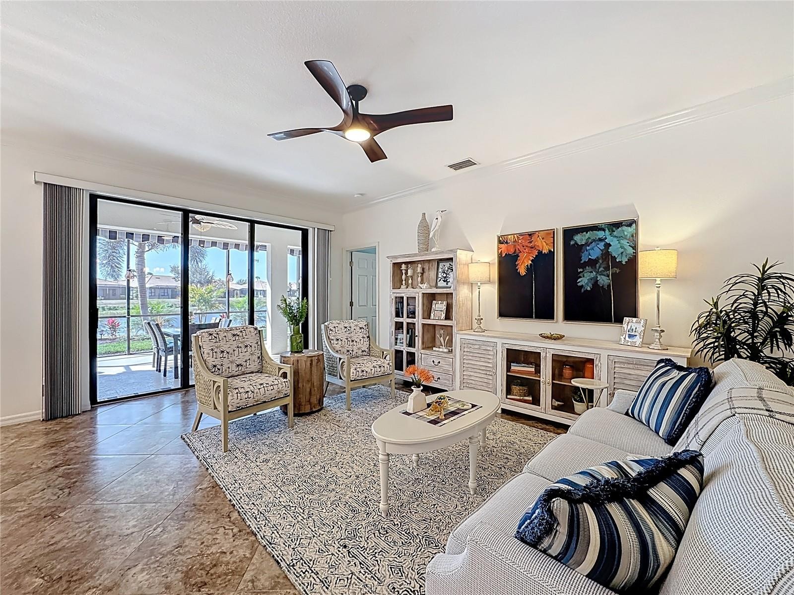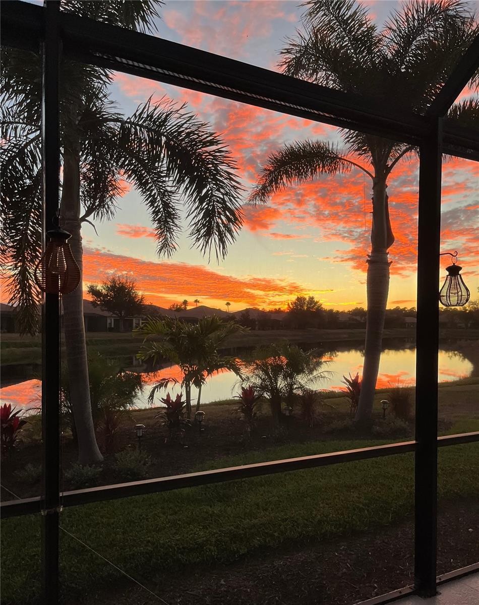 Under contract-accepting backup offers. PENDING - ACCEPTING BACK-UP OFFERS - Welcome to the premier gated, 55+ lifestyle community of Venetian Falls in picturesque Venice, FL where refined design and tranquil waterfront living converge. This, renovated single-family home offers 3 bedrooms, 2 full baths, a 2-car garage, and 2,069 square feet of refined living space, all perfectly positioned to capture breathtaking LONG WATER VIEWS and unforgettable sunsets. A screened front entry with heavy-duty storm door sets a welcoming tone, inviting natural light into the home while maintaining comfort and peace of mind. Inside, the highly coveted Milan floorplan unfolds with two expansive and flexible living areas, thoughtfully designed for entertaining or relaxed everyday living. CROWN MOLDING, volume ceilings, and abundant light create an airy, upscale ambiance throughout the main living spaces. At the heart of the home, the designer kitchen has been masterfully remodeled to reflect both beauty and function. CAMBRIA QUARTZ COUNTERTOPS, a SHIPLAP-WRAPPED CENTER ISLAND, light and bright cabinetry, tile backsplash, upgraded appliance package with drop-in range, and a generous walk-in pantry combine to create a culinary space that is as stylish as it is practical. Custom shiplap detailing continues into the sunlit breakfast nook, where BAY WINDOWS frame serene water views. High-end DESIGNER LIGHT FIXTURES and PLANTATION SHUTTERS throughout further elevate the home’s timeless elegance and represent a significant investment in quality. The formal dining room exudes character with custom built-in shelving and an electric FIREPLACE INSERT, offering a refined setting for intimate gatherings. The luxurious primary suite serves as a private sanctuary, complete with a tray ceiling, newer carpeting, dual closets including a spacious walk-in, and direct access to the lanai through sliding glass doors. The REMODELED PRIMARY BATHROOM is beautifully appointed with a shiplap accent wall, upgraded double vanity with quartz counters, dual framed mirrors and a large walk-in shower, creating a spa-inspired retreat. Designed with privacy in mind, the split-bedroom layout ensures comfort for guests. Bedroom 3 features a built in MURPHY BED AND CLOSET, allowing effortless transformation into a den or home office. Outdoor living is nothing short of exceptional. The EXTENDED SCREENED LANAI offers sweeping pond views and seamless indoor-outdoor flow through three sets of sliding glass doors. DUAL RETRACTABLE AWNINGS provide shade and comfort, while custom landscaping beyond the lanai enhances the lush Florida setting. With coveted Southwest rear exposure, the home delivers spectacular sunsets each evening - an ever-changing masterpiece over the water. Additional highlights include FULL HURRICANE SHUTTERS, tile roof, 'Flood Zone X' designation for added peace of mind, overhead garage storage, and a well-appointed laundry room with added cabinetry and a utility sink for convenience and functionality. Residents of Venetian Falls enjoy a resort-style experience with a HEATED POOL, resistance pool, spa, state-of-the-art fitness center, bocce ball courts, putting green, card room, and a full-time activities director curating a vibrant social calendar - all complemented by reasonable HOA fees and no CDD fee! Ideally situated just minutes from Wellen Park and Venice Island, you are moments from pristine Gulf beaches, fine dining, boutique shopping, and cultural attractions. This is elevated Florida living at its finest!