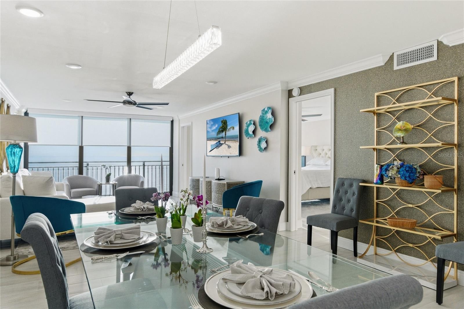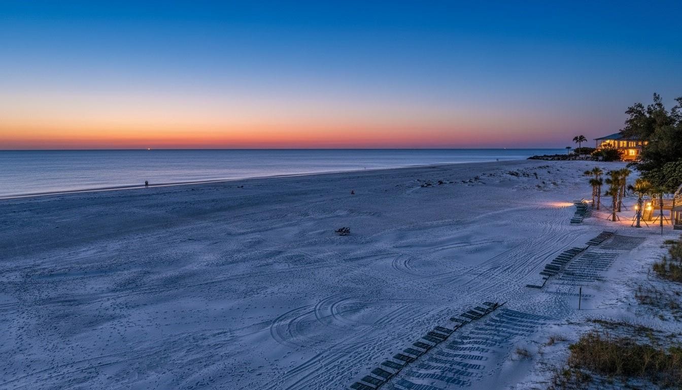 Sleek. Contemporary. Timeless elegance—with breathtaking views. Welcome to Whispering Sands, Unit #1105. This exquisite residence showcases thoughtfully curated finishes throughout, blending refined design with effortless coastal living. Crown molding, recessed lighting, and ceiling fans are just a few of the elegant details that set the tone. Offered turn-key and beautifully furnished with pieces from Bernhardt, Crate & Barrel, and more, this home is truly move-in ready. The cook’s kitchen is nothing short of divine and designed for entertaining. Stunning Cambria® quartz countertops are complemented by an impressive 8-foot waterfall breakfast bar. Abundant graceful cabinetry features soft-close doors and drawers throughout. The premium BOSCH stainless-steel appliance suite includes a refrigerator, range, dishwasher, built-in drawer microwave, and a 32-bottle wine refrigerator. Wide-plank tile flooring flows seamlessly throughout the home, creating an expansive, cohesive, and airy feel. The dining and living areas are ideal for everything from an intimate weeknight dinner and movie to larger gatherings with family and friends. Floor-to-ceiling impact glass sliders in both the living room and primary bedroom frame stunning views of the beach and the Gulf—and those unforgettable sunsets. Hunter Douglas motorized, light-filtering shades allow you to tailor the ambiance to suit your mood. The primary suite rivals a luxury hotel, offering sweeping Gulf views right from the bed. The spa-inspired bath is beautifully appointed with dual sinks, a vanity, abundant storage, a rainfall shower with built-in bench, and striking tile work—your own private sanctuary. The guest bedroom provides a welcoming retreat for visitors, conveniently located near a private guest bath. This gracious home delivers beauty, sophistication, and timeless design—just steps from a private beach, swimming pools, clubhouse, Tower Lounge, and the charm of Siesta Village.