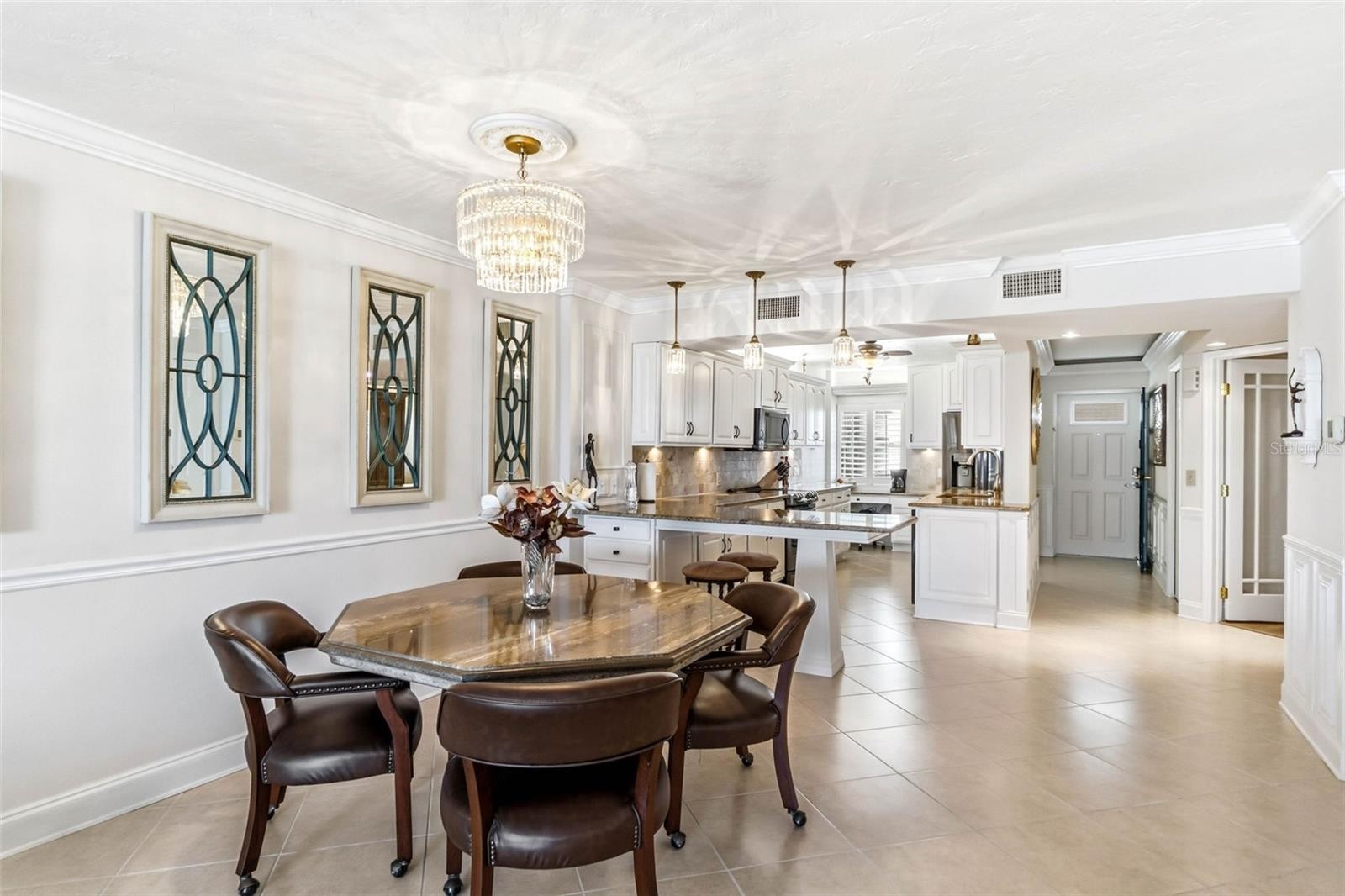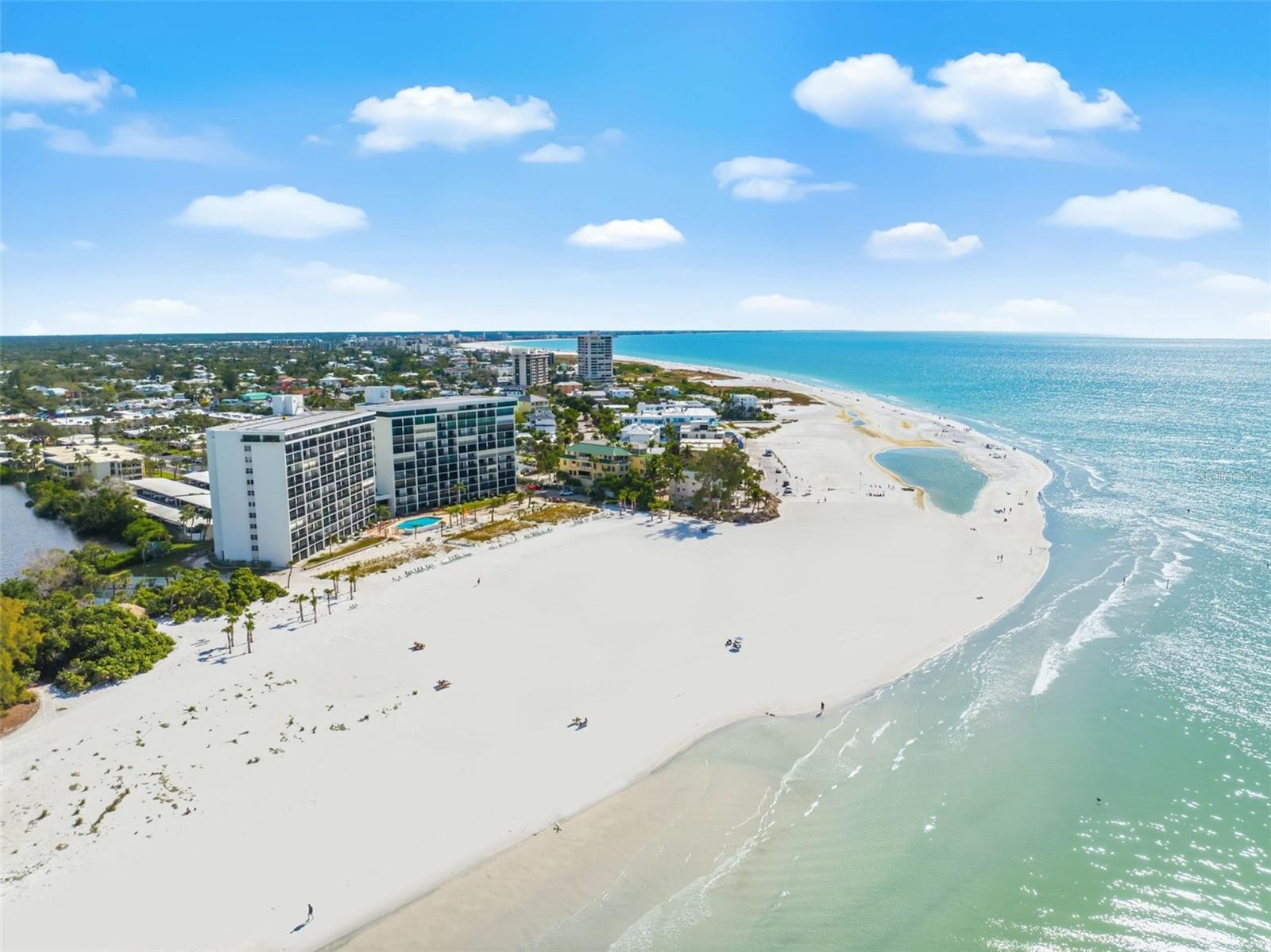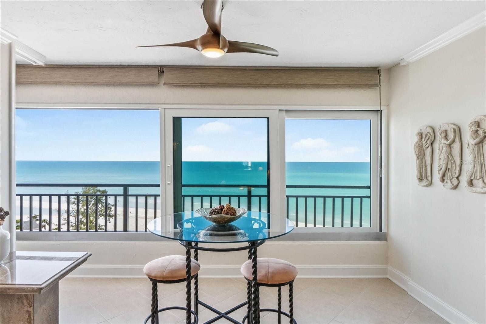 Experience elevated coastal living in this beachfront penthouse condo on Siesta Key, where direct Gulf views greet you the moment you walk through the door. Bathed in natural light, this turnkey furnished residence captures breathtaking sunsets and offers an effortless blend of luxury and comfort. The bright kitchen is thoughtfully designed with granite countertops and solid wood cabinetry, perfect for both everyday living and entertaining. The flexible guest bedroom features Murphy beds, maximizing space while maintaining style and functionality. New impact windows enhance peace of mind while framing endless views of the Gulf. Located within the highly sought-after Whispering Sands, a 25-acre resort-style community, residents enjoy more than 800 feet of private Siesta Beach with powdery white sand. Amenities include two swimming pools, two clubhouses, exercise rooms, a picnic area with tiki hut and grills, kayak and canoe storage, a tranquil lagoon, and meticulously landscaped grounds. Just moments from Siesta Village, this penthouse offers the perfect balance of privacy and proximity to world-class dining, shopping, and entertainment. Whether as a full-time residence or a luxury retreat, this exceptional penthouse delivers the ultimate Siesta Beach lifestyle.
