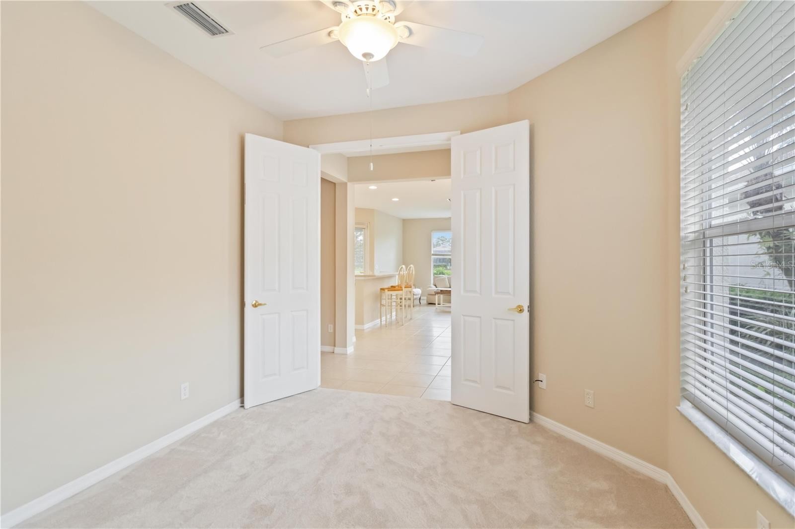 Welcome to your maintenance-free oasis in the highly desirable Lakeside Plantation! This beautifully maintained 2-bedroom, 2-bathroom plus den/office Carriage Home features a spacious open-concept layout with a split-bedroom floor plan, offering both comfort and privacy. The bright kitchen boasts Corian countertops, a center island with bar seating, and overlooks the dining and living areas—perfect for entertaining. The primary bedroom is generously sized with an ensuite bathroom with double sinks, two walk-in closets and access to the screened lanai, while the second bedroom is thoughtfully separated to provide privacy for guests. You'll also enjoy an inside laundry room, a spacious two-car garage, easy-care tile flooring throughout the main living areas, and plush carpeting in the bedrooms and den/study. Step out onto your screened lanai to take in serene lake views and southwest exposure, offering beautiful Florida sunsets to end your day. Just steps from your front door is a private neighborhood pool for you and your immediate neighbors. The community’s 6,000 sq ft Clubhouse offers an abundance of amenities: a second heated pool and spa, fitness center, tennis and pickleball courts, basketball, shuffleboard, bocce ball, a playground, library/card lounge, billiards room, conference room, and a kitchen-equipped event space for your special occasions. Pet-friendly and perfectly located, this home is close to the North Port Aquatic Center, Warm Mineral Springs, parks, golf, shopping, dining, medical facilities, and I-75. You're also close to the Wellen Park, CoolToday Park—home of the Atlanta Braves spring training—and world-famous Gulf beaches and downtown Venice. Relax and enjoy the Florida lifestyle with professional management and maintenance provided by the Community Development District and HOA. Stable HOA fees offer predictable monthly cost. This is more than just a home—it’s a lifestyle. Come experience it today!
