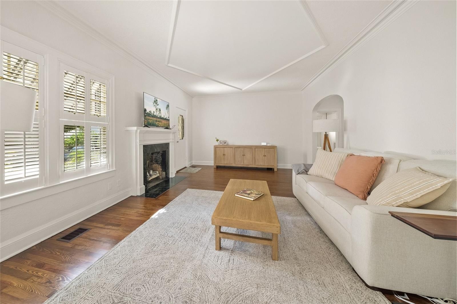A rare and soulful architectural treasure tucked within Avondale, one of Sarasota’s most enduring and affluent neighborhoods since the early 1900s. Located at 1917 Bahia Vista Street, this mid-20th-century residence offers a once-in-a-lifetime opportunity to own a home where timeless design, authentic character, and lush tropical privacy converge. Set on a supremely private, verdant lot, the main residence features three bedrooms, three bathrooms, and a sun-drenched Florida room that seamlessly blends indoor living with the surrounding gardens. Original hardwood floors, crown molding, and a classic fireplace anchor the home with warmth and historic charm, while expansive windows and plantation shutters bathe each space in natural light. Thoughtfully proportioned living and dining areas create an elegant yet inviting atmosphere—perfect for both intimate gatherings and relaxed everyday living. The kitchen embraces vintage appeal with crisp white cabinetry, contrasting black-and-white tile flooring, and an arched doorway that nods to the home’s architectural heritage. Beyond the interior, the property unfolds into a lush tropical oasis, where a sparkling pool and elevated wood decking are enveloped by mature palms and greenery, offering complete privacy and a true resort-like setting. Adding to the home’s versatility is a detached guesthouse with a kitchen, ideal for hosting family and friends, creating a private home office or studio, or accommodating multigenerational living. The casita mirrors the property’s charm while providing valuable flexibility rarely found in this coveted location. This is more than a home—it’s a special moment. A chance to secure a distinctive Sarasota gem for the buyer who values character, craftsmanship, and mid-century architecture, all just minutes from downtown Sarasota, Southside Village, and world-class beaches. Properties like this rarely come to market—1917 Bahia Vista Street is an invitation to own something truly unforgettable.