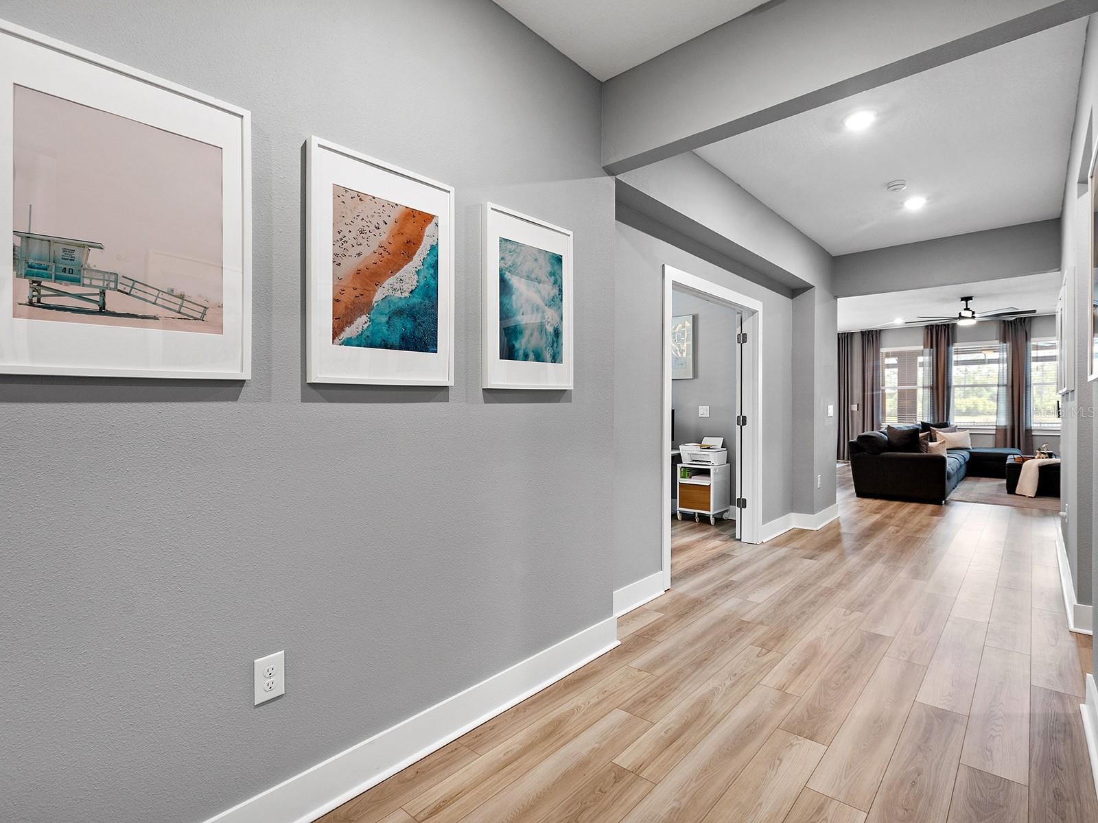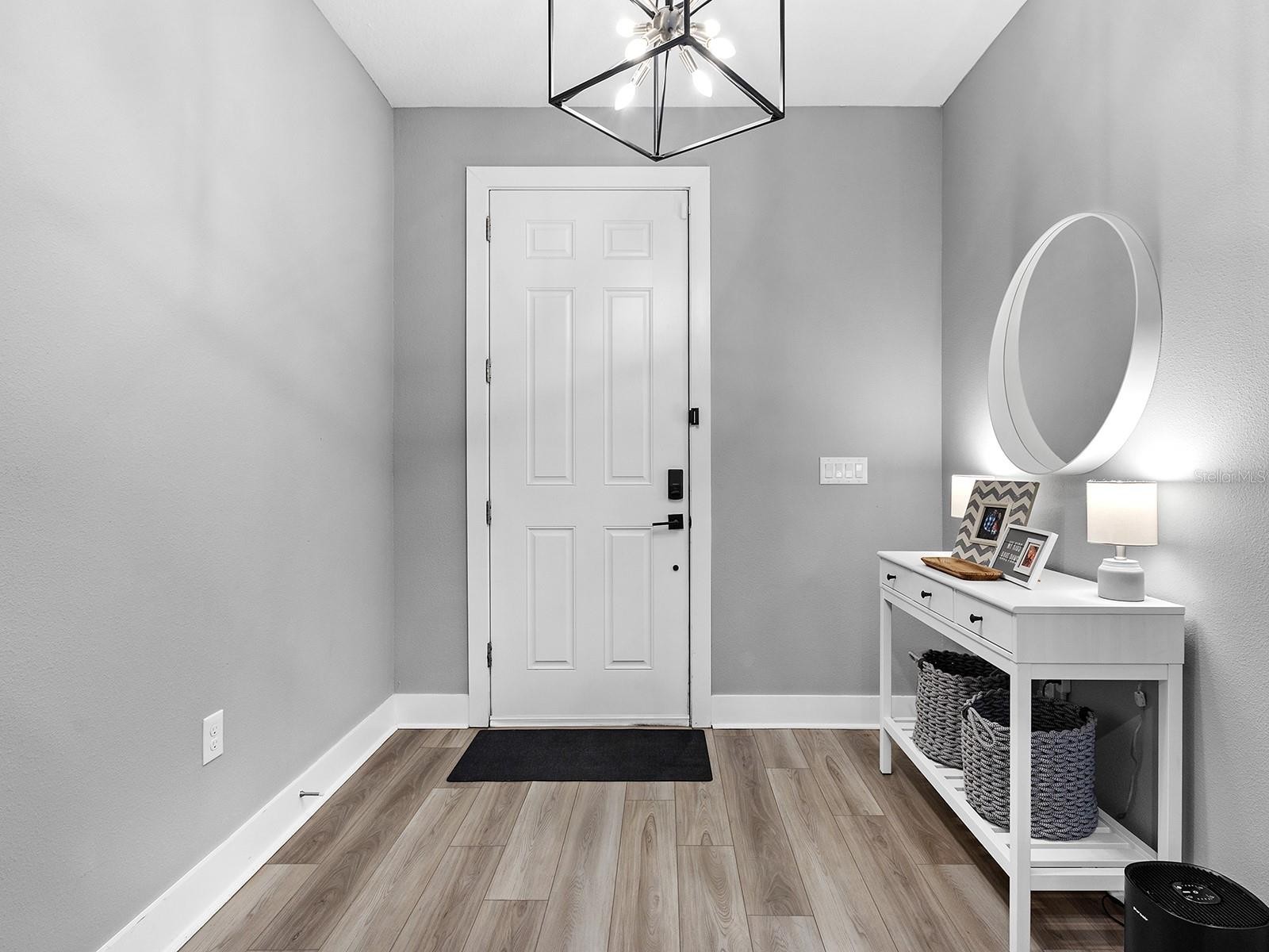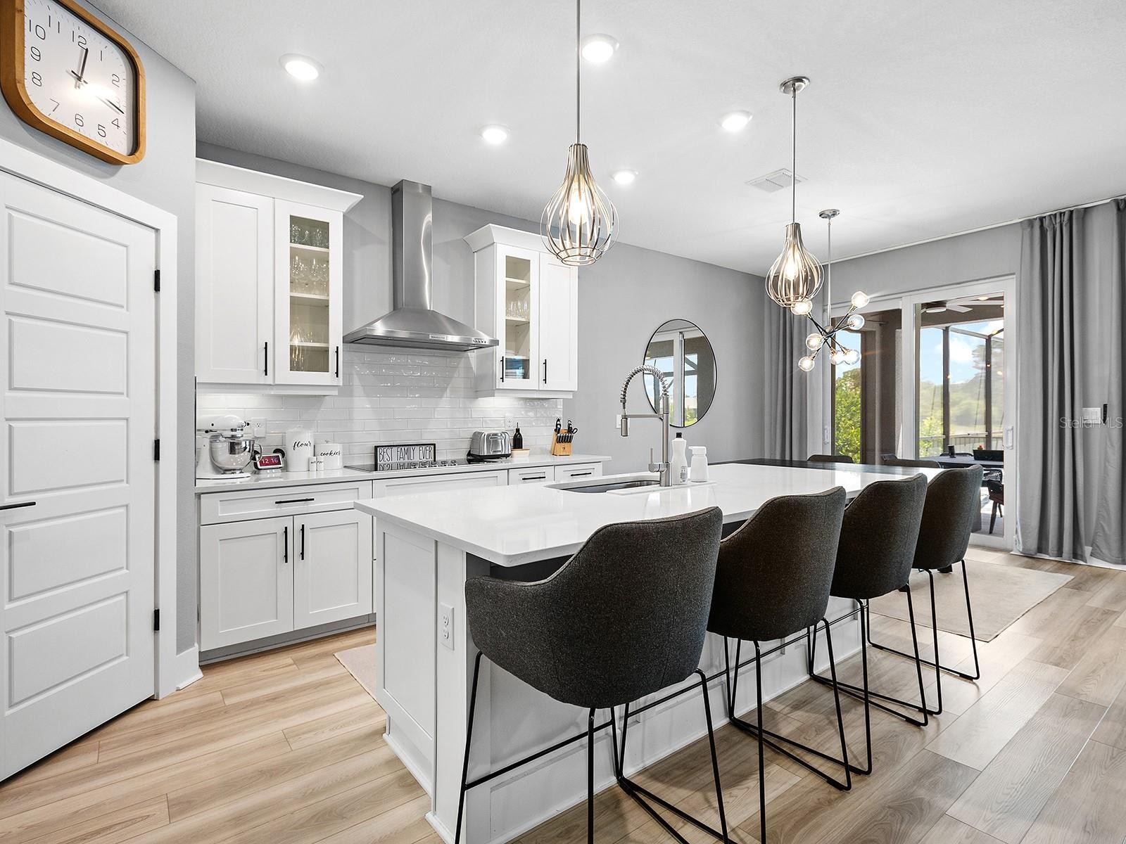 Set on a premium lakefront homesite within the gated community of Venice Woodlands, this 2022-built home presents a move-in-ready alternative to new construction, with completed outdoor living and extensive post-closing upgrades already in place. Spanning 2,333 square feet, the residence includes four bedrooms, two-and-a-half baths, a versatile den or office, and unparalleled water and preserve views. The outdoor area is a true extension of the home’s living space. A custom pool and spa, completed in 2025 by Waterscapes Pools, anchors the backyard with an electric heater and chiller, expansive paver decking, and a panoramic screened enclosure with no-see-um screening allowing for uninterrupted views and year-round enjoyment. The fully fenced yard is accompanied by refreshed landscaping and updated irrigation, creating a private and polished backdrop. Inside, a clean, open layout is enhanced by high ceilings and natural light, with a kitchen perfectly designed for daily living or entertaining, featuring quartz countertops and upgraded KitchenAid stainless appliances. Throughout the home, high-quality upgrades have already been completed, including whole-home impact windows and doors, a UV light added to the air conditioning system in 2025, a whole-home surge protector, water softener, full gutter system, and security system, all offering both comfort and peace of mind. Beyond the home, Venice Woodlands provides a resort-style lifestyle with a community pool, clubhouse, fitness center, pickleball courts, and bocce ball. Low HOA fees include lawn maintenance for individual homes, further enhancing the ease of ownership, all with no CDD fee. For those drawn to lakefront living but unwilling to compromise on time, cost, or quality, this home offers a rare opportunity to step into a completed, thoughtfully upgraded home where every detail has already been carefully considered.