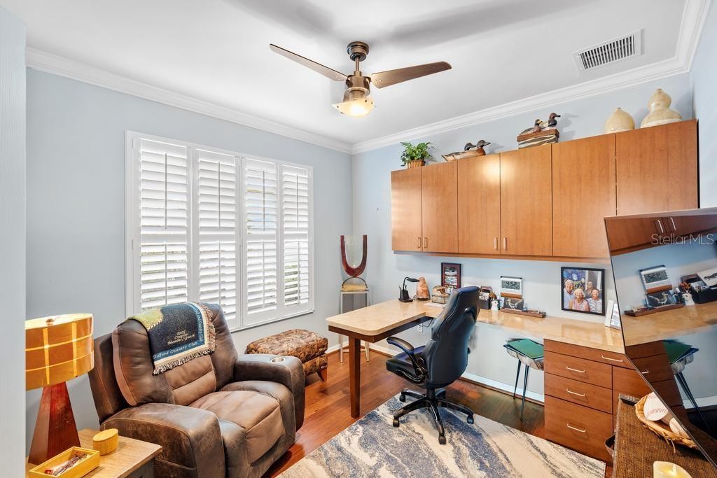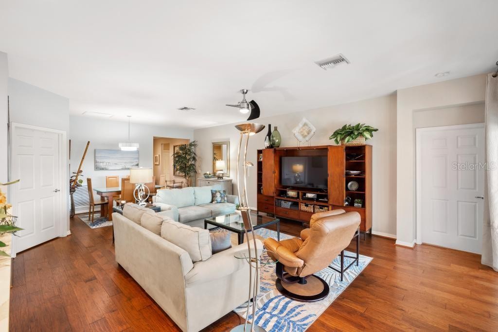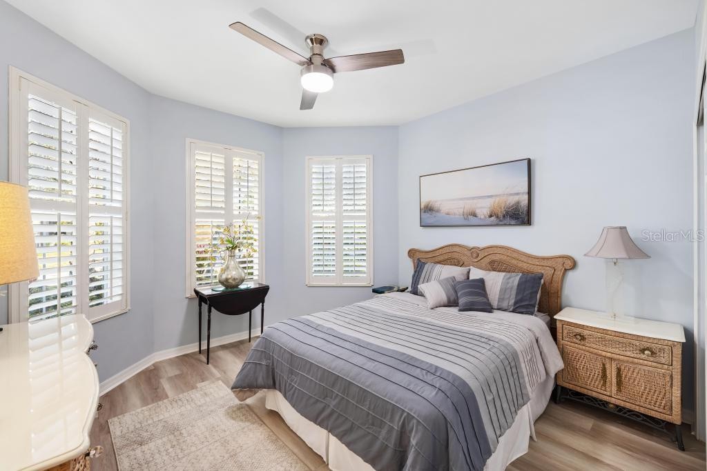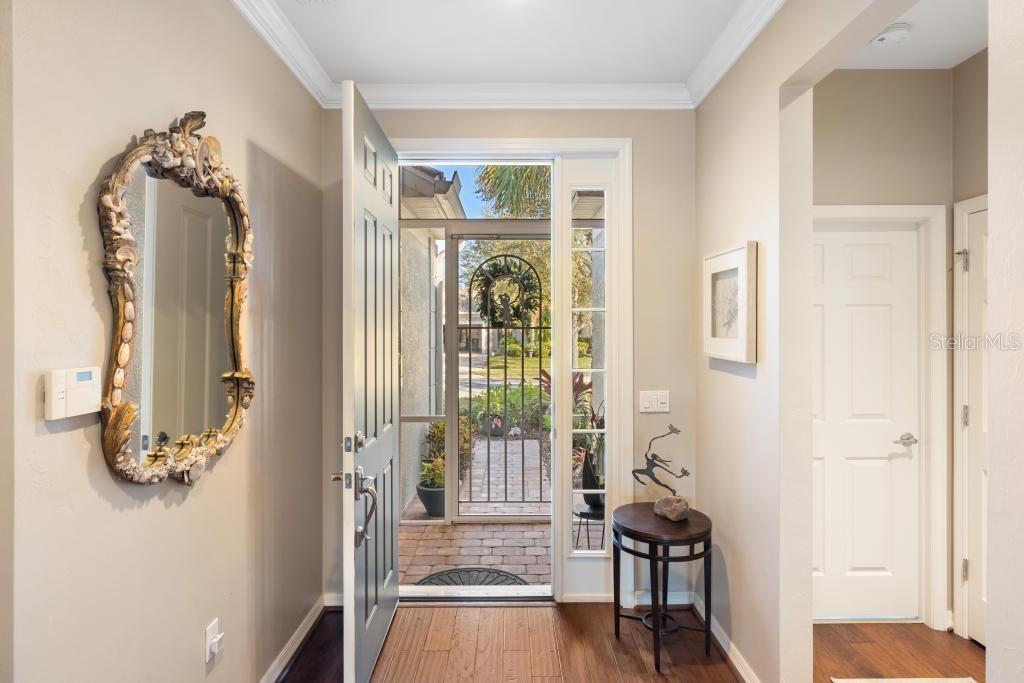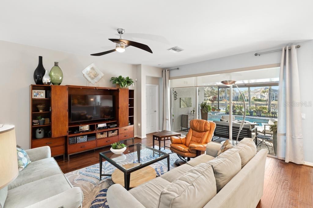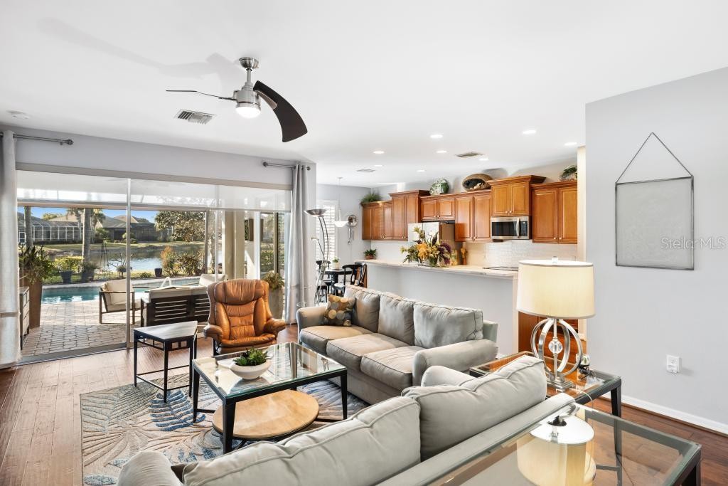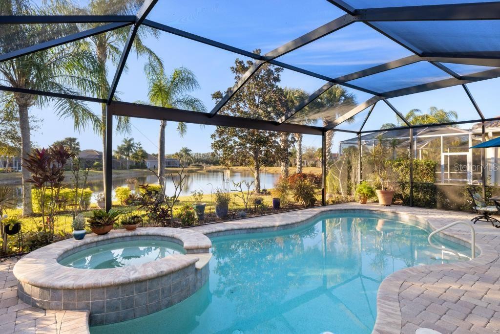 Perfectly positioned on a premier waterfront homesite in the highly sought-after, gated community of IslandWalk, this pristine pool home offers breathtaking sunset water views and maintenance free living. The panoramic screened lanai with a newer cage frames a heated saltwater pool, creating a private outdoor retreat ideal for entertaining or quiet evenings overlooking the water. Inside, refined upgrades and thoughtful enhancements elevate the home throughout. The kitchen features updated quartz countertops and backsplash, several newer appliances, enhanced lighting, a formal dining room, and a charming dining nook. Fresh interior and exterior paint, crown molding, plantation shutters, and newer flooring (no carpet anywhere) in the bedrooms provide a clean, coastal sophistication. The spacious primary suite offers a soaking tub, private water closet, and custom built-in closet system. Flexible living spaces include a den with built-in cabinetry (removable if desired), offering versatility for office or hobby use. System updates include a new A/C system (2025) and newer water heater. IslandWalk at Wellen Park is known for its resort-style amenities, including two clubhouses, heated lap and lagoon pools, state-of-the-art fitness centers, tennis and pickleball courts, walking trails, Venetian bridges,and a full-time activities director. Just minutes from Downtown Wellen Park, CoolToday Park, dining, shopping, and Gulf beaches, this location offers an unmatched lifestyle. Furniture and golf cart may be available separately. This is an exceptional opportunity to secure a sunset, water view property in one of Venice’s most vibrant, amenity-rich communities.