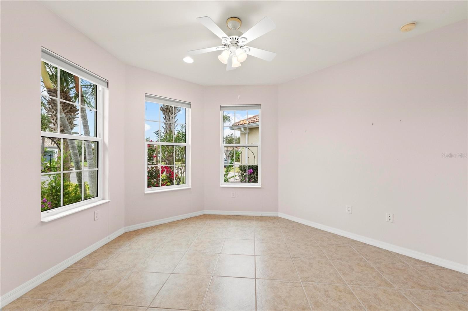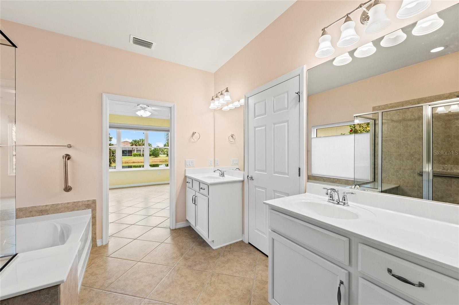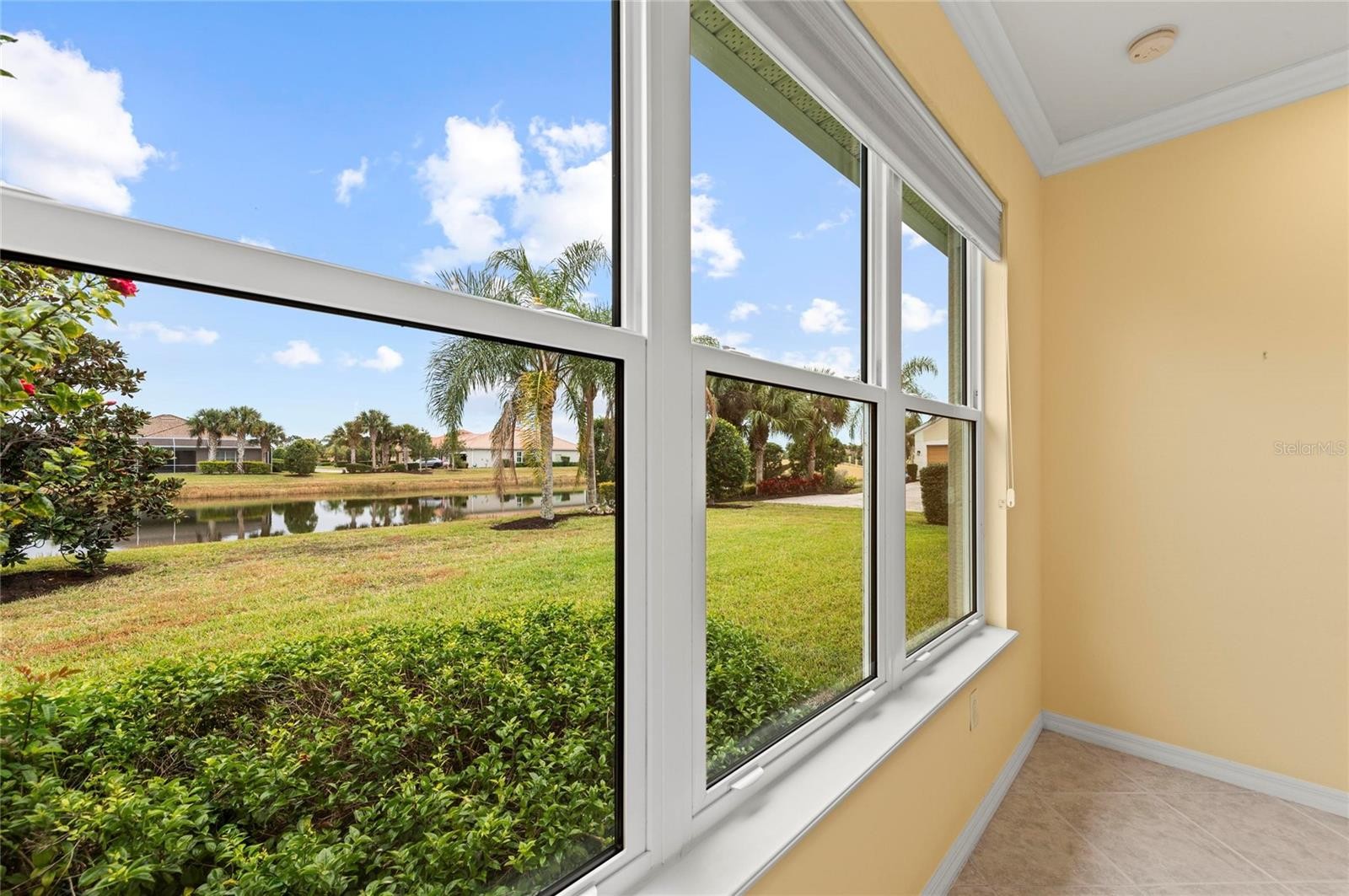 IslandWalk’s highly sought-after Vernon Hill model shines in this beautifully maintained lakefront home. Offering 3 bedrooms plus a dedicated office/den and 2 full bathrooms, the open-concept layout seamlessly connects the living room, dining area, breakfast nook, and kitchen—perfect for both everyday living and entertaining. The desirable split-bedroom floor plan places the two guest bedrooms at the front of the home with a shared bath, providing privacy for family or visitors. A well-appointed laundry room features upper and lower cabinetry, a utility sink, and a folding station for added convenience. The primary suite is a true retreat with tranquil lake views, a spacious walk-in closet, and a spa-like bath featuring dual vanities, a soaking tub, and a separate walk-in shower. The home features tile flooring throughout, laid on the diagonal, enhanced by crown molding and additional recessed can lighting. The tile has been professionally steamed and sealed—no carpet anywhere. Enjoy peace of mind with IMPACT GLASS throughout and STORM SMART shutters on the lanai. The bright kitchen features quartz countertops, light cabinetry, upgraded stainless steel appliances, and a large pantry. Both the formal dining area and breakfast nook offer beautiful lake views. Outdoor living is effortless on the covered lanai, where lanai furniture conveys, creating a move-in-ready space for relaxing or entertaining. This home is spotless, thoughtfully upgraded, and meticulously cared for—ready to enjoy the IslandWalk lifestyle.IslandWalk is one of VENICE'S most social communities with a FULL TIME ACTIVITIES DIRECTOR, countless events and clubs and activities, TWO community clubhouses, an EVENT center, TWO resort style pools, a LAP pool, 12 PICKLE BALL Courts, 8 Har Tru Tennis Courts, DOG PARK, Playground, Basketball Court, Community Garden- the list goes on! The entire community is surrounded by miles and miles of golf cart trails, walking and biking trails, VENETIAN bridges and water! The Atlanta Braves Stadium is a short bike ride away- enjoy year- round events and activities. The new marketplace features PUBLIX, restaurants, shopping, gas station, etc! Downtown Wellen Park features an 80-acre lake, retail shops, restaurant waterfront dining and rooftop decks, pedestrian-friendly streets, a splash pad, a playground and a public town hall gathering place that hosts live theater and music events. Coming soon to downtown Wellen Park- a hammock grove and a permanent food truck area. IslandWalk HOA includes grounds maintenance, CABLE, WIFI, amenities, and 24-hour guard.
