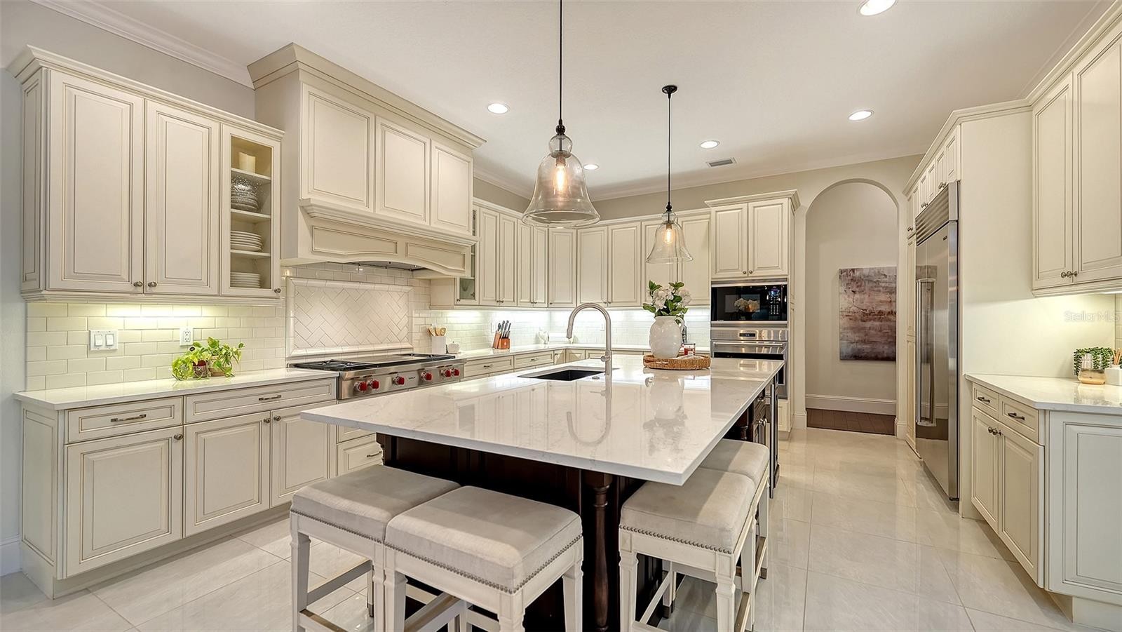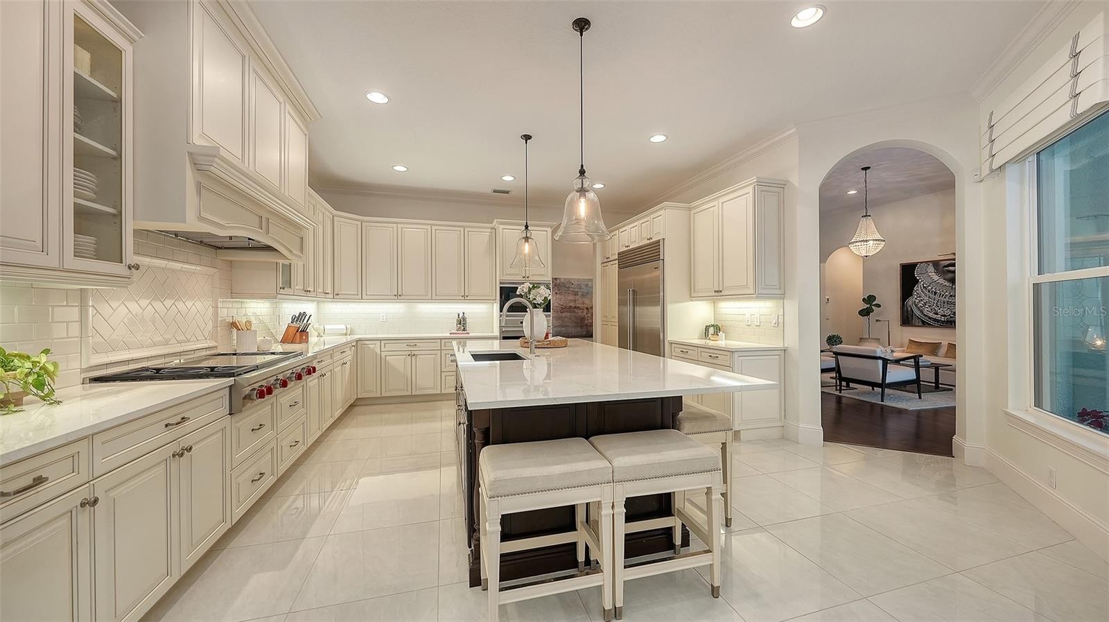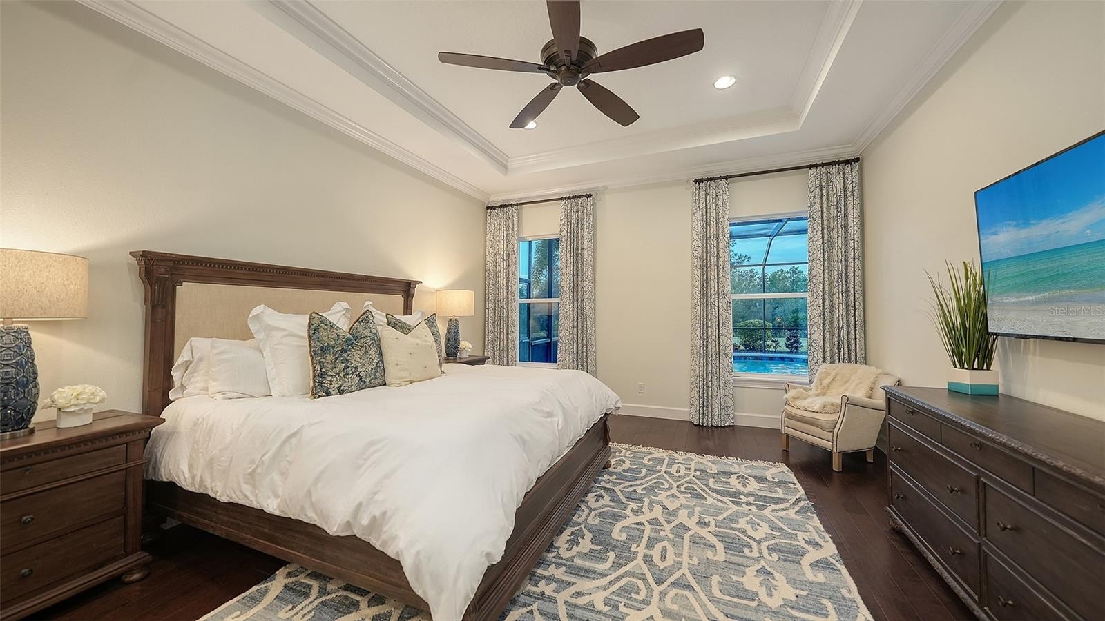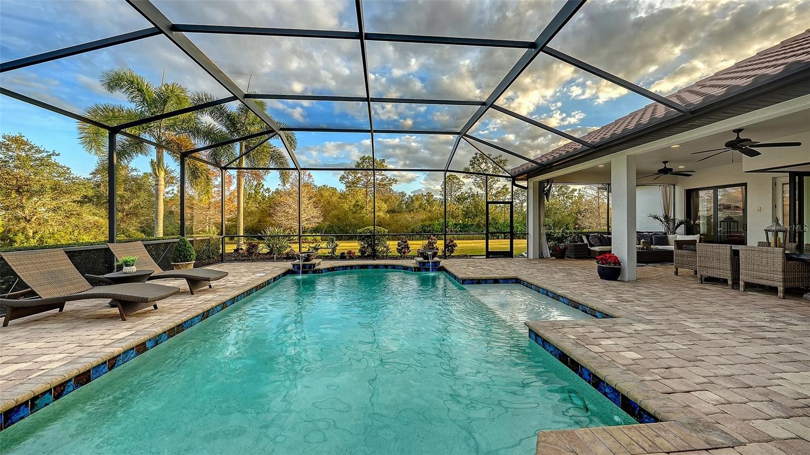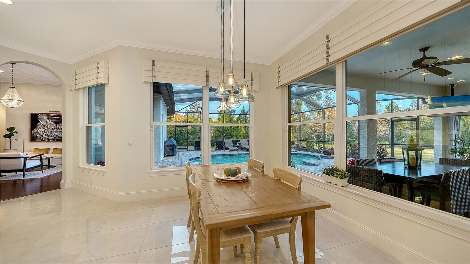 Set within the prestigious gates of The Concession, this exquisite four-bedroom John Cannon residence captures the essence of refined Florida living. Sunlight pours through expansive windows and glass doors, illuminating beautifully curated interiors and framing tranquil preserve views. Thoughtfully designed to balance elegance and comfort, the home offers both formal and casual living spaces ideal for entertaining or unwinding in style. Rich wood and tile flooring, crown molding, and timeless architectural details create a warm, sophisticated atmosphere throughout. The formal living room flows seamlessly to the pool terrace, setting the stage for memorable gatherings. At the heart of the home, the gourmet kitchen impresses with quartz countertops, a statement center island, designer tile backsplash, and top-tier appliances—perfect for hosting everything from intimate dinners to festive celebrations. A flexible den and spacious bonus room provide endless possibilities for work, relaxation, or play. The serene primary suite is a private retreat featuring wood floors, a generous walk-in closet, and a spa-inspired bath with soaking tub and separate walk-in shower. Step outside to your own resort-style escape on the screened lanai, where a sparkling heated pool, covered entertaining area, and peaceful preserve backdrop invite year-round enjoyment. Additional highlights include a large laundry room, impact windows, and a three-car side-entry garage. The Concession is renowned for its majestic estates, privacy, and timeless elegance—offering a lifestyle of distinction just minutes from premier shopping, dining, world-class beaches, and Sarasota’s vibrant arts and culture scene.