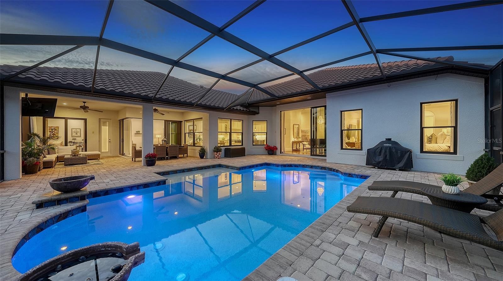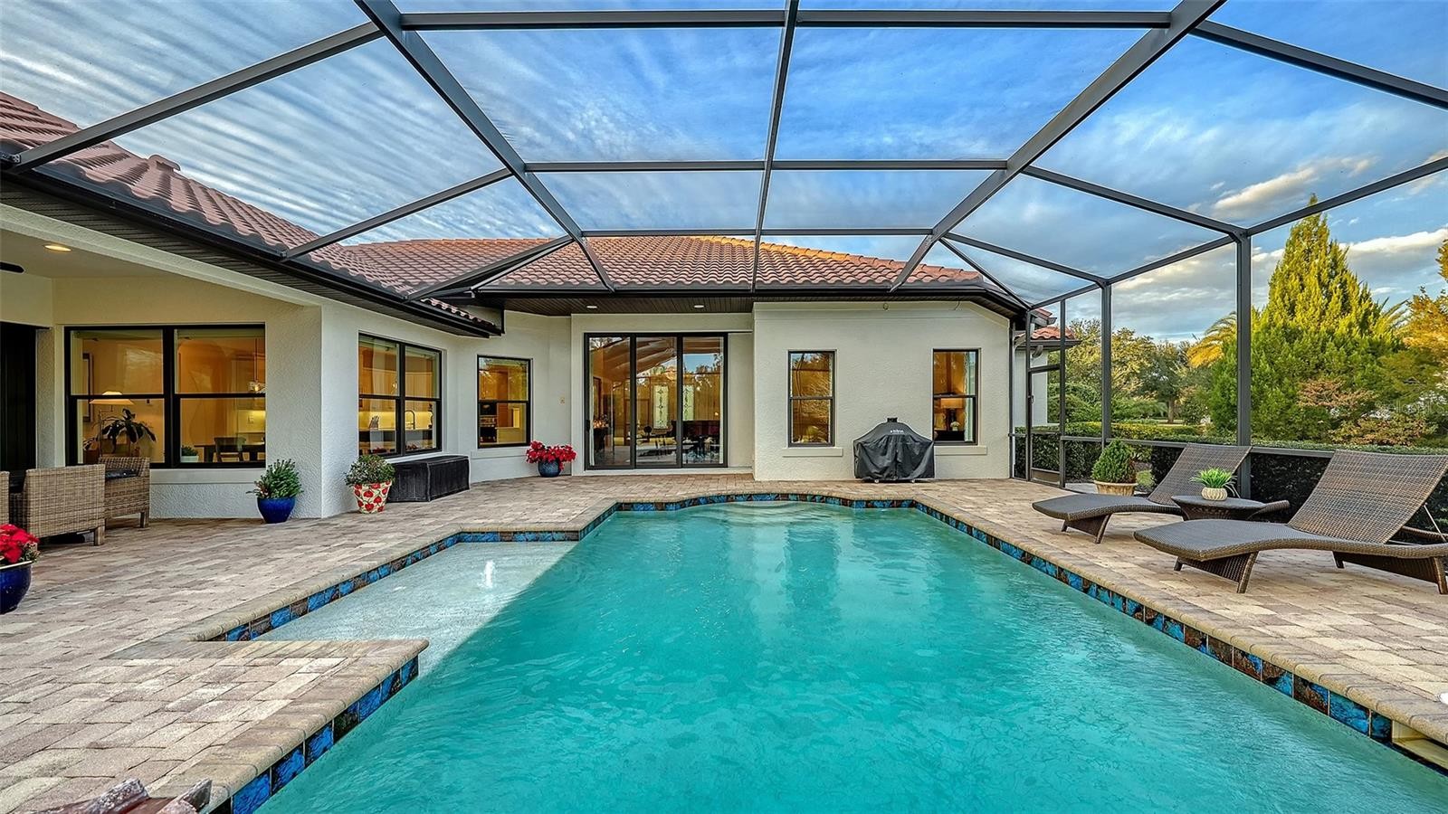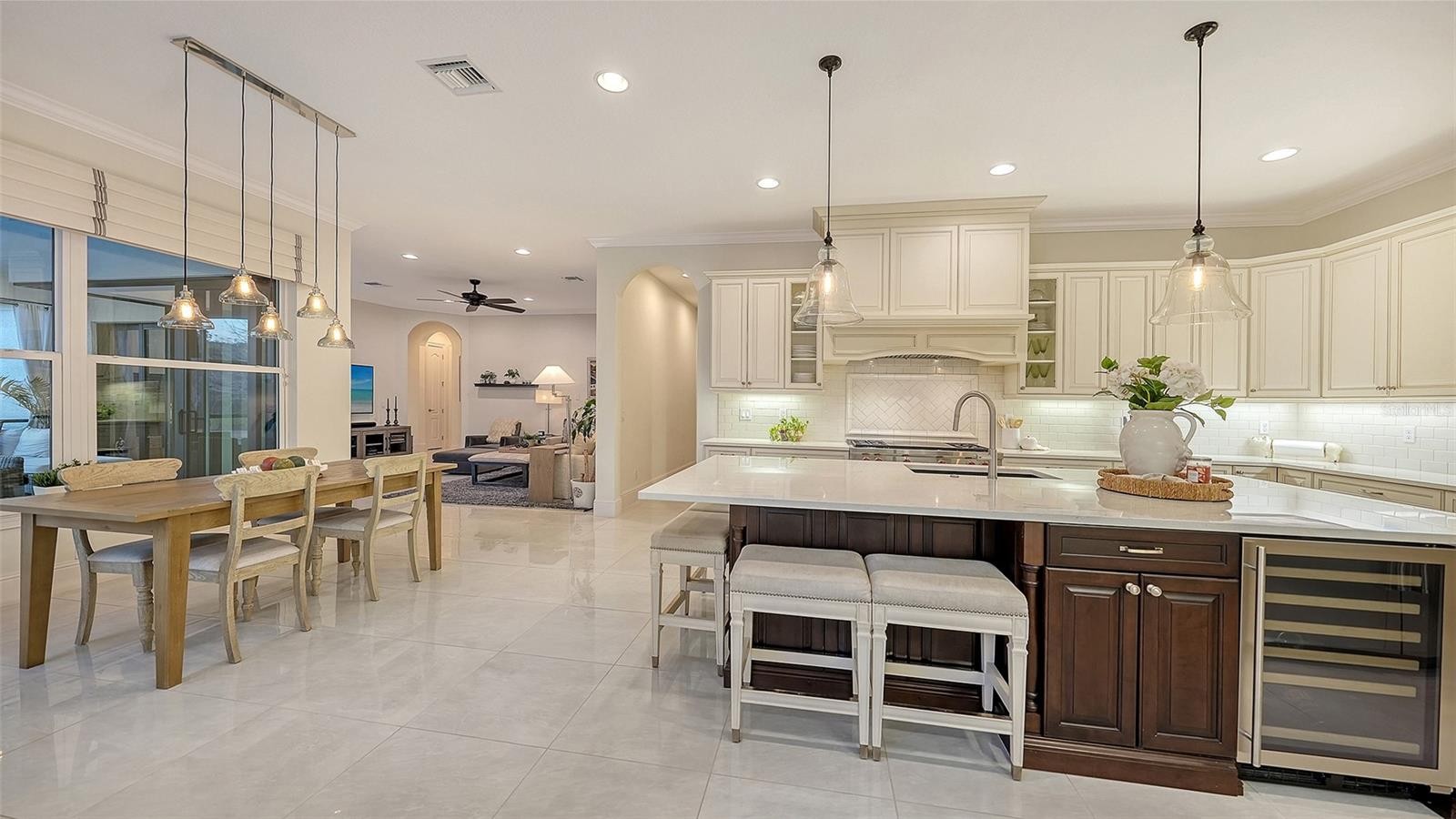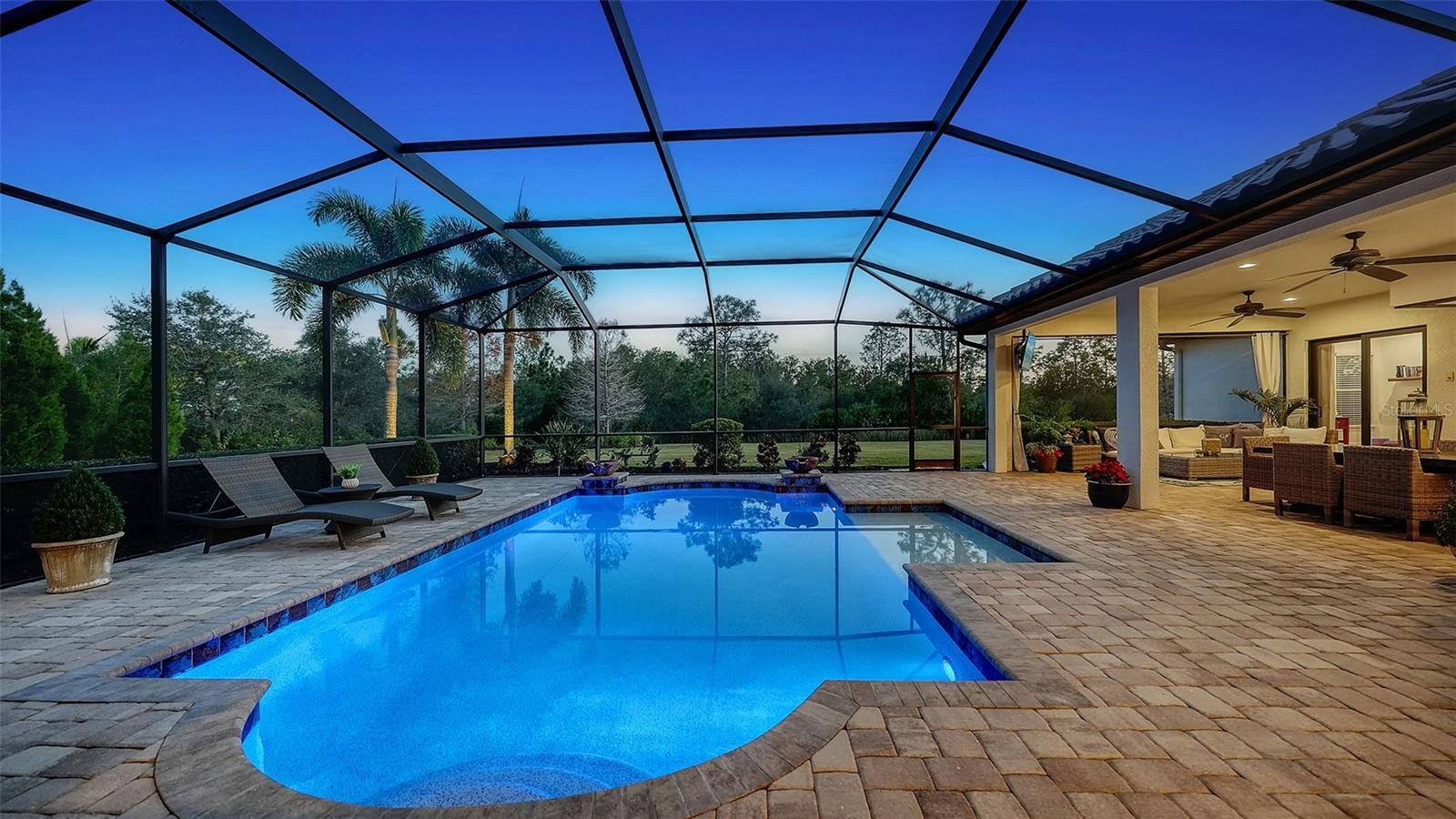 Set within the prestigious gates of The Concession, this exquisite four-bedroom John Cannon residence captures the essence of refined Florida living. Sunlight pours through expansive windows and glass doors, illuminating beautifully curated interiors and framing tranquil preserve views. Thoughtfully designed to balance elegance and comfort, the home offers both formal and casual living spaces ideal for entertaining or unwinding in style. Rich wood and tile flooring, crown molding, and timeless architectural details create a warm, sophisticated atmosphere throughout. The formal living room flows seamlessly to the pool terrace, setting the stage for memorable gatherings. At the heart of the home, the gourmet kitchen impresses with quartz countertops, a statement center island, designer tile backsplash, and top-tier appliances—perfect for hosting everything from intimate dinners to festive celebrations. A flexible den and spacious bonus room provide endless possibilities for work, relaxation, or play. The serene primary suite is a private retreat featuring wood floors, a generous walk-in closet, and a spa-inspired bath with soaking tub and separate walk-in shower. Step outside to your own resort-style escape on the screened lanai, where a sparkling heated pool, covered entertaining area, and peaceful preserve backdrop invite year-round enjoyment. Additional highlights include a large laundry room, impact windows, and a three-car side-entry garage. The Concession is renowned for its majestic estates, privacy, and timeless elegance—offering a lifestyle of distinction just minutes from premier shopping, dining, world-class beaches, and Sarasota’s vibrant arts and culture scene.