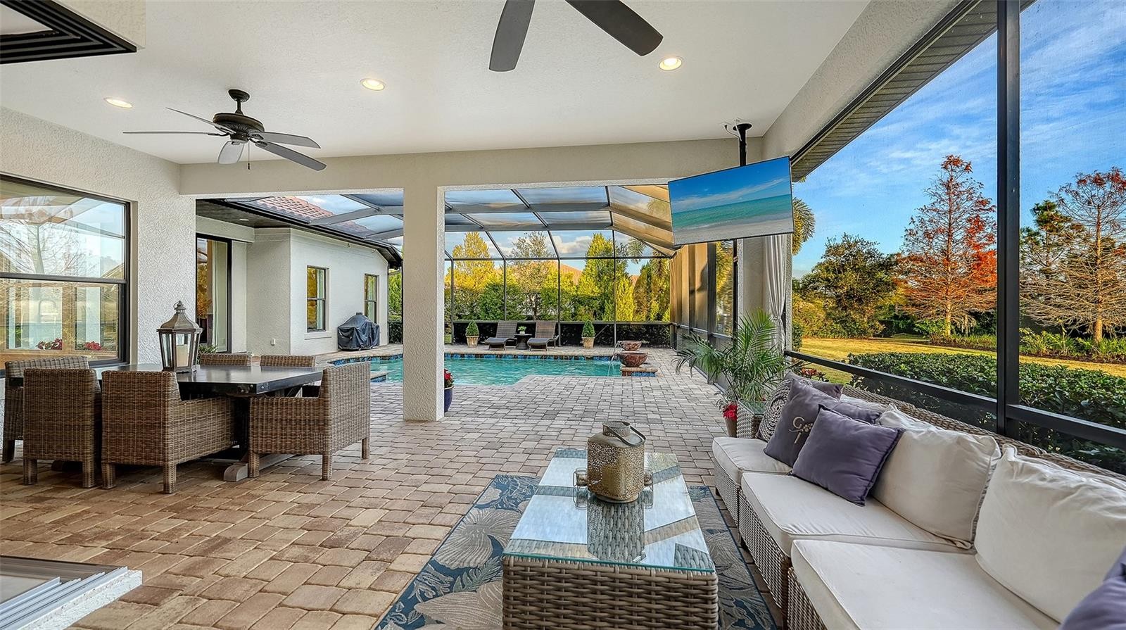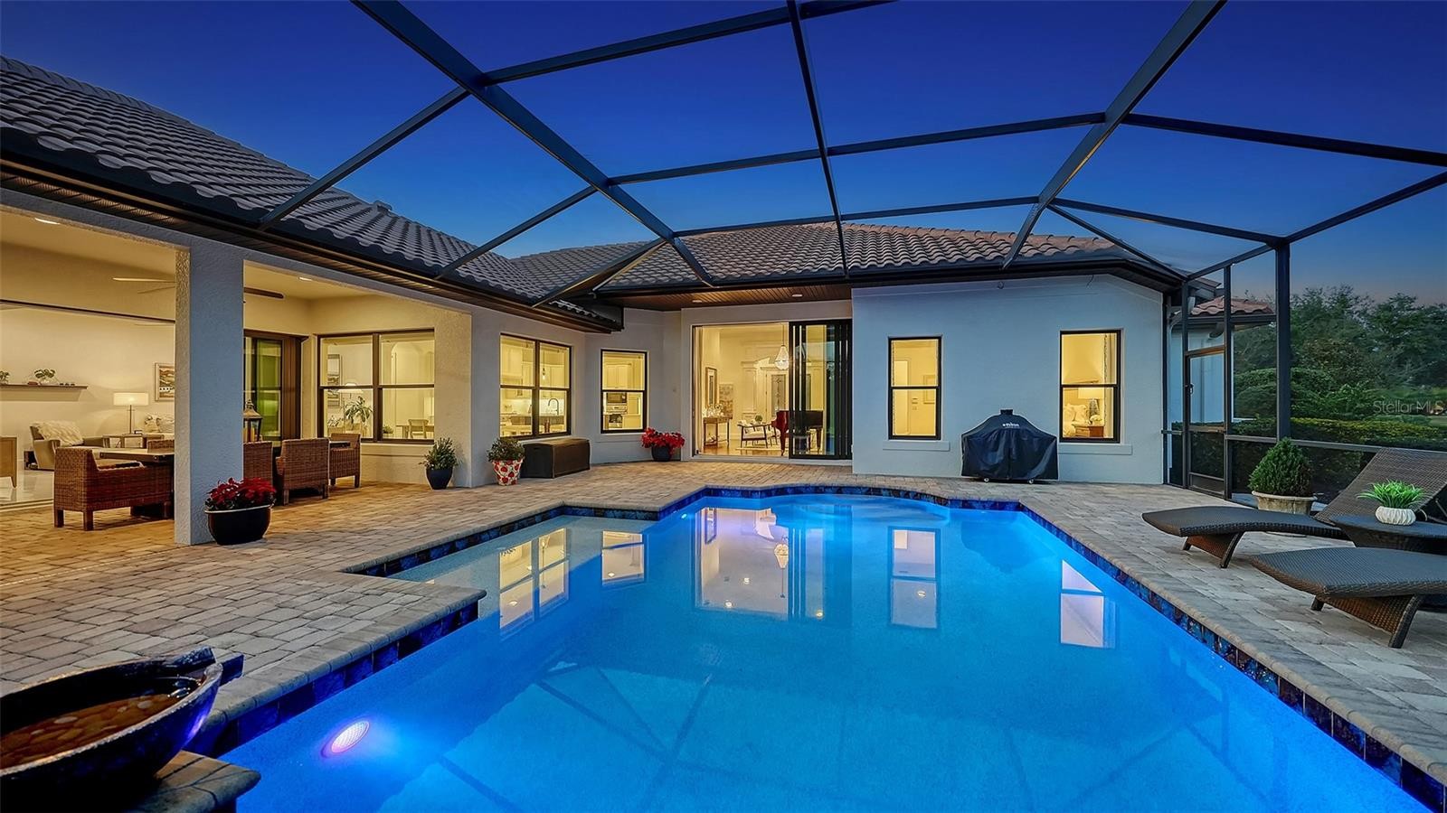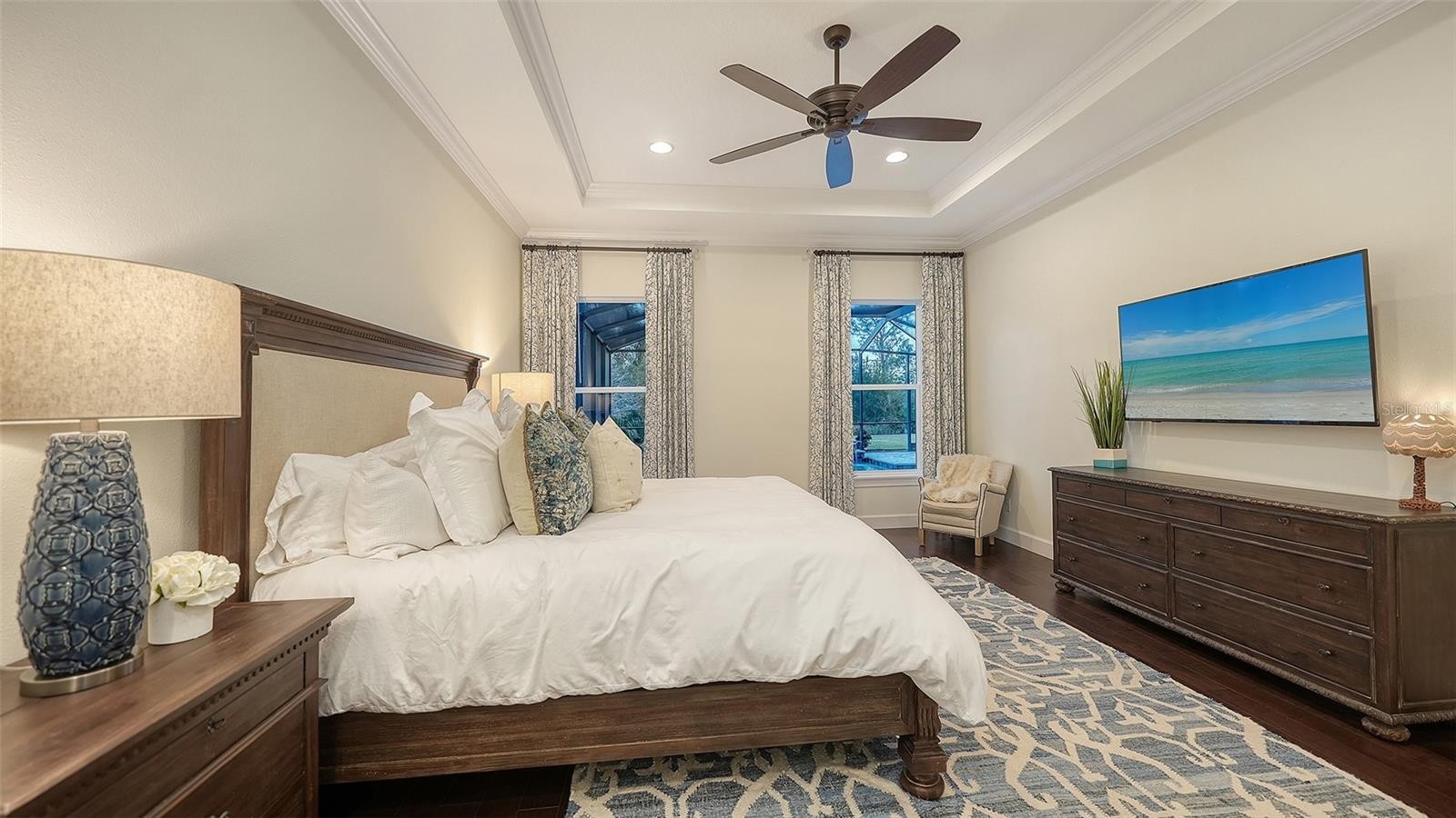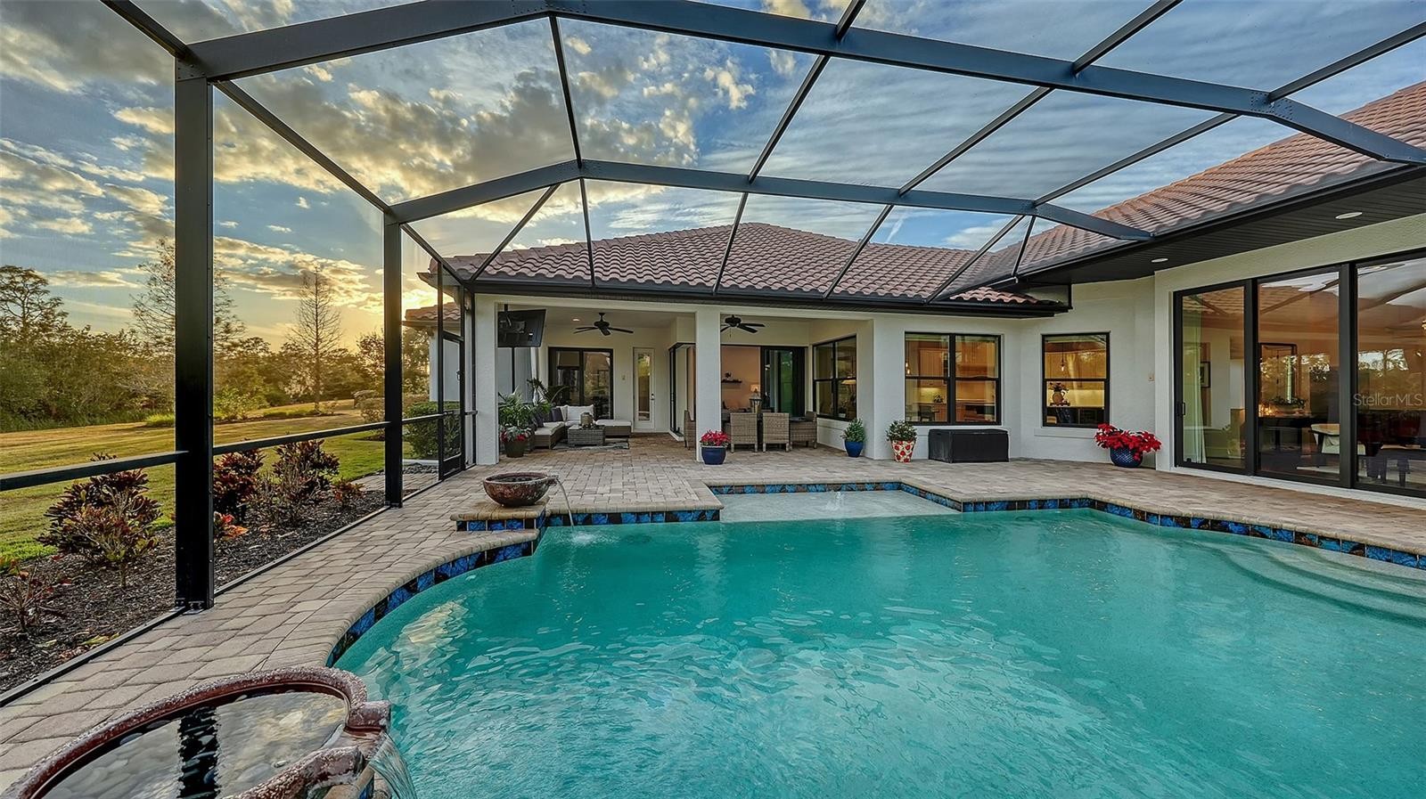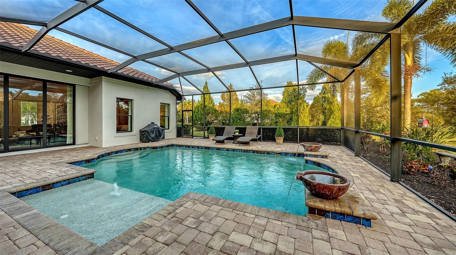 Set within the prestigious gates of The Concession, this exquisite four-bedroom John Cannon residence captures the essence of refined Florida living. Sunlight pours through expansive windows and glass doors, illuminating beautifully curated interiors and framing tranquil preserve views. Thoughtfully designed to balance elegance and comfort, the home offers both formal and casual living spaces ideal for entertaining or unwinding in style. Rich wood and tile flooring, crown molding, and timeless architectural details create a warm, sophisticated atmosphere throughout. The formal living room flows seamlessly to the pool terrace, setting the stage for memorable gatherings. At the heart of the home, the gourmet kitchen impresses with quartz countertops, a statement center island, designer tile backsplash, and top-tier appliances—perfect for hosting everything from intimate dinners to festive celebrations. A flexible den and spacious bonus room provide endless possibilities for work, relaxation, or play. The serene primary suite is a private retreat featuring wood floors, a generous walk-in closet, and a spa-inspired bath with soaking tub and separate walk-in shower. Step outside to your own resort-style escape on the screened lanai, where a sparkling heated pool, covered entertaining area, and peaceful preserve backdrop invite year-round enjoyment. Additional highlights include a large laundry room, impact windows, and a three-car side-entry garage. The Concession is renowned for its majestic estates, privacy, and timeless elegance—offering a lifestyle of distinction just minutes from premier shopping, dining, world-class beaches, and Sarasota’s vibrant arts and culture scene.