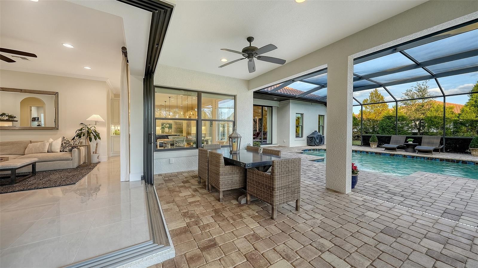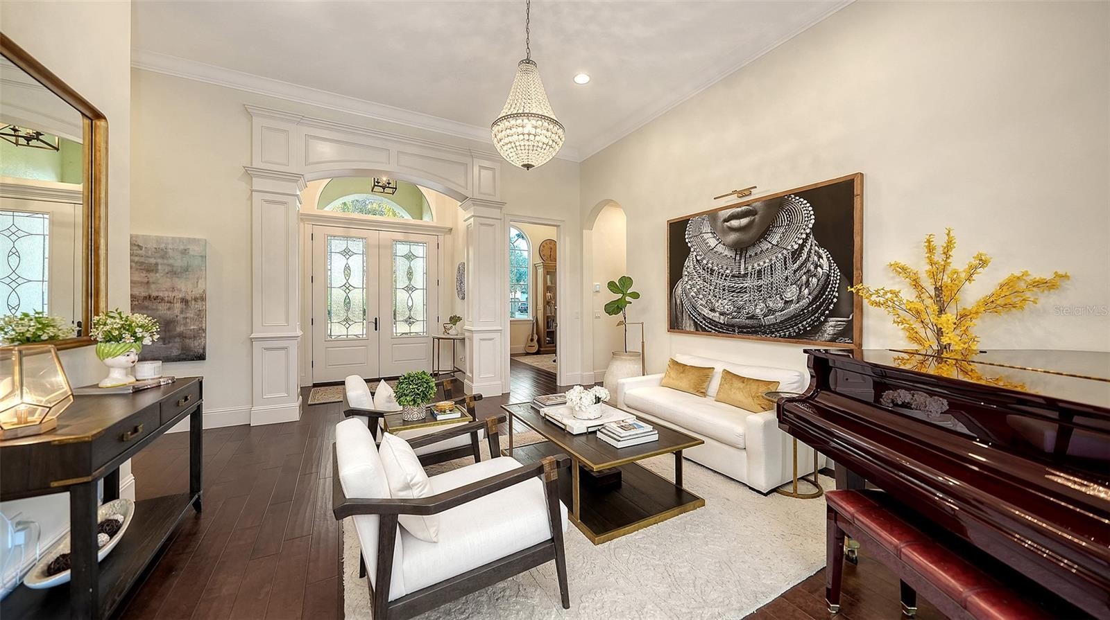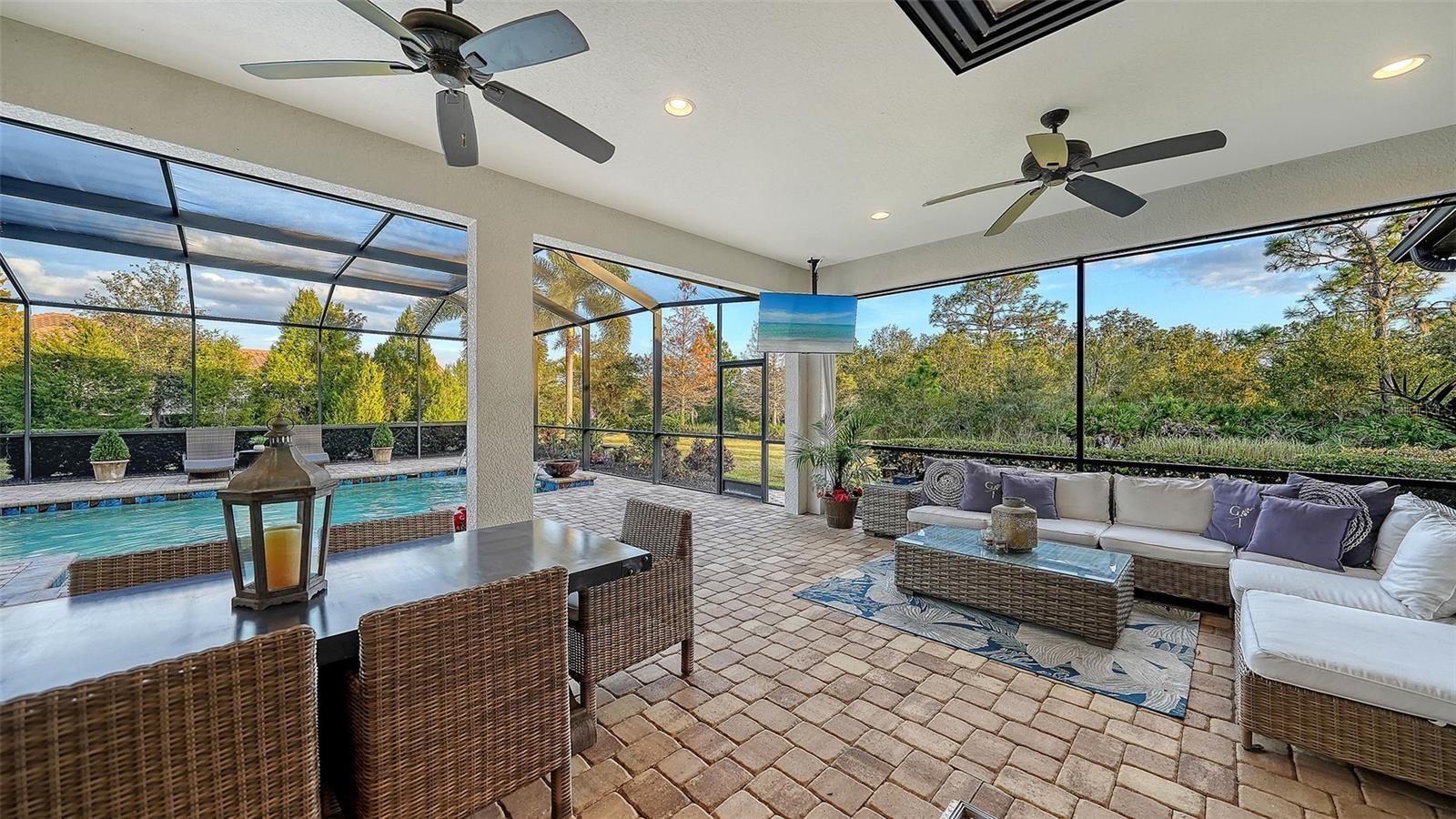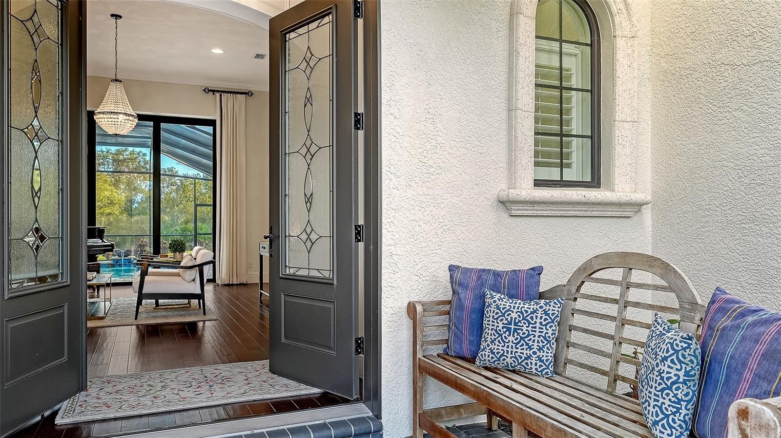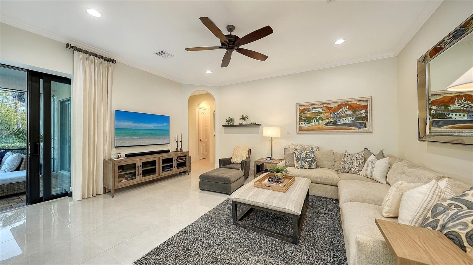 Set within the prestigious gates of The Concession, this exquisite four-bedroom John Cannon residence captures the essence of refined Florida living. Sunlight pours through expansive windows and glass doors, illuminating beautifully curated interiors and framing tranquil preserve views. Thoughtfully designed to balance elegance and comfort, the home offers both formal and casual living spaces ideal for entertaining or unwinding in style. Rich wood and tile flooring, crown molding, and timeless architectural details create a warm, sophisticated atmosphere throughout. The formal living room flows seamlessly to the pool terrace, setting the stage for memorable gatherings. At the heart of the home, the gourmet kitchen impresses with quartz countertops, a statement center island, designer tile backsplash, and top-tier appliances—perfect for hosting everything from intimate dinners to festive celebrations. A flexible den and spacious bonus room provide endless possibilities for work, relaxation, or play. The serene primary suite is a private retreat featuring wood floors, a generous walk-in closet, and a spa-inspired bath with soaking tub and separate walk-in shower. Step outside to your own resort-style escape on the screened lanai, where a sparkling heated pool, covered entertaining area, and peaceful preserve backdrop invite year-round enjoyment. Additional highlights include a large laundry room, impact windows, and a three-car side-entry garage. The Concession is renowned for its majestic estates, privacy, and timeless elegance—offering a lifestyle of distinction just minutes from premier shopping, dining, world-class beaches, and Sarasota’s vibrant arts and culture scene.