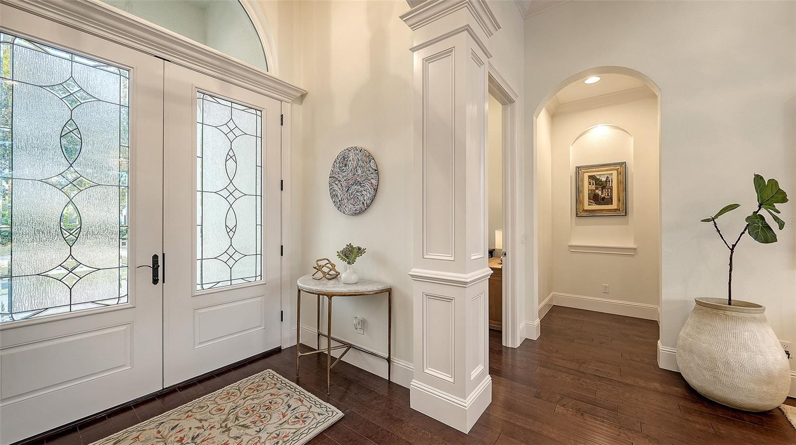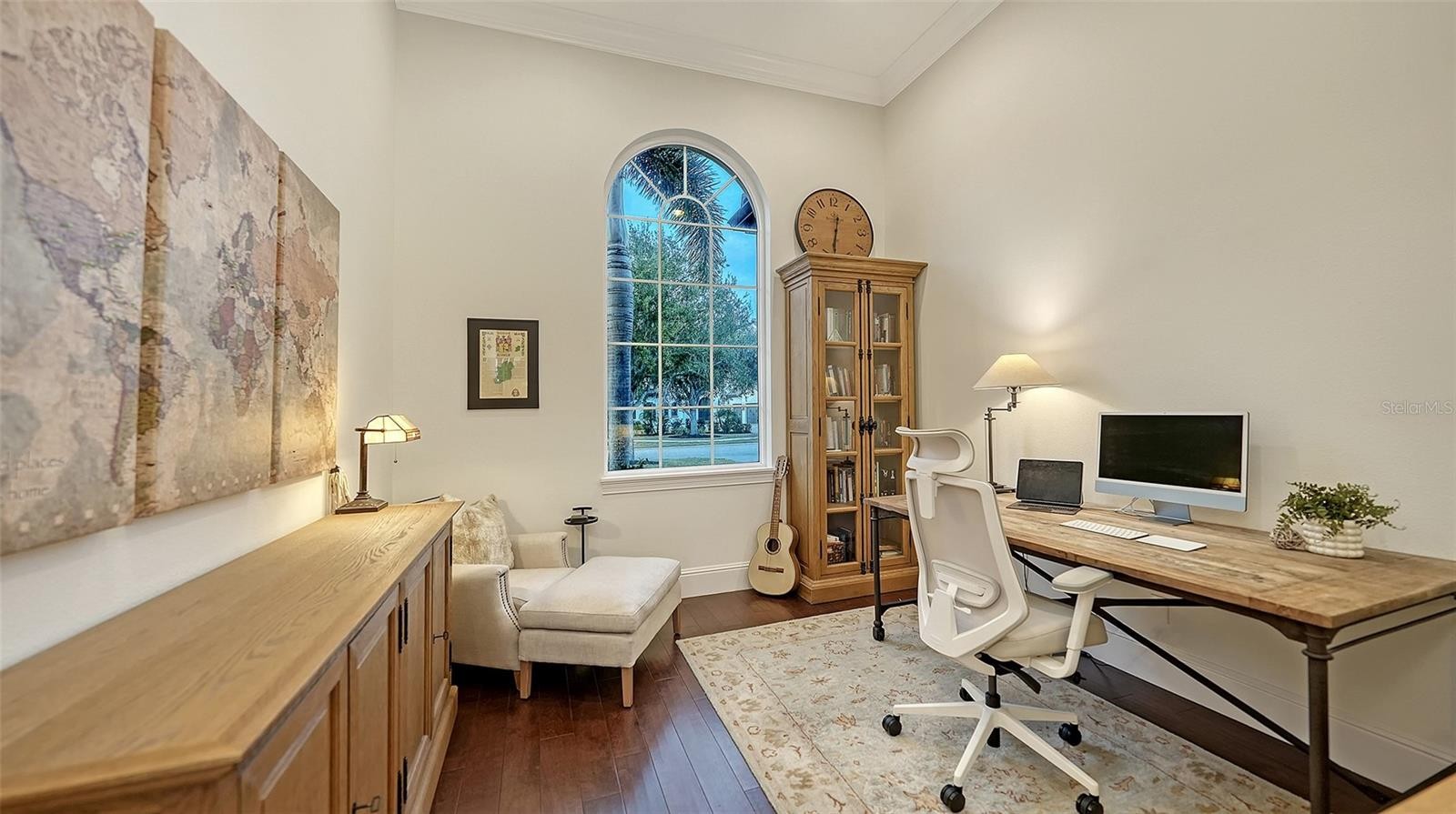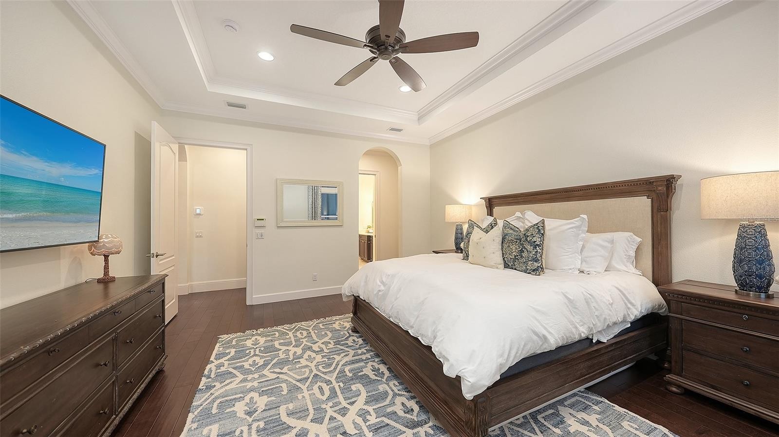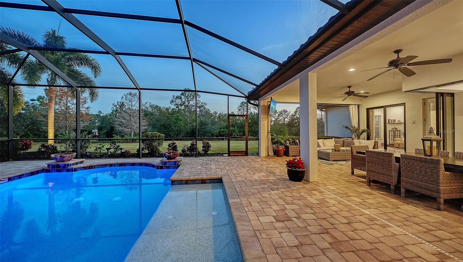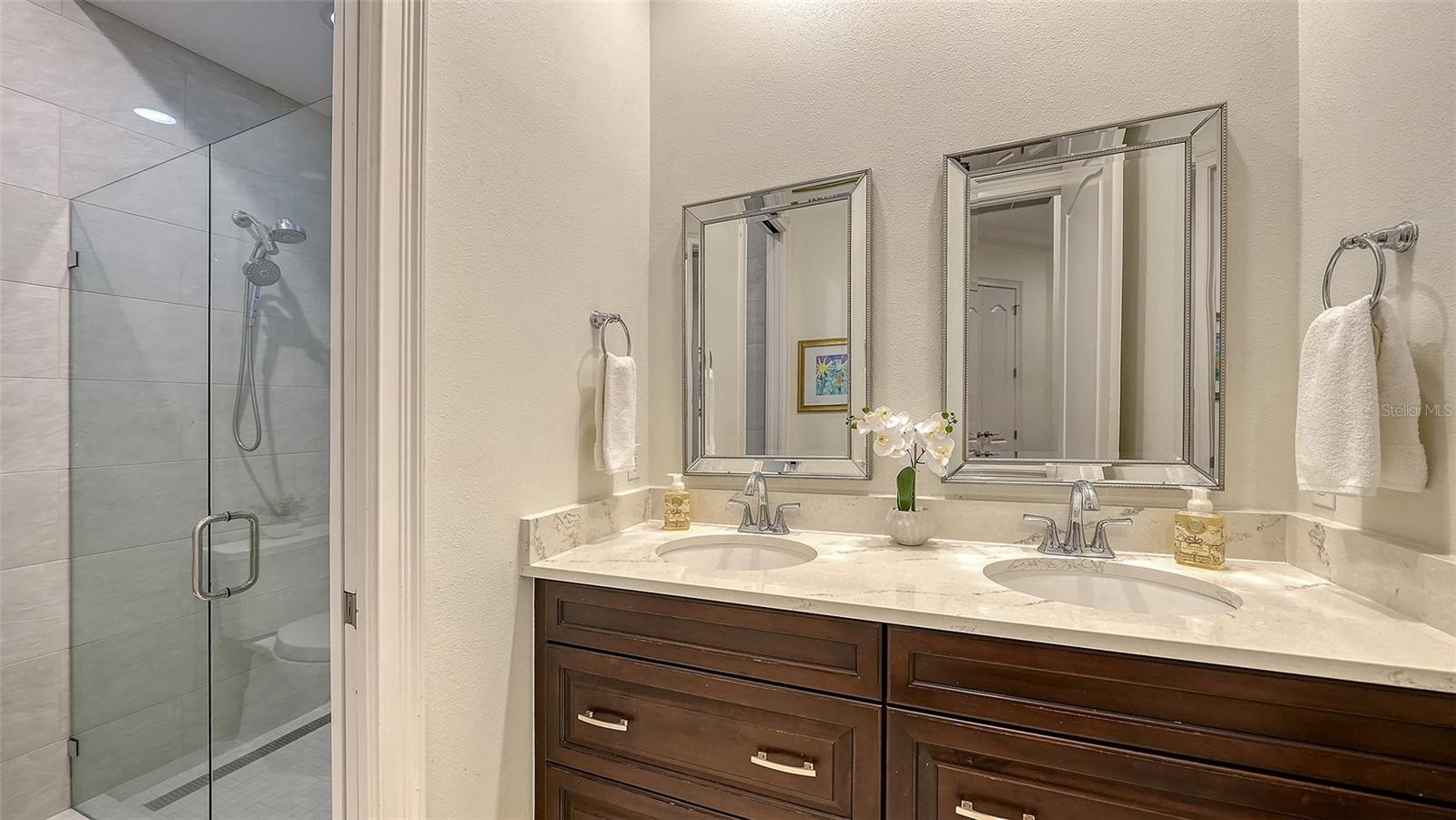 Set within the prestigious gates of The Concession, this exquisite four-bedroom John Cannon residence captures the essence of refined Florida living. Sunlight pours through expansive windows and glass doors, illuminating beautifully curated interiors and framing tranquil preserve views. Thoughtfully designed to balance elegance and comfort, the home offers both formal and casual living spaces ideal for entertaining or unwinding in style. Rich wood and tile flooring, crown molding, and timeless architectural details create a warm, sophisticated atmosphere throughout. The formal living room flows seamlessly to the pool terrace, setting the stage for memorable gatherings. At the heart of the home, the gourmet kitchen impresses with quartz countertops, a statement center island, designer tile backsplash, and top-tier appliances—perfect for hosting everything from intimate dinners to festive celebrations. A flexible den and spacious bonus room provide endless possibilities for work, relaxation, or play. The serene primary suite is a private retreat featuring wood floors, a generous walk-in closet, and a spa-inspired bath with soaking tub and separate walk-in shower. Step outside to your own resort-style escape on the screened lanai, where a sparkling heated pool, covered entertaining area, and peaceful preserve backdrop invite year-round enjoyment. Additional highlights include a large laundry room, impact windows, and a three-car side-entry garage. The Concession is renowned for its majestic estates, privacy, and timeless elegance—offering a lifestyle of distinction just minutes from premier shopping, dining, world-class beaches, and Sarasota’s vibrant arts and culture scene.
