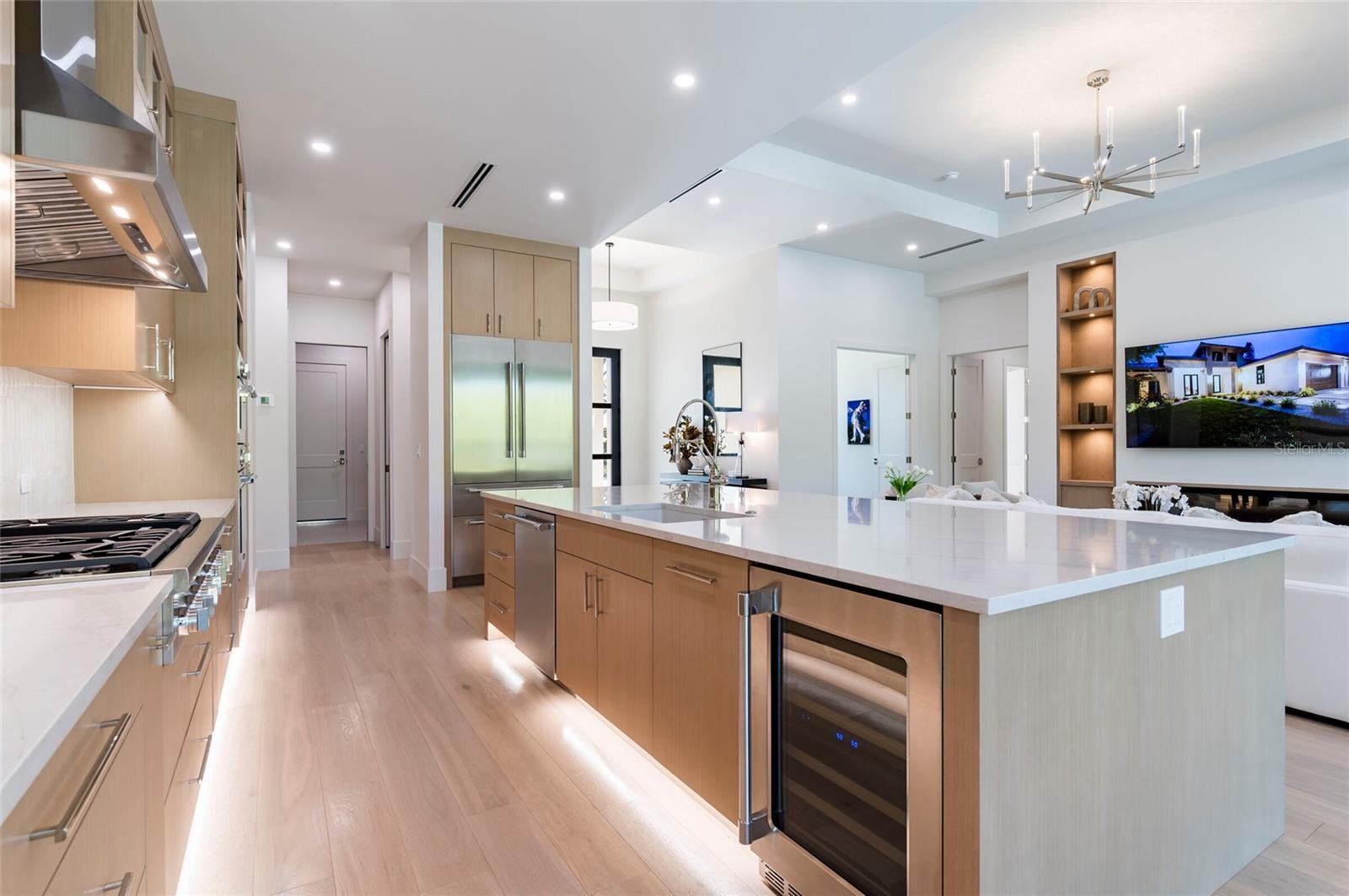 Welcome to 1959 Wisteria Street – a beautiful New Construction Single Story home, West of the Trail, that your clients will love! This just-completed modern coastal single story home is located West of the Trail in preferred Flood Zone X, offering elevated storm protection and convenient access to Southside Village, Downtown Sarasota and Siesta Key beaches. Designed and built with Majestik Homes' signature strength and style, this 3 bedroom plus office, 4 bath home blends architectural elegance with energy efficiency and storm-ready construction. You will be awestruck as you open the home’s large glass-paneled double doors and step into a spacious foyer that flows seamlessly into an expansive great room filled with natural light and a striking entertainment wall — perfect for relaxed living and stylish entertaining. Panoramic sliding glass doors open to a private backyard oasis featuring a sparkling pool and spa, and a fully appointed outdoor BBQ area designed for effortless Florida entertaining. The chef’s kitchen features high-end gas appliances, and the dining room is ideal for intimate dinners and larger gatherings alike. The Primary Suite is spacious and luxurious with its own private lanai. The spa-inspired primary bath offers both an indoor shower and a private outdoor shower for a true resort-style experience. Bedroom 3 includes an en-suite bath. Situated on a generous homesite with large side yards and enhanced privacy, the property is complemented by a circular driveway and an oversized 3-car garage — providing ample space for guests, storage, and everyday functionality. Beautifully staged and thoughtfully designed, this home showcases artwork from some of the local area’s most inspiring artists. Easy to show — you won’t want to miss this exceptional opportunity.