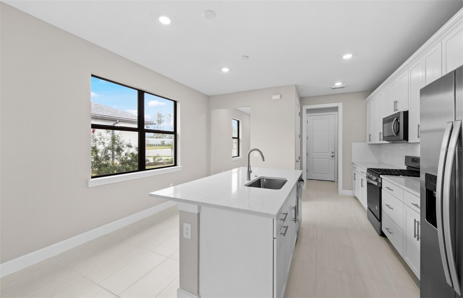 This beautiful Hallmark home is available now and offers 3 spacious bedrooms, 2 bathrooms, and a 2-car garage. Thoughtfully designed with high-end upgrades throughout, the home features white cabinets paired with elegant quartz countertops and stainless steel appliances in the kitchen. A large island with pendant prewire makes it perfect for entertaining. The laundry room includes a convenient sink, and the bathrooms are elevated with shower tile extended to the ceiling, a heavy glass shower door, and a built-in shower niche. Additional upgrades include 8' interior doors, upgraded 5" baseboards, stylish two-tone paint, and a smart home package. Beyond your doorstep, Arbor Oaks provides an array of resort-style amenities. Spend sunny afternoons at the pool with lap lanes and spa, unwind at the Barefoot Bar, or gather with friends by the Firepit Grill. The state-of-the-art clubhouse features a fitness center, community room, catering kitchen, activity rooms, and an outdoor veranda. Enjoy friendly competition on the pickleball, bocce ball, and tennis courts, or host a cookout at the BBQ grills. Your four-legged companion will love the community dog park, and for beach lovers, pristine destinations like Stump Pass State Park and Siesta Key are just a short drive away. Experience the best of Florida living at Arbor Oaks—your dream home awaits! Photo is from a completed home of the same model. Options for this home may vary.