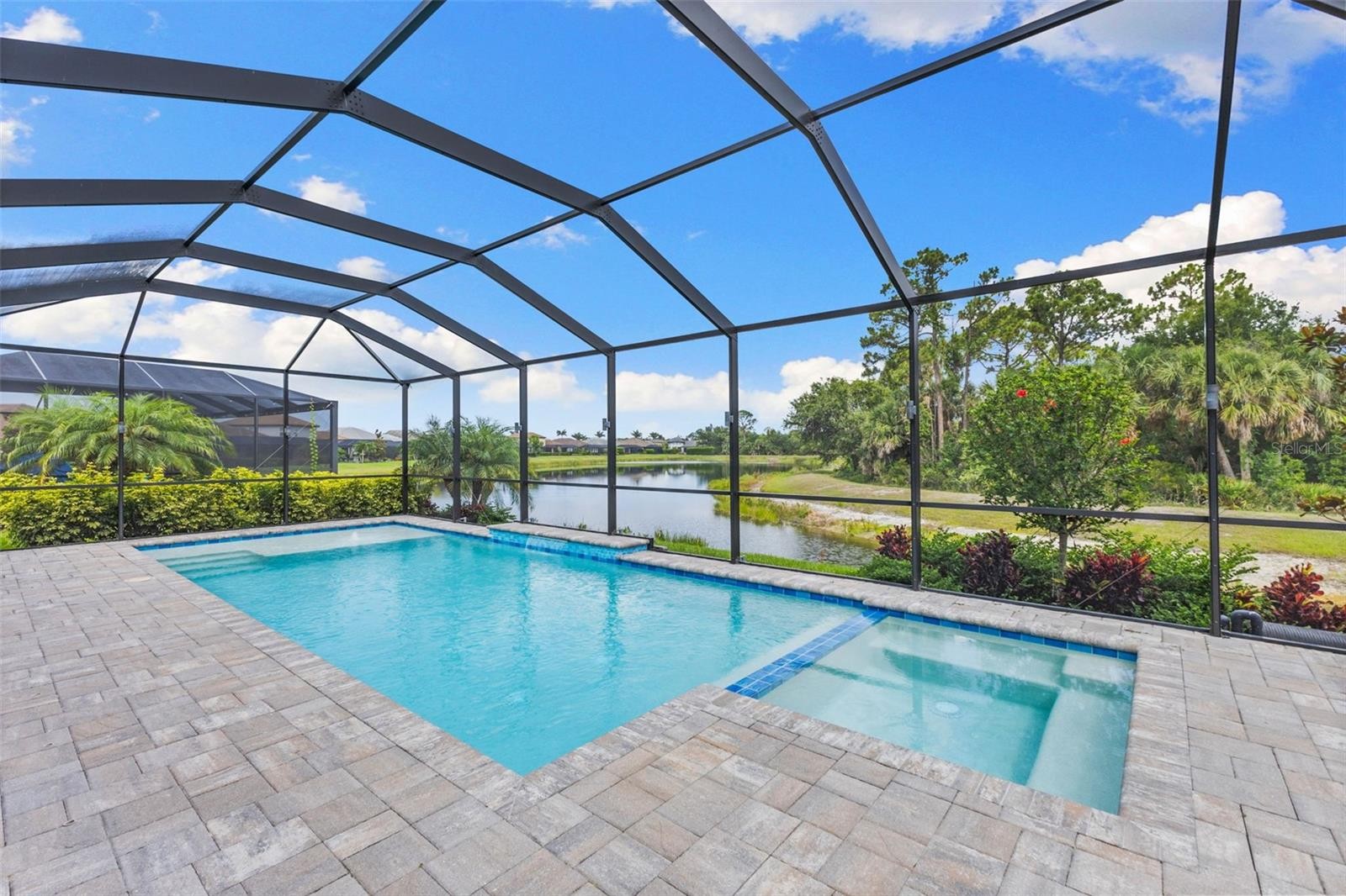 BEST priced per square foot home in community! You could not build this home with its upgrades for this price! Over $300,000 in upgrades alone! Every inch of the home has been built for luxury living and ease of entertaining. As you step through the grand entryway, you’re immediately greeted by soaring ceilings, abundant natural light, and expansive open-concept living spaces designed for both relaxation and entertaining. Two master suites downstairs each offering spa-inspired bathrooms, generous walk-in closets, and there are also two additional guestrooms downstairs so 4 of the 5 bedrooms are downstairs with a 3rd potential master suite and huge loft area upstairs. Home would be great for a large family or multigenerational living. Let’s not forget the heart of the home is the chef’s kitchen—complete with high-end appliances, large pantry, custom cabinetry, and a HUGE island that flows effortlessly into the elegant dining and living areas that overlook the pool. Whether it’s a quiet night in or a lively gathering, this space is designed to impress. Imagine relaxing by the pool on a breezy night while you enjoy the most amazing sunsets right in your very own backyard. Once you Step outside to your private resort like backyard you will be in awe of the beautifully landscaped yard and your waterfront view that surrounds a sparkling pool and spa perfect for cooling off or soaking up the Florida sunshine. The spacious patio invites year-round outdoor living with plenty of room to lounge, dine, and unwind and of course the BEST views of our amazing southwest Florida sunsets!! Home is located in the exclusive gated community of Oasis in desirable Wellen Park and just a short drive to top rated beaches. Worry free lifestyle with exterior grounds maintenance included in the HOA dues and storm proof impact resistant windows and doors throughout home. Enjoy the charm of this smaller community with friendly neighbors. Set in a secure, meticulously maintained gated community, residents enjoy peace of mind and premium amenities—all of this and just minutes from world-class beaches, dining, and entertainment AND NOT IN A FLOOD ZONE! This is more than just a home—it’s a lifestyle. Schedule your private tour today and experience waterfront luxury at its finest. .