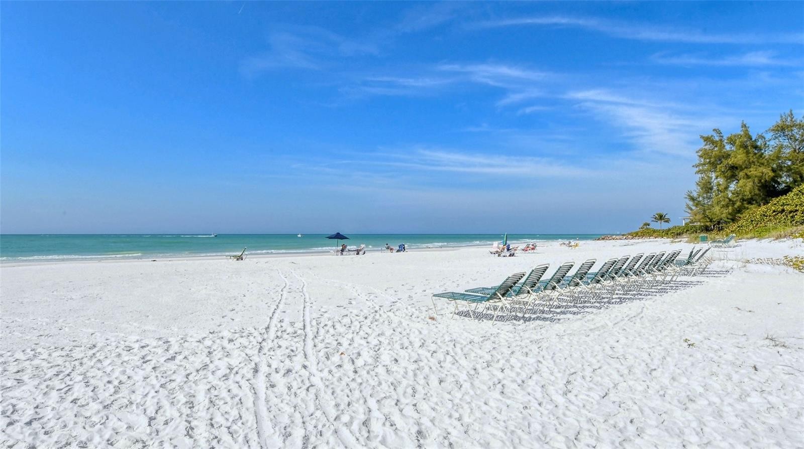 Welcome to effortless coastal living in this beautifully UPDATED second floor midrise residence in the premier GULF FRONT property of Whispering Sands! Designed with an OPEN CONCEPT floor plan, this light-filled condo showcases a bright, sophisticated kitchen featuring quartz countertops, stainless Samsung appliances, an impressive 8' breakfast bar with seating for 3, soft close cabinetry, and recessed lighting—all complemented by an elegant uplit tray ceiling. A true highlight is the expansive 29' x 8' lanai stretching the full length of the residence—offering an inviting extension of the living space ideal for relaxing, dining, or working from home, complete with hurricane impact sliders for total peace of mind. Both bathrooms have been tastefully updated with granite countertops and tiled, glass-enclosed walk-in showers, while ceiling fans and crown molding add comfort and sophistication throughout the unit. Beyond the residence, Whispering Sands offers true resort-style living in a premier Gulf front setting. Spend your days lounging on your private beach, taking a refreshing swim in one of two heated pools, an invigorating workout in the gym, or enjoying the vibrant social atmosphere of the clubhouse just steps from your door. Whether it’s a peaceful morning walk along the shoreline or a sunset gathering with neighbors, every day feels like a vacation. Perfectly positioned just steps from the clubhouse—currently undergoing complete remodeling in 2026—and pool, and a short stroll along the sidewalk to your 800' of your own private beach, this residence embodies the very best of resort style living. Ideally located just around the corner from the boutiques and restaurants of Siesta Key Village, you'll enjoy the perfect balance of relaxed beachfront living and easy access to dining, entertainment and island charm. Move right in and start enjoying the easy island lifestyle you’ve been dreaming of!