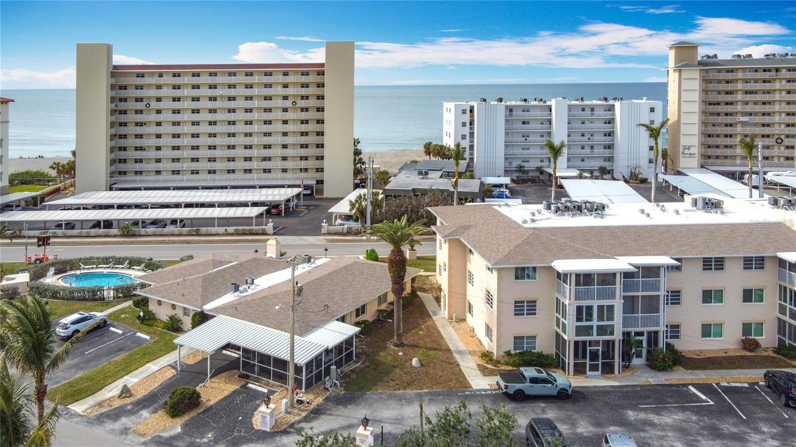 Welcome to Unit A7 at Gulf Point Condominiums — a charming 1-bedroom, 1-bath, furnished, ground-floor condo perfectly positioned right across the street from the beach.This well-maintained unit offers easy, convenient living with two private entry options: access through the interior hallway or directly through your lanai, which features a sidewalk leading straight to the parking lot — ideal for carrying groceries or coming and going with ease.Inside, you’ll find a comfortable and functional layout. The dining area features attractive laminate flooring, while the kitchen offers durable linoleum flooring. The bedroom is cozy and inviting with soft carpet underfoot, creating a relaxing retreat at the end of the day.Residents of Gulf Point enjoy a community pool, perfect for soaking up the Florida sunshine or cooling off after a day at the beach. With its ground-floor location and unbeatable proximity to the sand, this unit is ideal as a full-time residence, vacation getaway, or investment opportunity.Enjoy simple coastal living just steps from the Gulf — schedule your showing today.