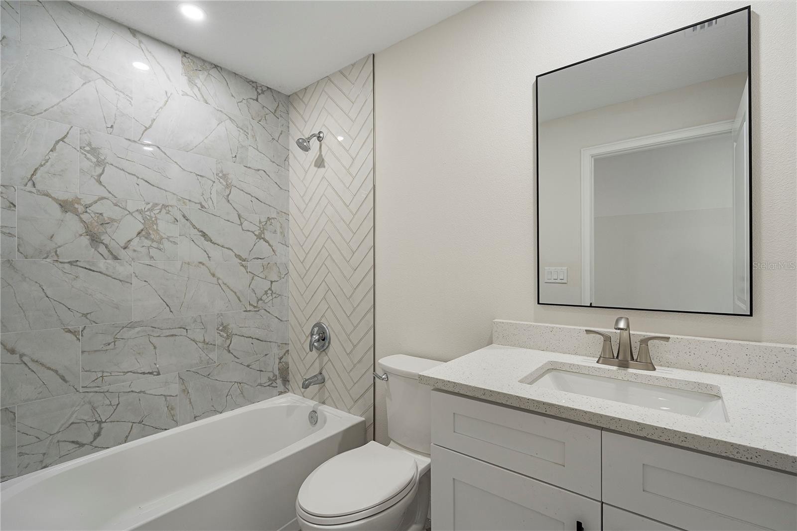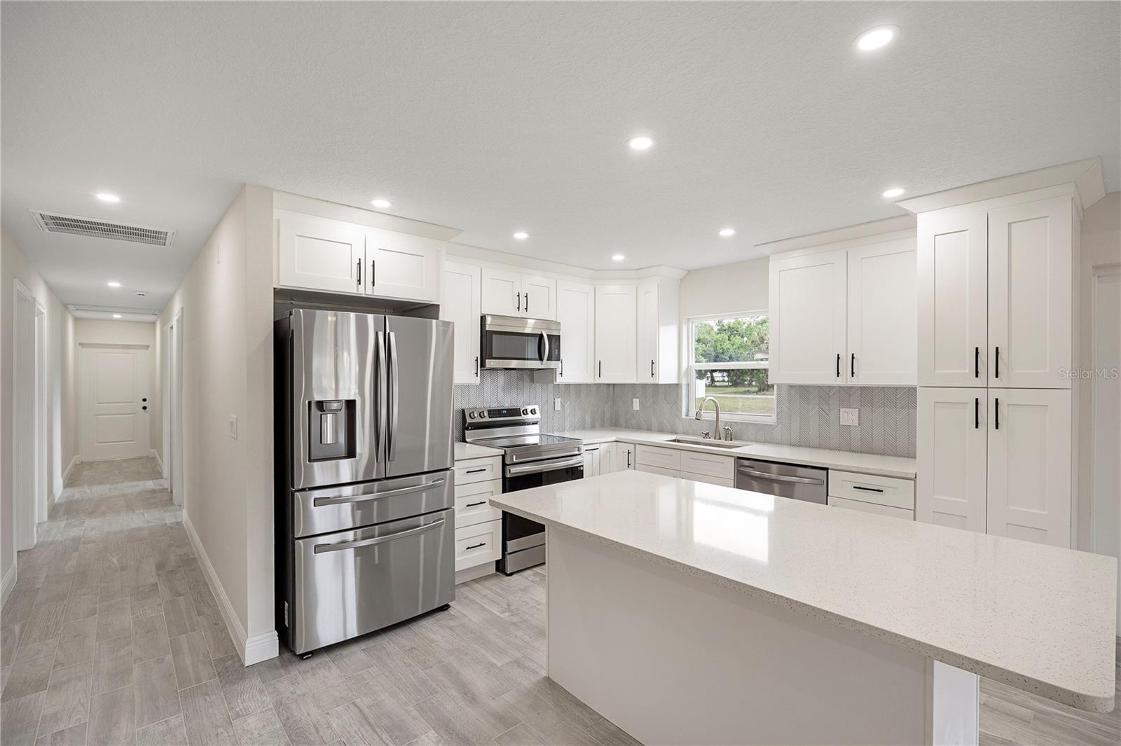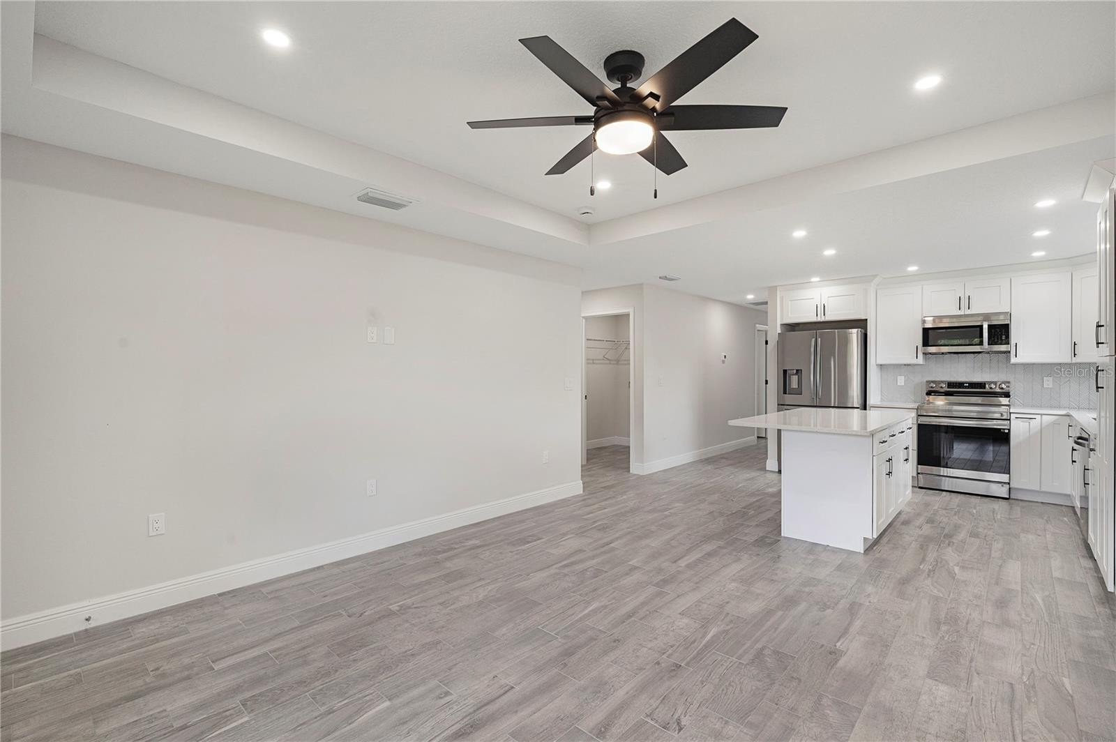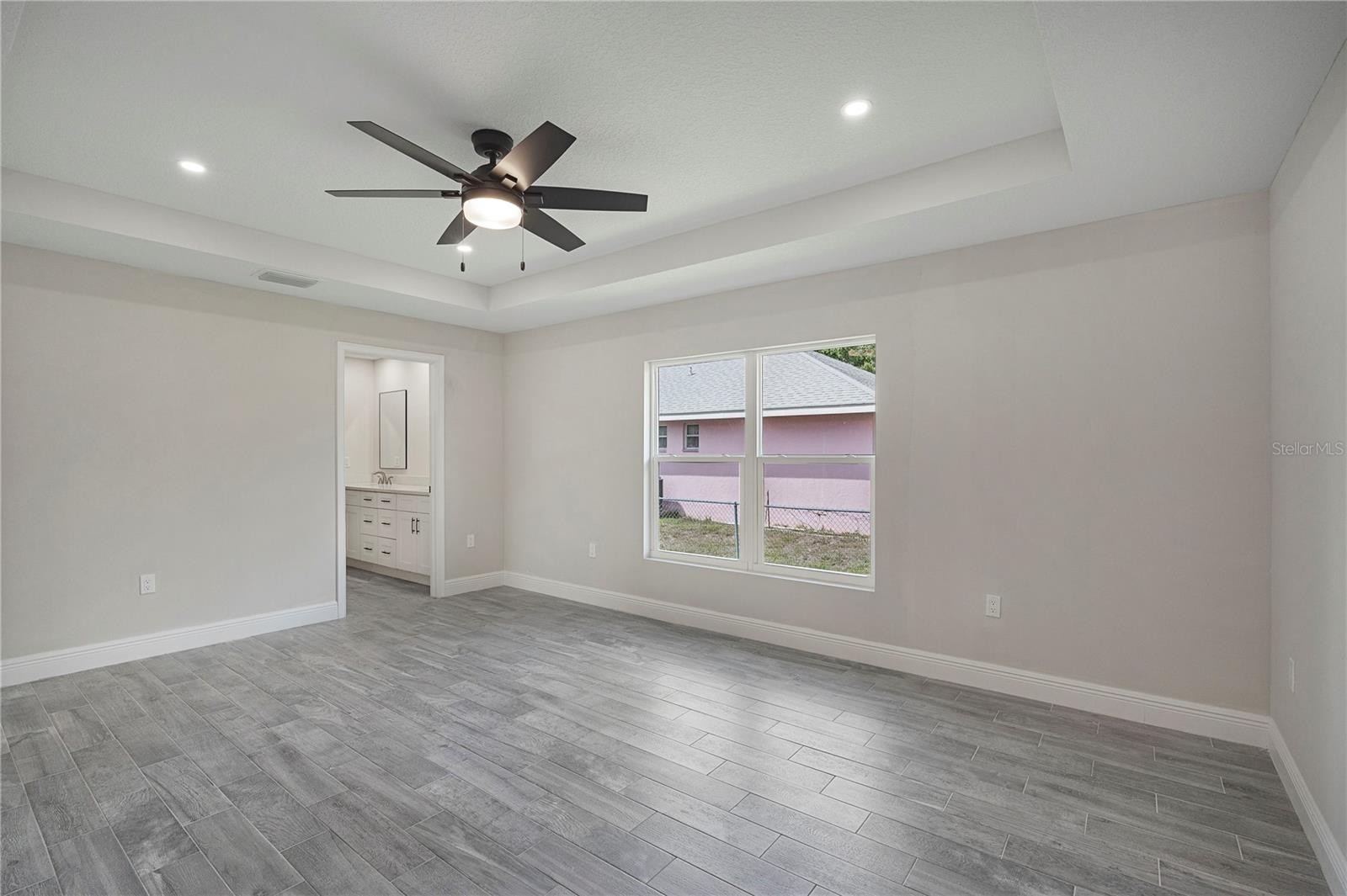 Welcome home to this brand new, move-in ready 3-bedroom, 2-bath beauty designed for comfort and modern living. From the moment you arrive, you’re greeted by a charming covered front patio—perfect for relaxing with your morning coffee or unwinding in the evening. Step inside to an inviting open-concept layout where the living room, dining area, and kitchen seamlessly blend together, creating the ideal space for both everyday living and entertaining. The living room features an elegant tray ceiling, recessed lighting, and large windows that fill the space with natural light. The kitchen is a true standout, complete with brand new stainless steel appliances, sleek quartz countertops, and soft-close cabinetry that combines style with functionality. Retreat to the spacious primary suite, offering a large walk-in closet and a beautifully appointed ensuite bathroom. The primary bath features a double vanity with quartz countertops and a tiled walk-in shower, providing a spa-like experience at home. Additional highlights include tile flooring and ceiling fans throughout, adding both durability and comfort. Step outside to enjoy a generously sized backyard with plenty of room to create your own outdoor oasis. This home offers the perfect blend of modern finishes and thoughtful design—ready for you to move in and make it your own!