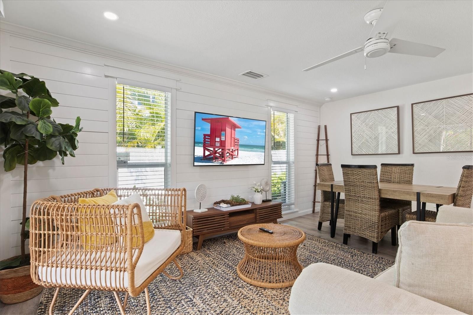 Property did NOT flood! Sold turnkey! Stunning 4 bedroom 4 bath luxury duplex pool home just 1 block from the beach! Newer heated salt water pool & backyard is a private oasis in paradise. Each unit features its own kitchen, dining area, living room & 2 bedrooms & 2 beautiful baths with private enclosed porches. Shared 1 car garage & inside laundry room with full-size washer & dryer. Both units feature designer finishes in a light, bright & renovated space, newer quartz countertops & stainless appliances. Professionally landscaped with mature trees & plenty of parking even if both units are occupied. This amazing home is located right in the heart of Holmes Beach on Anna Maria Island. Situated along the free island trolley route & close to restaurants & shopping. Welcome to paradise!