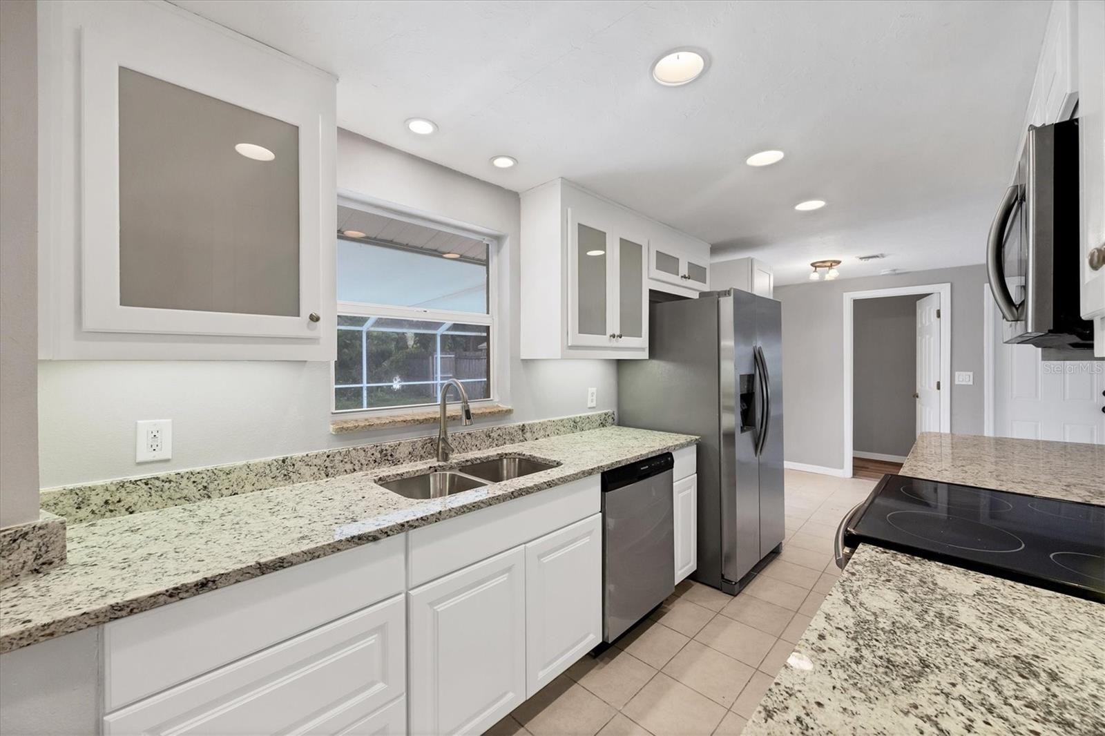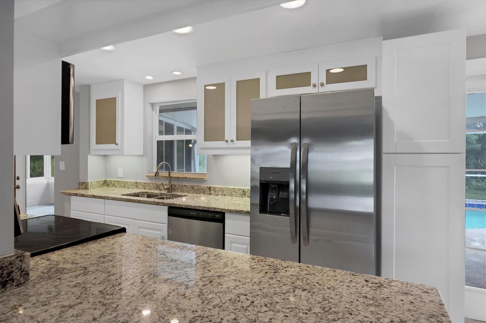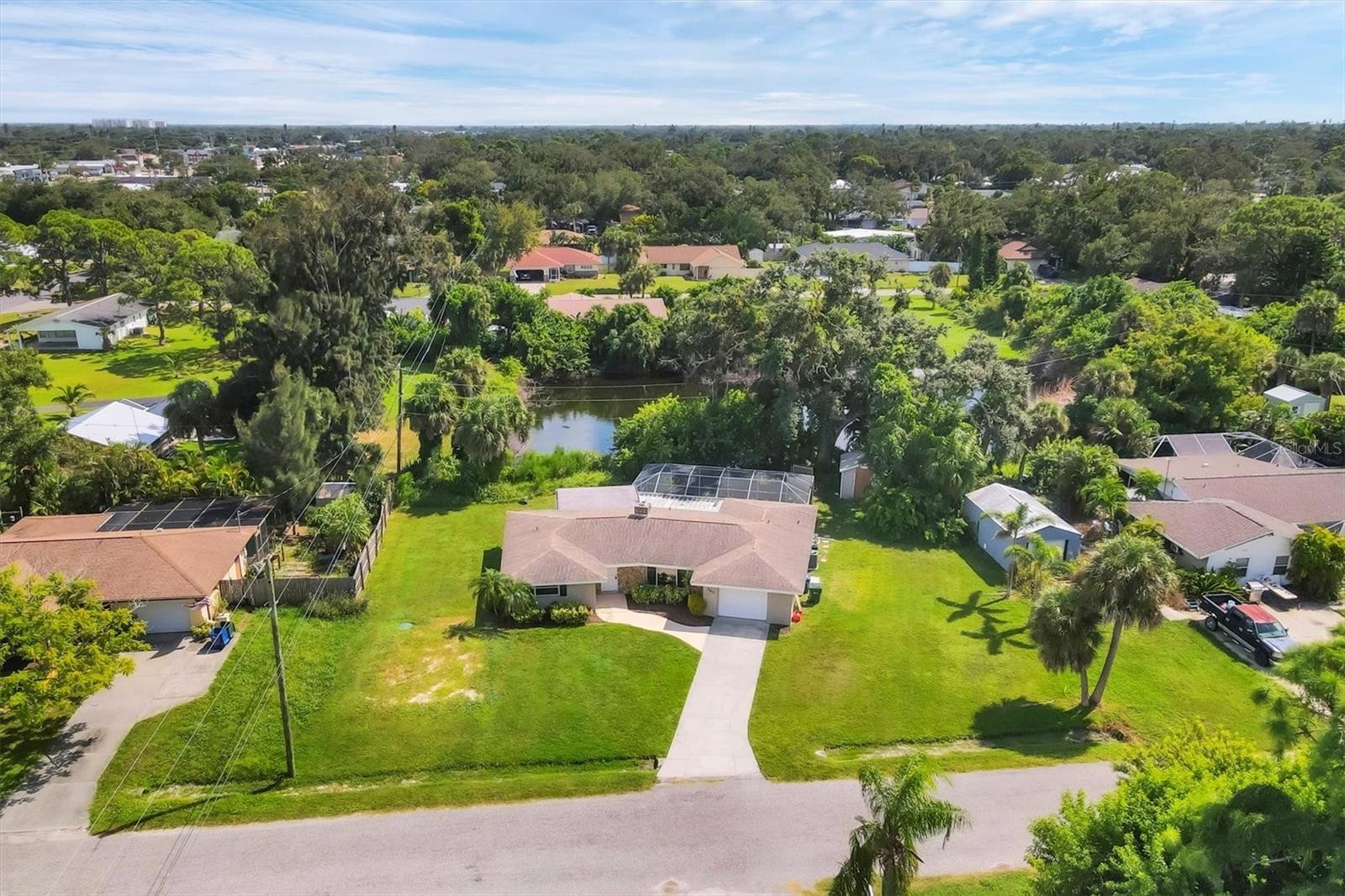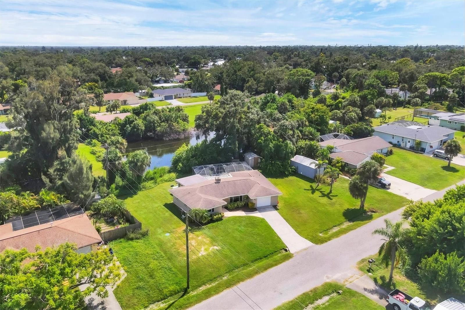 PRICE IMPROVEMENT!! This charming 3-bedroom, 2-bath home offers 1,471 square feet of comfortable living space, complete with a 1-car garage. Nestled on over a quarter-acre lot, the property features a beautifully landscaped private backyard with a tranquil pond view, perfect for relaxing or entertaining. Enjoy Florida living at its best with a screened lanai and sparkling pool. Inside, the home boasts a cozy woodburning fireplace, an updated kitchen with granite countertops and decorative shaker-style cabinets, and tastefully renovated bathrooms. Ideally located less than 4 miles from Venice Beach and close to shopping, dining, and everyday conveniences.