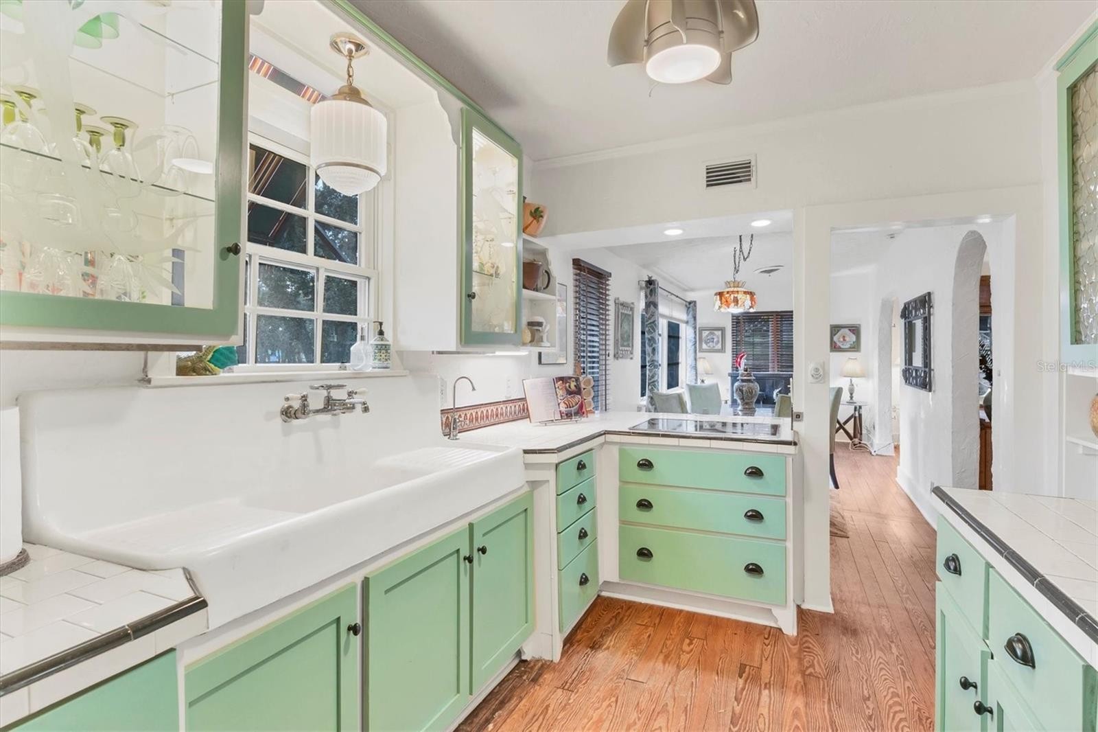 An opportunity to own a piece of local history, this architecturally significant 1924 Mediterranean Revival property was designed by renowned architect Thomas Reed Martin and built by Dr. Fred Albee as part of his early Venice-Nokomis residential development. Listed in the Sarasota County Register of Historic Places, the William Parsons House is on a 0.37-acre corner homesite in the East Nokomis Historic District and includes a primary residence and detached guest cottage totaling 2,033 square feet under roof, with 1,481 square feet under air in the main residence and 552 square feet under air in the guest cottage. Properties of this architectural pedigree and historic designation rarely come to market in this sought-after Nokomis, Florida location. Across from the Pocono Trail Preserve, the property offers approximately 150 feet of frontage along East Pocono Trail. The home welcomes you with a screened front porch that leads into the main residence, which retains original and period-appropriate features, including heart pine flooring in the kitchen, dining area and generously proportioned living room, with Saltillo terra cotta tile in other spaces. A fireplace with finely detailed masonry anchors the living space, adding architectural interest and vintage character. The vintage kitchen blends modern upgrades with early 20th-century design, featuring updated appliances, a walk-in pantry and 1930s-era etched glass cabinetry salvaged from a historic hotel. The layout includes three bedrooms and one bath, with the primary bedroom featuring decorative vaulted ceilings that reflect the home’s Mediterranean influence. The detached guest cottage mirrors the main residence’s historic charm, offering a fireplace with matching decorative detail, one bedroom, a full bath with decorative tile and an open plan living, dining and kitchen area with bamboo flooring. The layout supports a range of residential uses, including a guest residence, home office, private studio or potential rental unit. The home and cottage are surrounded by enchanting outdoor space and a private patio area, ideal for relaxing or entertaining amid mature tropical landscaping. Within short distance are local restaurants, galleries, a yoga studio and Nokomis Community Park, with kayak launch access just blocks away. Go to Legacy Trail, then spend your afternoons at the beaches of Nokomis and Venice, or enjoy the shopping and dining offerings of Venice Island. Experience the timeless character and historic significance of this distinctive Nokomis property. With thoughtful restoration, this residence presents an opportunity to preserve and personalize a rare piece of Sarasota County’s architectural legacy. Schedule your private showing today.