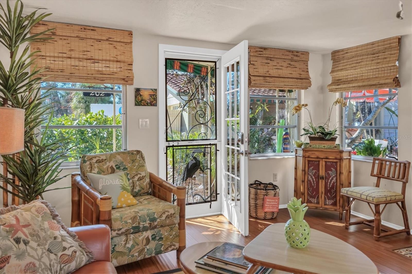 An opportunity to own a piece of local history, this architecturally significant 1924 Mediterranean Revival property was designed by renowned architect Thomas Reed Martin and built by Dr. Fred Albee as part of his early Venice-Nokomis residential development. Listed in the Sarasota County Register of Historic Places, the William Parsons House is on a 0.37-acre corner homesite in the East Nokomis Historic District and includes a primary residence and detached guest cottage totaling 2,033 square feet under roof, with 1,481 square feet under air in the main residence and 552 square feet under air in the guest cottage. Properties of this architectural pedigree and historic designation rarely come to market in this sought-after Nokomis, Florida location. Across from the Pocono Trail Preserve, the property offers approximately 150 feet of frontage along East Pocono Trail. The home welcomes you with a screened front porch that leads into the main residence, which retains original and period-appropriate features, including heart pine flooring in the kitchen, dining area and generously proportioned living room, with Saltillo terra cotta tile in other spaces. A fireplace with finely detailed masonry anchors the living space, adding architectural interest and vintage character. The vintage kitchen blends modern upgrades with early 20th-century design, featuring updated appliances, a walk-in pantry and 1930s-era etched glass cabinetry salvaged from a historic hotel. The layout includes three bedrooms and one bath, with the primary bedroom featuring decorative vaulted ceilings that reflect the home’s Mediterranean influence. The detached guest cottage mirrors the main residence’s historic charm, offering a fireplace with matching decorative detail, one bedroom, a full bath with decorative tile and an open plan living, dining and kitchen area with bamboo flooring. The layout supports a range of residential uses, including a guest residence, home office, private studio or an income producing rental. The home and cottage are surrounded by enchanting outdoor space and a private patio area, ideal for relaxing or entertaining amid mature tropical landscaping. According to the current owner of 29 years, the property has never experienced water intrusion or flooding, offering peace of mind for the next steward of this home. Within short walking distance are local restaurants, galleries, a yoga studio and Nokomis Community Park, with kayak launch access just blocks away. Walk or bike to the to Legacy Trail, then spend your afternoons at the beaches of Nokomis and Venice, or enjoy the shopping and dining offerings of Venice Island. Experience the timeless character and historic significance of this distinctive Nokomis property. With thoughtful restoration, this residence presents an opportunity to preserve and personalize a rare piece of Sarasota County’s architectural legacy. Schedule your private showing today.