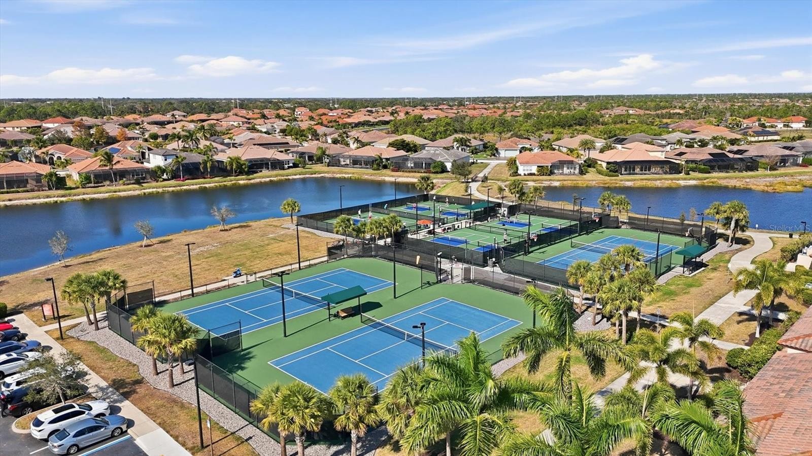 Located on One of the Most Desirable Waterfront/Preserve Homesites in ALL of Gran Paradiso, the FORMER TREVI MODEL HOME Featuring 4 Bedrooms, 3 Baths, Heated Pool & Spa Offers Sunsets and Amazing Water and Preserve Views, along with an Outstanding View Across the Water of the Clubhouse. As a FORMER MODEL HOME, the Attention to EXTRA DETAILING in the Decorative Wood Accent Walls, Ceiling, Wainscoting and Crown Molding Add that Special Designer Flare. The Open Floorplan Feels Spacious and Inviting with Endless Views of Water and Nature. Remote Controlled Blinds Provide Privacy in the Dining Room and the Primary Suite. Step Outside onto the Lanai for One of the Most SPECTACULAR VIEWS in All of Gran Paradiso. You Won’t Be Able to Resist Lingering there to Soak Up the Views, Wildlife, Birds, and Solitude along with the Outstanding Saltwater Heated Pool and Spa. Although You’d Like to Linger Longer, it’s Time to Step Back Inside to Discover the Rest of this Charming Home! Enter the Primary Suite Where You’ll Discover Not One, But TWO WALK-IN CLOSETS! The Spacious Retreat Leads to the Primary Bath with Dual Sinks, Soaking Garden Tub and Stall Shower. A 2nd Bedroom Has Its Own Ensuite Bathroom for Family and Special Guests. Bedrooms 2 & 3 Share a Bath. UPDATES Include EBONY CABINETRY in the Kitchen, NEW HVAC System (2025 as per owner,) Newer Smoke Detectors, NEW CURCUIT BREAKERS (2025 as per owner,) a WHOLE HOUSE WATER SOFTENER SYSTEM, and UNIQUE to this Home is a CENTRAL VAC SYSTEM. SMART HOME TECHNOLOGY is a Welcome Addition to this Stylish Home. When Inclement Weather Threatens, Feel Secure with ACCORDIAN HURRICANE SHUTTERS ON ALL WINDOWS and FRONT DOOR and ELECTRONIC KEVLAR HURRICANE SCREENS on the LANAI. The Exterior was Freshly Painted in 2024 along with the Roof, Driveway and Lanai Recently Power Washed. As per the Owner, the Roof was Inspected by Kirkey Roofing in 2025. Storage is Abundant in the Garage with Over-Head Built in Shelving. Gran Paradiso in Wellen Park is a Mediterranean/Tuscan-Style Resort Community with a Clubhouse Featuring a State-of-the-Art Fitness Center, Resort-style Heated Saltwater Community Pool with Beach Entry, Hot-Tub, Cabanas, and Brick-Paver Decking is the Social Place to Be to Meet Up with New Friends. A Full-time Lifestyle Director will Keep You Busy with Events and Activities. The Golf-Cart Friendly Community Features Pickleball, Tennis, Social Events, Billiards, Card Games and other Fun Activities. Schedule a Massage, Followed by a Trip to the Steam Room and Finish with a Sauna ALL ON SITE in the Clubhouse. Near Gran Paradiso is Downtown Wellen Park, with Shops, Restaurants, and an 80-Acre Lake for Recreational Boating, Community Events and so Much More. Make an Appointment Today to Begin Your New Florida Lifestyle.