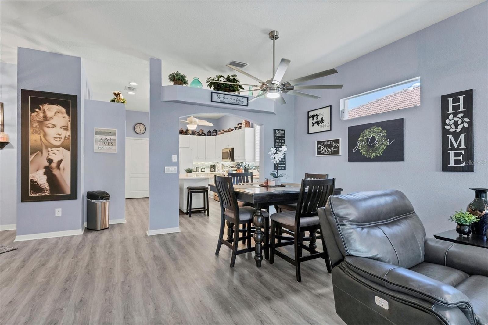 Welcome to this beautifully updated END-UNIT villa located in the gated community of Bobcat Trail, where tranquil surroundings and native Florida wildlife create a peaceful setting. From the private, screened lanai, you can enjoy serene mornings and quiet afternoons in comfort. Inside, the open layout features over 1600 square feet under air, 3 bedrooms, 2 full bathrooms, and an oversized 2 car garage. Recent renovations include luxury vinyl plank flooring throughout, fresh interior paint, plantation shutters, updated lighting and ceiling fans and new interior door hardware. The spacious kitchen is designed with granite countertops, a stylish tile backsplash, modern appliances, a large center island, abundant cabinetry, and a pantry for extra storage. The primary suite includes a generous walk-in closet and a well-appointed bathroom with dual sinks, granite counters, and a walk-in shower. A new roof was installed in 2024, offering added peace of mind. Bobcat Trail is known for its welcoming atmosphere and offers residents access to a community pool as well as a separate private pool reserved exclusively for villa owners, along with tennis and pickleball courts, a fitness center, a small library, and a clubhouse with regularly scheduled social events. Conveniently located just 30 minutes from Gulf Coast beaches and close to shopping, dining, and the Atlanta Braves Spring Training stadium, this home also benefits from being outside the flood zone. The CDD fee is included in the property taxes, and the HOA dues cover exterior maintenance, including the roof. This move-in-ready villa is a fantastic opportunity for comfortable, low-maintenance living in a secure and active community. Schedule your private showing today.