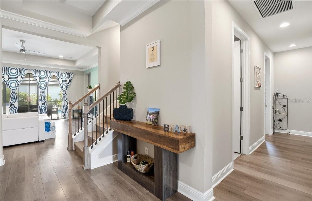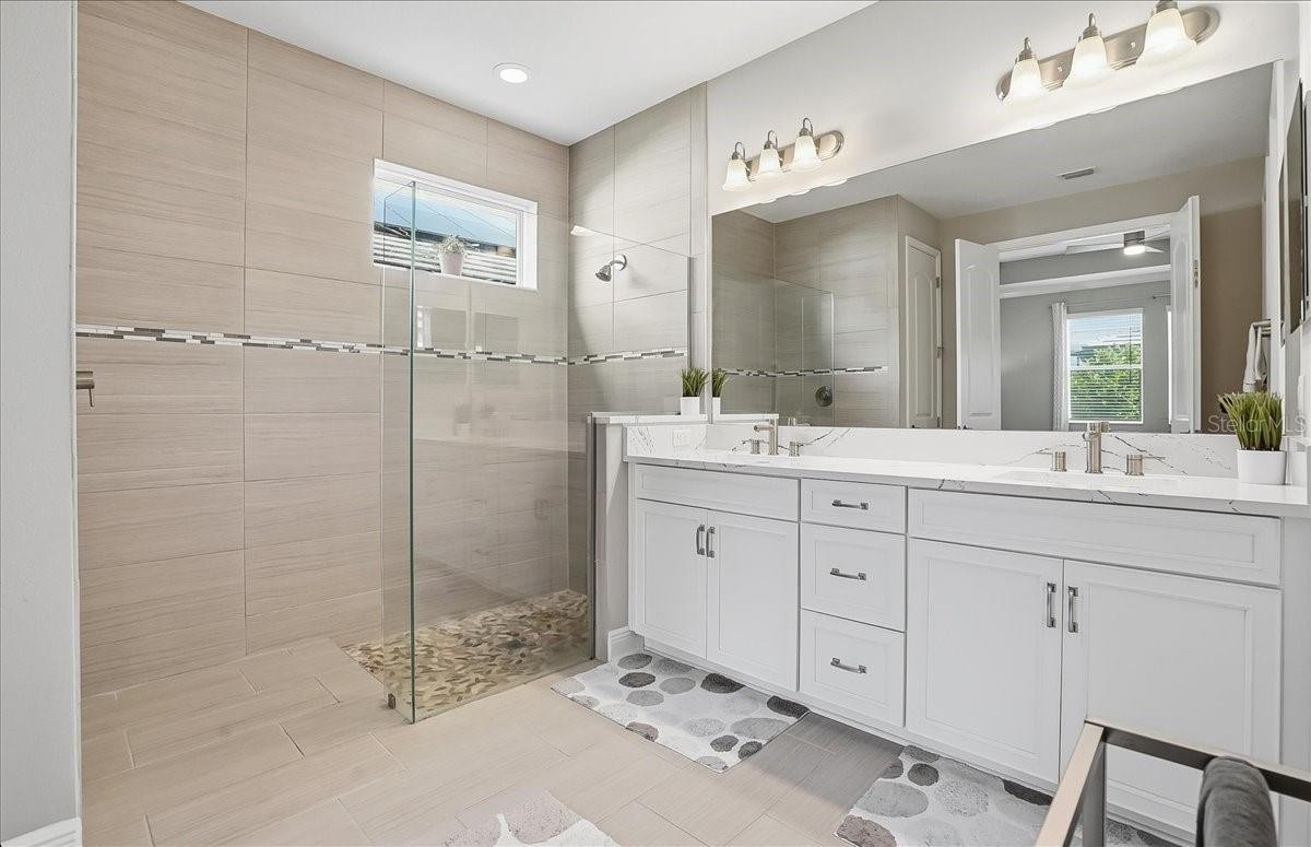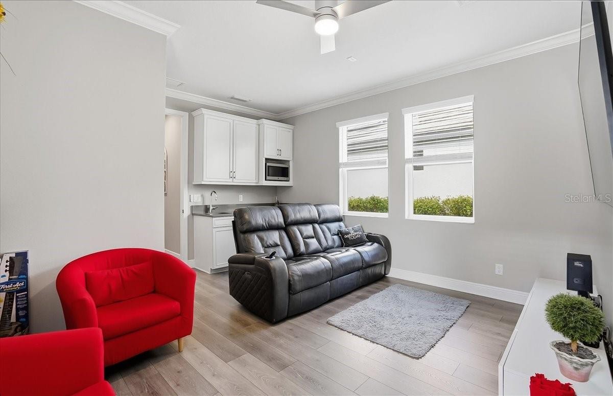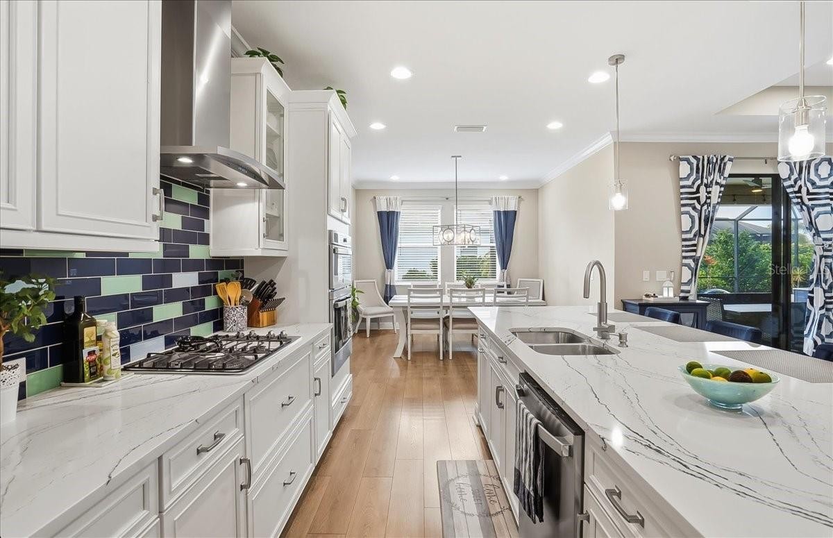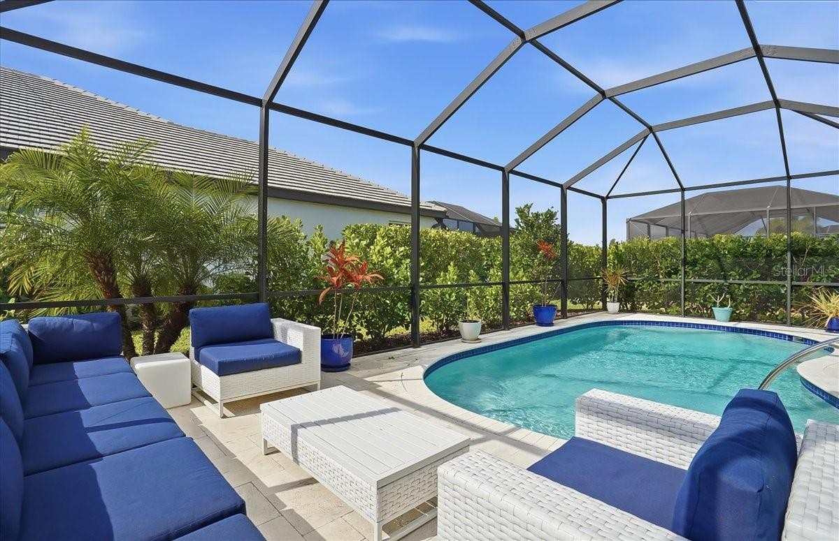 Incredible Lakewood Ranch pool home with a private attached in-law suite and extensive upgrades throughout. Located in the gated community of Woodleaf Hammock, this spacious residence offers 4 bedrooms, 5 bathrooms, a first-floor office, and an upstairs loft ideal for a gym, playroom, or hobby space. The second level also features a full bath and generous storage. The attached in-law suite includes its own exterior entrance, making it ideal for multigenerational living, long-term guests, or a private caretaker space. Complete with a living room, kitchenette, bedroom, and full bath with walk-in shower, it providing comfort and independence. In the main home, the upgraded gourmet kitchen is designed for both everyday living and entertaining, featuring quartz countertops, a large center island, soft-close cabinetry, and a dedicated coffee bar area. The kitchen opens seamlessly to the spacious living room with tray ceiling and whole-home stereo system. Each bedroom includes its own bathroom, offering privacy and convenience for everyone. Step outside to a true backyard retreat. The extended travertine lanai surrounds a heated saltwater pool and a fully equipped outdoor kitchen with cabinetry and gas hookup, perfect for year-round entertaining. Additional features include a tile roof, brick paver driveway, full gutter system, two zoned HVAC systems, and no storm damage from recent hurricanes. Located in preferred Flood Zone X (no flood insurance required). Woodleaf Hammock residents enjoy a resort-style community pool, grill area, pickleball courts, dog park, and playground. Lakewood Ranch has been the nation’s top-selling multigenerational master-planned community for eight consecutive years, offering A+ rated schools, dining, shopping, and entertainment, all just under 18 miles from the Gulf Coast beaches.