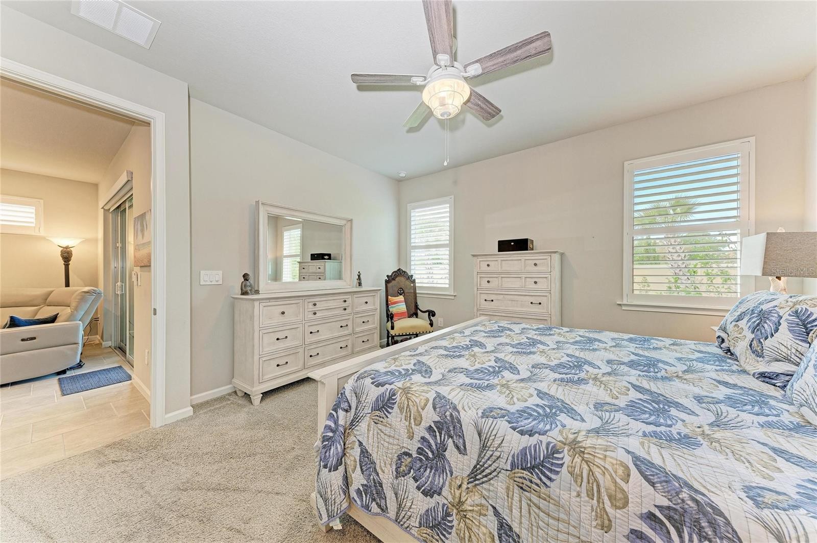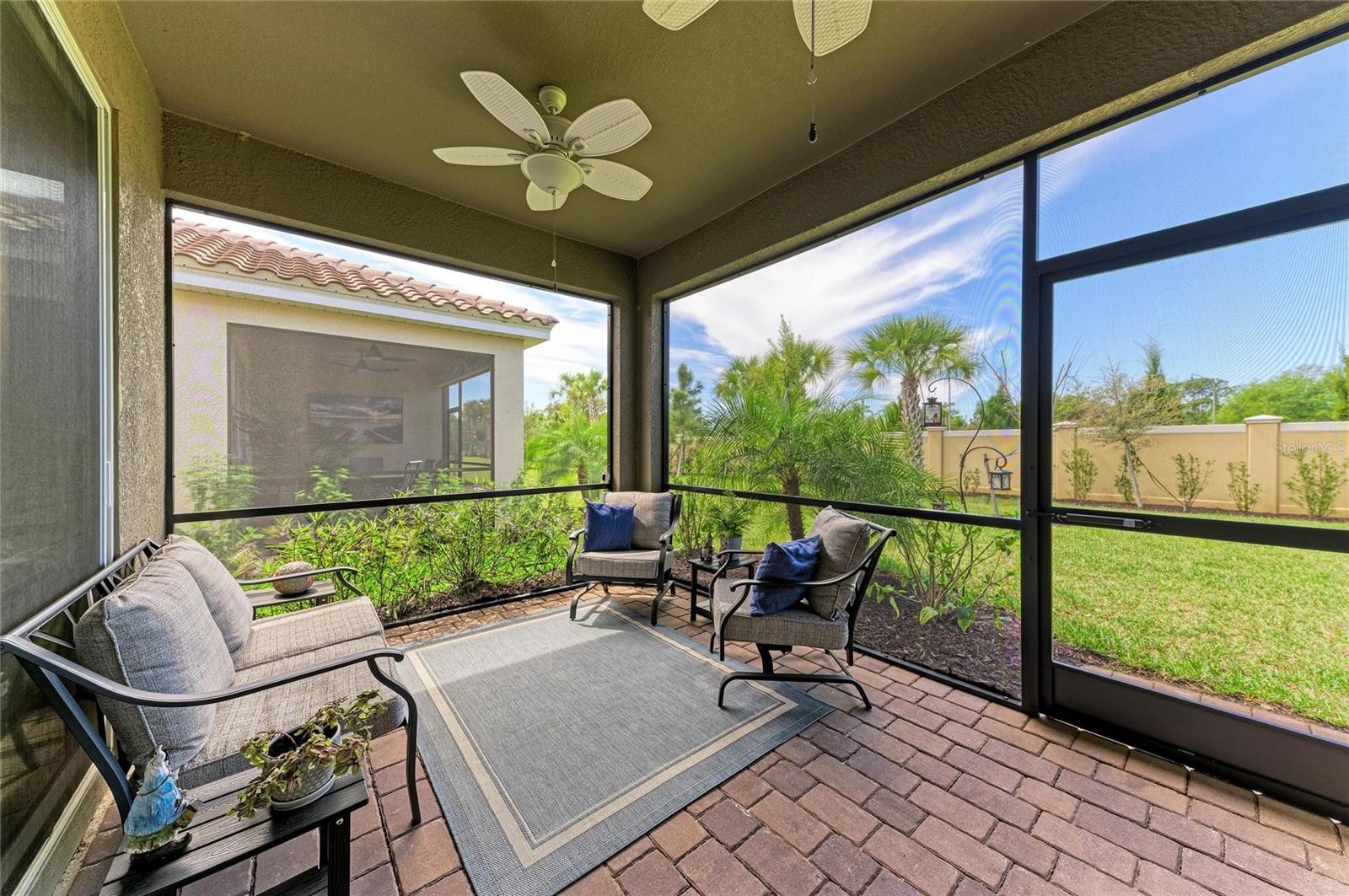 Price Improvement, motivated Seller! Move in Ready Villa, Built in 2024 with many upgrades to complement this open floor plan. You will immediately notice beautiful Plantation shutters throughout, tile flooring, nicely appointed fixtures and ceiling fans in all of the main living spaces. This home has upgraded appliances, reverse osmosis drinking water, whole house surge protection, UV light on HVAC for cleaner air, and hard wiring for a generator. Perfect for seasonal or year-round living, this 1,432 sq. ft. open-floor plan offers a blend of comfort and style, including 2 bedrooms, 2 bathrooms, a private study, laundry room in addition to a 2-car garage. The large kitchen is at the center of your living space, featuring quartz countertops, 42" upper cabinets, a large center island that seats 3, stainless steel appliances, and a large pantry. The kitchen flows seamlessly into the living and dining areas, making it ideal for both everyday life and entertaining. The owner's suite offers a luxurious bath with a dual sink, raised vanity, private toilet, and a spacious walk-in closet. This villa is equipped with a Smart Home package, including a Wi-Fi-capable garage door opener, Ecobee Smart Thermostat, electronic smart lock, and more. Located within the resort-style Renaissance community, residents enjoy an active lifestyle with amenities that include pickleball, tennis, a pool and clubhouse with fitness center. Schedule your showing today, this one will not last!