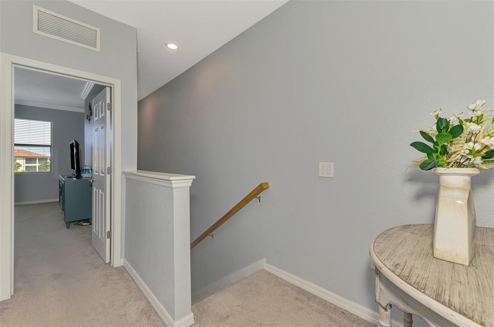 Welcome to Gran Paradiso, where resort-style living meets everyday comfort. This beautifully maintained 3-bedroom, 2.5-bath townhome is tucked inside a gated, Tuscan-inspired community. The open-concept main floor offers a spacious living/dining area, and a modern kitchen with granite countertops, stainless steel appliances, and ample storage. Upstairs, the owner’s suite overlooks serene water views and includes a walk-in closet and en-suite bath with dual sinks and a glass-enclosed shower. Two guest bedrooms and a full bath are thoughtfully split from the owner’s retreat, while a half bath on the main floor adds convenience for guests. Enjoy peaceful mornings on the screened lanai with lake views and local wildlife just beyond your backyard. Gran Paradiso offers unmatched amenities—resort pool, spa, tennis, pickleball, fitness center, clubhouse, and miles of walking trails—with activities and social events that make every day feel like a getaway. Don’t miss your chance to own a slice of the good life. Schedule your private tour today!