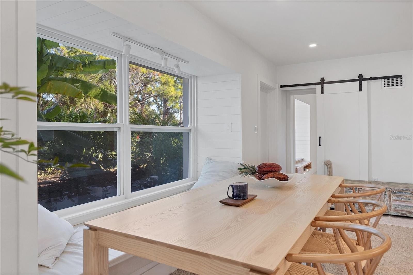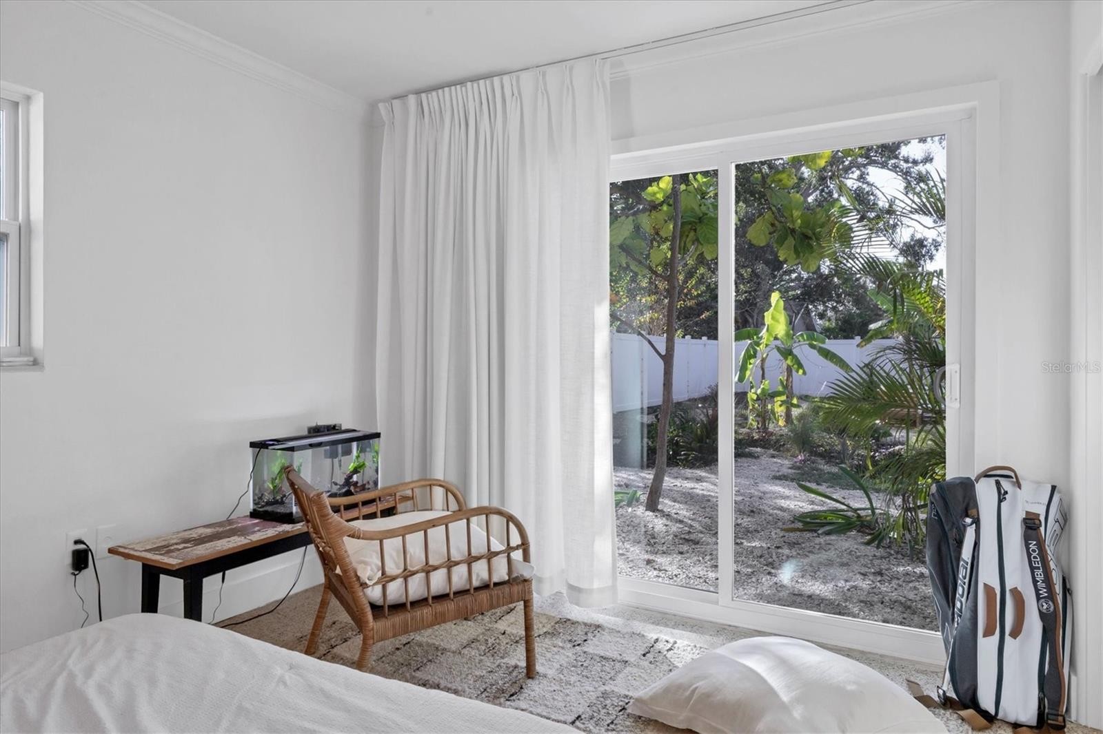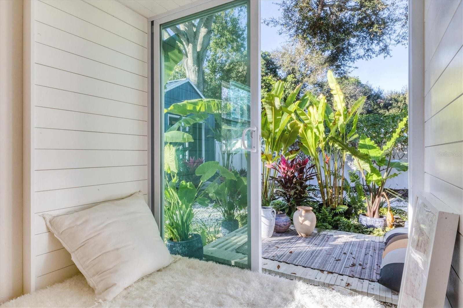 Architect-Designed Masterpiece of Indoor – Outdoor Living………. this meticulously crafted residence sits on a prime Sarasota lot of nearly 10,000 sq ft. The design embodies a Garden – Architecture Integrated Layout; A concept known as The MODERN - BOHEMIAN style and is devoted to creating meaningful interactions between the built environment and the surrounding landscape…… by fusing the warmth, nature, and free spirit of Bohemian (Boho) with the simplicity, sophistication, and functionalism of Modern (Modern) style. It is a blended aesthetic that seeks a relaxed, personalized atmosphere while maintaining visual neatness and a sense of refinement. The entire property is poetically expressed as “One Dwelling, One Pavilion, Three Courtyards,” consisting of the main residence (Dwelling), the detached multifunctional studio (Pavilion), and the Front, Back, and Side Yards that encircle both structures…… The main residence deliberately minimizes hallways and maximizes usable space. This efficiency, combined with practical bathroom sizing and the presence of four custom viewing niches throughout the home, significantly improves the overall usage efficiency of the floor plan. • Design Philosophy: Courtyard Suites Immersed in Nature………. The main house and gardens form a cohesive ecosystem, where every interior space extends seamlessly toward the outdoors….. • Living & Dining…. The living room opens fully to the side yard through folding sliding window doors, transforming it into an outdoor extension ideal for gatherings….. The open kitchen, island, and dining area flow into a dramatic 9’ × 32’’ panoramic bay window, offering tranquil views of mature trees in the front garden—dining here feels like sitting within a private forest….. • Bedrooms….. • Primary Suite: Floor-to-ceiling sliding window doors frame the expansive rear garden, creating a private retreat with a luxurious landscape backdrop….. • Bedrooms 2 & 3: Bay windows paired with built-in seating nooks bring the garden inward, allowing each room to feel gently embraced by nature….. • Bedroom 4 / Study: Designed as a home office and reading room, this space is surrounded by both side and rear gardens. Two large windows plus a sliding door allows one to view the garden from different angles….. Every room becomes a private courtyard suite, each offering its own intimate connection with the surrounding gardens….. The Pavilion: Multifunctional Studio & Outdoor Activity Hub….. Detached from the main residence, the 240 sq ft Shed serves as a highly versatile bonus structure. Featuring electric service, water, sewer, AC, cable connection, insulation, and garden views, it functions perfectly as a Mini Office, workshop, media room, or creative studio, including an integrated laundry area with new washer and dryer that conveys with the property….. Directly outside the shed window lies a dedicated outdoor BBQ zone, making this pavilion the center of outdoor living. The design reinterprets traditional “garage culture” into an elevated, modern backyard lifestyle hub. .....See pictures for additional information on each room.