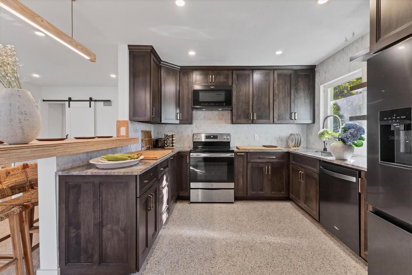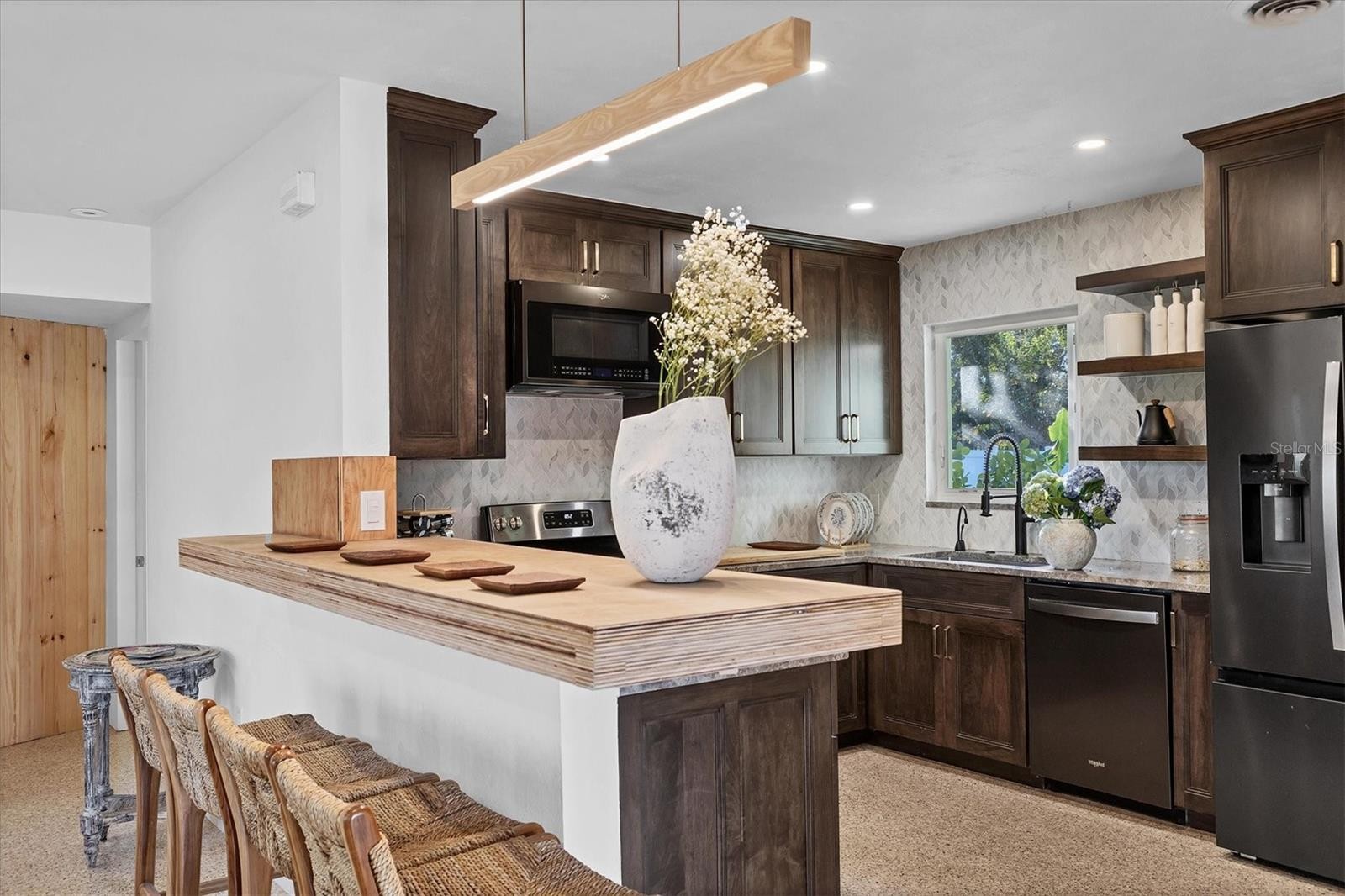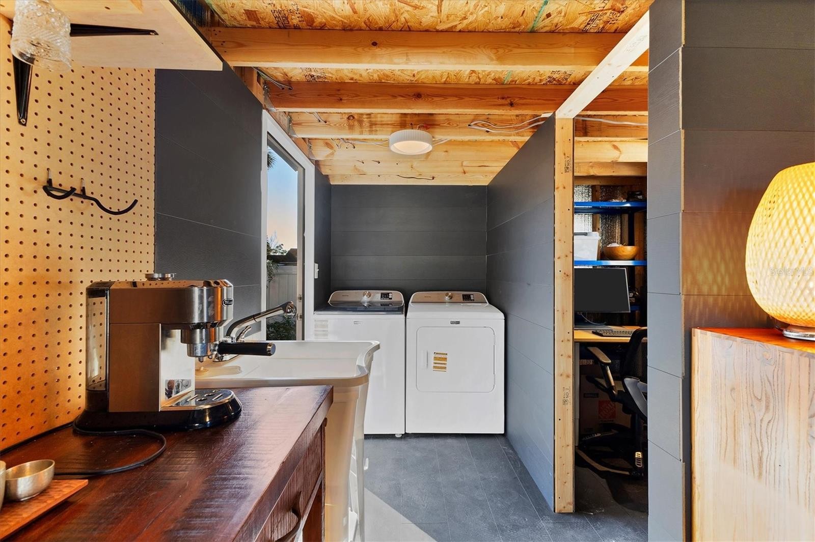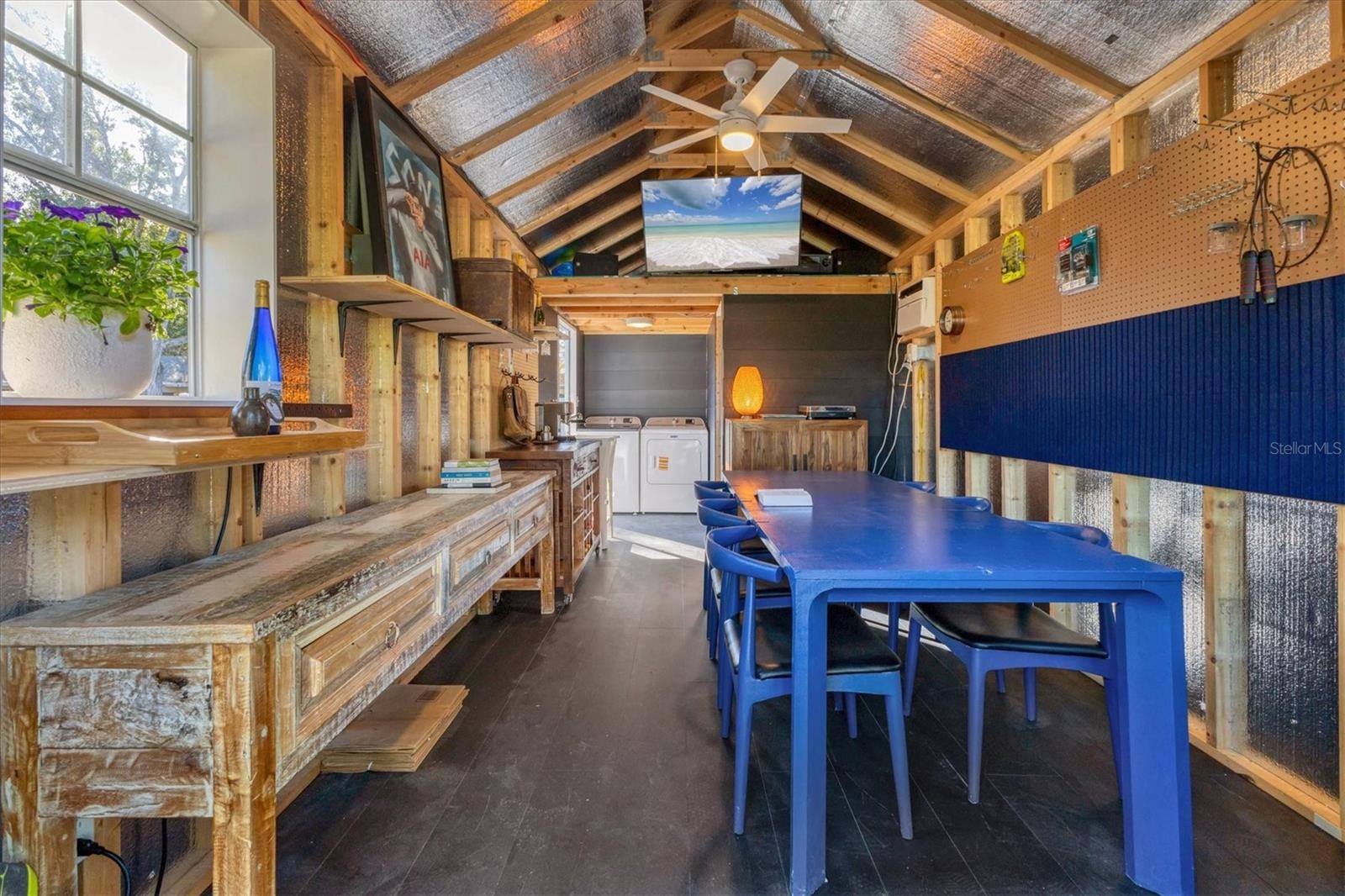 Architect-Designed Masterpiece of Indoor – Outdoor Living………. this meticulously crafted residence sits on a prime Sarasota lot of nearly 10,000 sq ft. The design embodies a Garden – Architecture Integrated Layout; A concept known as The MODERN - BOHEMIAN style and is devoted to creating meaningful interactions between the built environment and the surrounding landscape…… by fusing the warmth, nature, and free spirit of Bohemian (Boho) with the simplicity, sophistication, and functionalism of Modern (Modern) style. It is a blended aesthetic that seeks a relaxed, personalized atmosphere while maintaining visual neatness and a sense of refinement. The entire property is poetically expressed as “One Dwelling, One Pavilion, Three Courtyards,” consisting of the main residence (Dwelling), the detached multifunctional studio (Pavilion), and the Front, Back, and Side Yards that encircle both structures…… The main residence deliberately minimizes hallways and maximizes usable space. This efficiency, combined with practical bathroom sizing and the presence of four custom viewing niches throughout the home, significantly improves the overall usage efficiency of the floor plan. • Design Philosophy: Courtyard Suites Immersed in Nature………. The main house and gardens form a cohesive ecosystem, where every interior space extends seamlessly toward the outdoors….. • Living & Dining…. The living room opens fully to the side yard through folding sliding window doors, transforming it into an outdoor extension ideal for gatherings….. The open kitchen, island, and dining area flow into a dramatic 9’ × 32’’ panoramic bay window, offering tranquil views of mature trees in the front garden—dining here feels like sitting within a private forest….. • Bedrooms….. • Primary Suite: Floor-to-ceiling sliding window doors frame the expansive rear garden, creating a private retreat with a luxurious landscape backdrop….. • Bedrooms 2 & 3: Bay windows paired with built-in seating nooks bring the garden inward, allowing each room to feel gently embraced by nature….. • Bedroom 4 / Study: Designed as a home office and reading room, this space is surrounded by both side and rear gardens. Two large windows plus a sliding door allows one to view the garden from different angles….. Every room becomes a private courtyard suite, each offering its own intimate connection with the surrounding gardens….. The Pavilion: Multifunctional Studio & Outdoor Activity Hub….. Detached from the main residence, the 240 sq ft Shed serves as a highly versatile bonus structure. Featuring electric service, water, sewer, AC, cable connection, insulation, and garden views, it functions perfectly as a Mini Office, workshop, media room, or creative studio, including an integrated laundry area with new washer and dryer that conveys with the property….. Directly outside the shed window lies a dedicated outdoor BBQ zone, making this pavilion the center of outdoor living. The design reinterprets traditional “garage culture” into an elevated, modern backyard lifestyle hub. .....See pictures for additional information on each room.