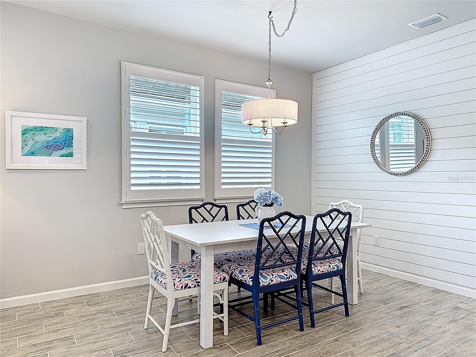 Welcome to refined, low-maintenance Florida living in this impeccably maintained Largo model villa, ideally situated within the sought-after, gated community of Renaissance at Wellen Park. Built in 2022 and gently enjoyed, this move-in-ready residence showcases contemporary design, elevated finishes, and thoughtful custom enhancements—all set against the serene backdrop of a screened lanai and private backyard retreat. A decorative paver driveway and walkway lead to a charming covered front porch and striking glass entry door. Inside, a light-filled foyer reveals a spacious open-concept floor plan designed for both comfort and entertaining. Wood-look plank tile flooring, 8-foot interior doors, upgraded lighting and ceiling fans, and a statement shiplap accent wall create a refined yet inviting ambiance. Just off the foyer, a versatile den with French doors offers flexibility - ideal as a home office, third bedroom, media lounge, or hobby space. The split floorplan ensures privacy for guests, who will appreciate the generously sized secondary bedroom and full bath with a quartz vanity and tub/shower combination. At the heart of the home, the gourmet kitchen flows seamlessly into the dining and living areas. The main living space is enhanced by plantation shutters and abundant recessed lighting. The kitchen features 42-inch cabinetry, quartz countertops, stainless steel appliances, under-cabinet lighting, and upgraded pendant fixtures—balancing style and function with ease. Sliding glass doors extend the living space outdoors to a screened lanai and expanded paver patio, offering a lovely setting for morning coffee, evening cocktails, grilling, or relaxing year-round. The primary suite is a private retreat with a spa-inspired bath featuring dual vanities, a tiled walk-in shower, private water closet, and a customized walk-in closet with added shelving and double hanging rods for optimum storage. Additional highlights include full hurricane shutters, a tile roof, and the added peace of mind of being located in Flood Zone “X.” Residents enjoy resort-style amenities including a zero-entry swimming pool with lap lanes and spa, fully equipped fitness center, clubhouse with catering kitchen, outdoor fireplace patio, tennis and pickleball courts, playground, and dog park. Lawn care is included in the HOA fee, allowing for truly carefree living. Ideally located just minutes from Downtown Wellen Park, CoolToday Park (Spring training home of the Atlanta Braves) area dining, shopping, farmers markets, I-75, Tamiami Trail, Venice beaches, historic downtown Venice, and Costco, this home offers exceptional convenience within one of the region’s most vibrant master-planned communities. The impeccable furnishings are also available for sale under separate purchase...allowing you to move right in and start enjoying your slice of paradise! Why wait to build when this gently loved home is available now in an established neighborhood with no construction delays or unexpected costs? Experience the perfect balance of modern elegance, effortless maintenance, and dynamic community living in one of Wellen Park’s most desirable enclaves.