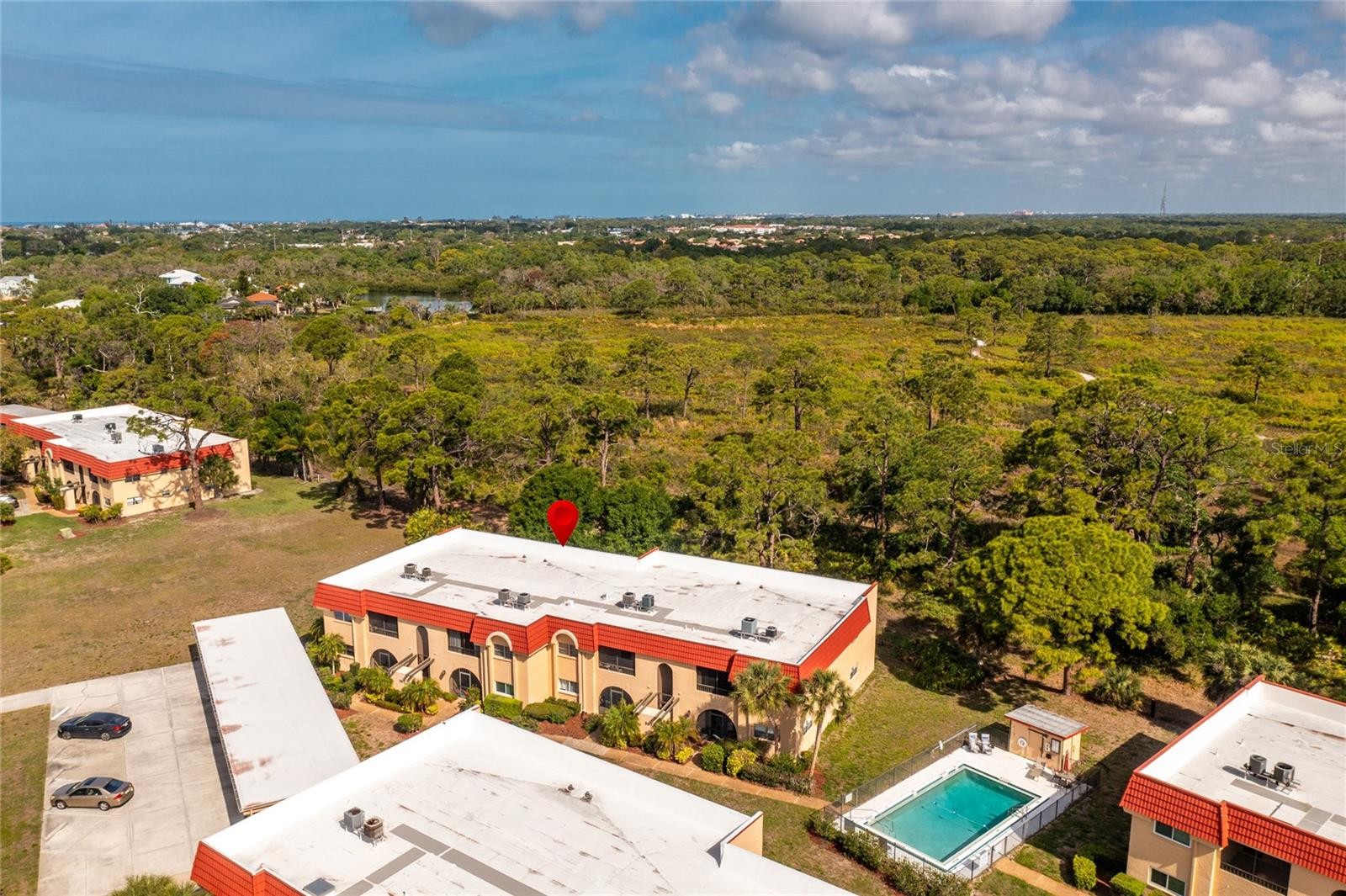 Set alongside the peaceful backdrop of Oscar Scherer State Park, this turnkey furnished condo in Sorrento Park offers a quiet, private setting with no rear neighbors and beautiful natural views. Inside, you’ll find a bright, open floor plan designed for comfortable living and easy entertaining. Elevated among the treetops, the residence features two spacious bedrooms and an inviting main living area filled with natural light. The kitchen includes wood cabinetry and a breakfast nook. Nice flooring runs throughout the unit with no carpet, creating a clean, modern feel that’s easy to maintain. The primary bedroom offers a walk-in closet, a private ensuite bath, and sliding glass doors that lead out to the balcony—an ideal spot to relax and take in the serene park setting. A second bedroom and full bath provide a comfortable and private space for guests. Additional highlights include an in-unit washer and dryer, generous closet space, and a large exterior storage room located just off the rear balcony—perfect for beach gear, bikes, or seasonal items. The spacious lanai offers a peaceful retreat where you can unwind while enjoying the surrounding greenery and sounds of nature. Whether you’re looking for a full-time residence, seasonal getaway, or investment opportunity, this condo checks all the boxes. Ideally located between Sarasota and Venice and just minutes from Gulf beaches, dining, and shopping, this fully furnished, move-in-ready home is available for immediate enjoyment. Schedule your showing today before it’s gone!