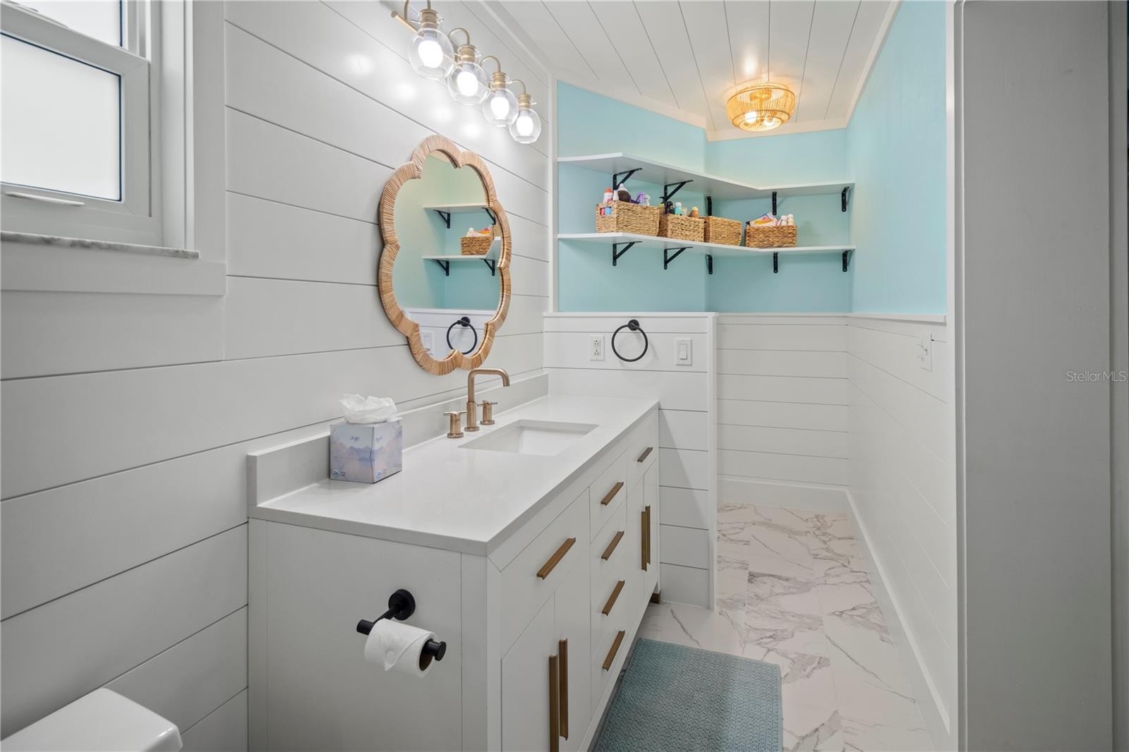 Stunning Fully Renovated Island Retreat-Turnkey Paradise Awaits! This beautifully updated 2-bedroom, 2-bath home has been thoughtfully transformed with high-end finishes throughout, offering a seamless blend of style, comfort, and functionality. Step inside to an inviting open floor plan that creates an effortless flow between the living, dining, and kitchen areas — ideal for everyday living or hosting family and friends. Fresh new finishes, including shiplap walls and ceilings, add coastal charm throughout the home. The primary suite provides a peaceful retreat with its own ensuite bathroom. The spacious second bedroom comfortably fits both a bunk bed and a full bed, making it a perfect space for guests. The laundry room, located off the garage and kitchen, offers ample storage and convenience. Outside, your private oasis awaits. Enjoy the sparkling saltwater pool, perfect for cooling off on sunny days. The expansive yard offers plenty of room for play — including your very own soccer field — and abundant outdoor space to embrace the tropical lifestyle of Anna Maria Island. No detail has been overlooked, including the new custom turquoise metal roof. Whether you're seeking an island escape, a vacation getaway, or low-maintenance year-round living, this property delivers it all.