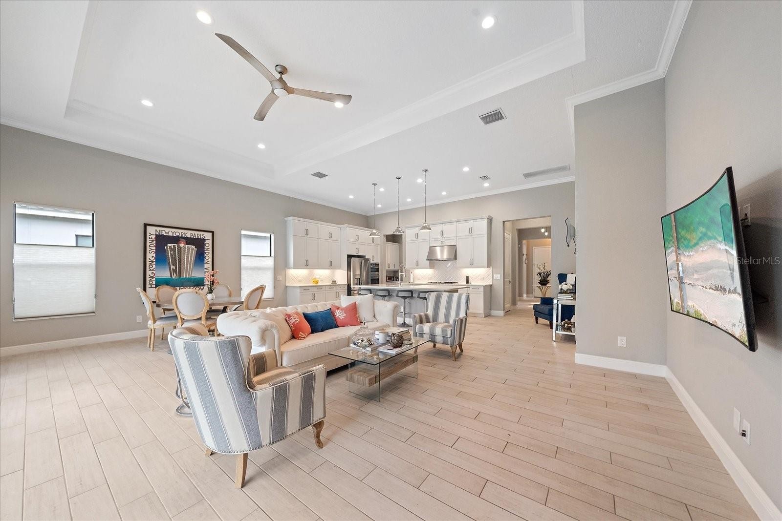 Luxury Neal Signature home in Aria—one of North Venice’s most desirable gated enclaves with fewer than 200 homesites (" A Boutique HOA")—offering a rare combination of privacy, quality construction, and NO CDD fees with full resort-style amenities. This Veneto model (2,635 sq ft) stands out with 3 bedrooms, 3 full baths, soaring ceilings up to 13 ft, and 8-ft interior doors, delivering volume, light, and an elevated feel throughout. Upgraded finishes include premium tile flooring, crown molding, tray ceilings, and quartz countertops across the entire home. The chef’s kitchen is built to impress, featuring GE Profile appliances, a 5-burner gas cooktop, double wall oven with convection/microwave, farmhouse sink, walk-in pantry, and butler’s pantry—ideal for entertaining or everyday ease. The owner’s suite offers dual walk-in closets, coffered ceiling, and a spa-style bath designed for comfort and space. A private guest suite with full bath provides flexibility for visitors or extended stays. The oversized laundry room adds true function with built-in cabinetry, solid-surface counters, utility sink, and abundant storage. Step outside to a custom heated Waterscapes pool and spa , remote controls, extended lanai, and pre-plumbed outdoor kitchen space with stainless BBQ system—creating a true indoor-outdoor lifestyle. The rear setting provides a consistent, low-maintenance backdrop with no direct rear neighbors, offering added privacy and a more controlled environment compared to homes with neighboring builds behind. Aria delivers a complete lifestyle experience with: Lakeview clubhouse and social spaces feet away to waalk to. Heated resort-style pool & spa Pickleball courts 24/7 fitness center Fire pit and community events Gated security / community and pristine grounds Location puts you minutes from everything—Venice Beach, Nokomis Beach, Caspersen Beach, Manasota Key, and within 20–25 minutes to Siesta Key Beach. Close to Wellen Park and CoolToday Park, downtown Venice dining, shopping, medical facilities, and I-75 access. Multiple airports nearby make travel simple. Homes in this price range offering this level of finish, space, and community are seeing increased attention and p[riced to sell at market price If you’ve been tracking the market, this is one to see in person and evaluate quickly.
