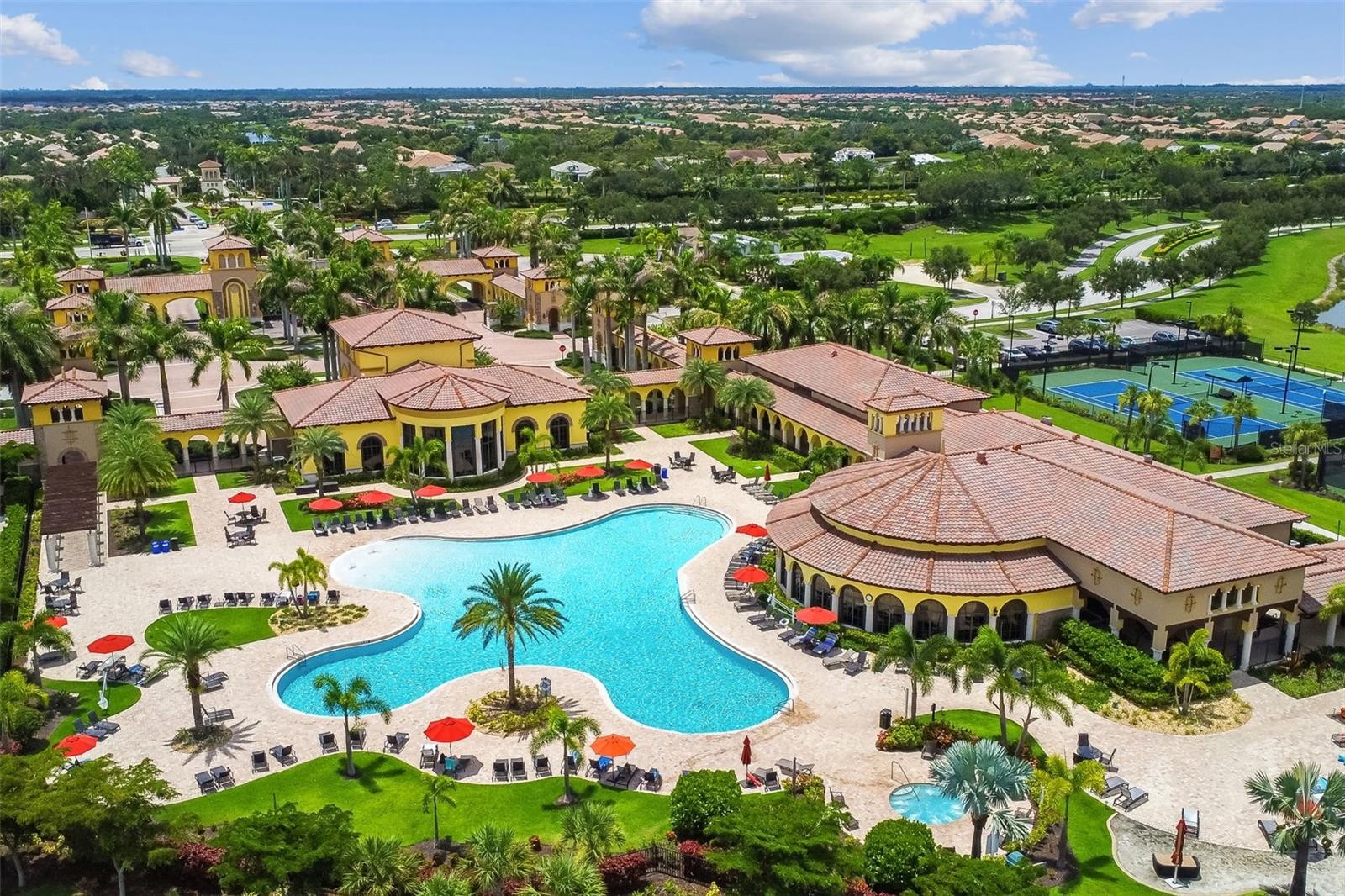 One or more photo(s) has been virtually staged. Offering Privacy with a Luxurious Heated Salt-Water Pool & Spa, this Upgraded 4 Bedroom, 3 Bath, 3-CAR GARAGE Executive Home is the Ultimate Family Retreat. Located in Gran Paradiso, within Wellen Park, this Home Showcases ALL TILE FLOORS Throughout the Public Rooms and LUXURIOUS ENGINERED HARDWOOD Flooring in the Bedrooms. Custom Crown Molding and PLANTATION SHUTTERS add that Additional Special Touch. When it Comes Time for Meal Preparation, the ENORMOUS Chef’s Kitchen Features UPGRADED ELEGANT EBONY CABINETRY, Stainless Appliances, Granite Counters, Custom Tiled Backsplash and a Center Island with Room for ALL the Chefs in the Family to Create Their Own Special Dishes! From the Moment you Enter, You’ll be Impressed by the Extended-Height Doorways, and Elegant Stone Finish on the Breakfast Bar Wall. California Closet Cabinetry is Custom Designed for the Kitchen Pantry. A Formal Dining Room Offers a Perfect Setting for Family and Friends to Enjoy Your Expertly Prepared Meals. Step Outside to Your PRIVATE OASIS to Relax and Enjoy the Custom Heated Pool & Spa with OVER-SIZED “Cool to the Feet” Brick Pavers on the Lanai, and 2-Year-Old “No-See-Um” Screen Cage, Surrounded by Lush Landscaping. The Splendid Primary Suite is a Welcome Retreat Featuring a Spacious ENORMOUS CUSTOM-BUILT Walk-in Closet, and a Spa-Style Primary Bath with Double Vanities, a Soaking Garden Tub, and a Separate Walk-in Shower. In Addition to the Primary Suite, Your Guests will Love Their Own En-Suite Exclusive Bedroom with Personal Bathroom. 2 More Generously Sized Bedrooms Share the 3rd Bathroom. Located in the X Flood Zone with No Flood Insurance Required, this Home Offers Complete Hurricane Protection with Accordion Shutters on ALL Windows and Front Door, plus a Kevlar Electric Screen on the Covered Lanai. Gran Paradiso in Wellen Park is a Mediterranean/Tuscan-Style Resort Community with a Clubhouse Featuring a State-of-the-Art Fitness Center, Resort-style Heated Saltwater Community Pool with Beach Entry, Hot-Tub, Cabanas, and Brick-Paver Decking is the Social Place to Be to Meet Up with New Friends. A Full-time Lifestyle Director will Keep You Busy with Events and Activities. The Golf-Cart Friendly Community Features Pickleball, Tennis, Social Events, Billiards, Card Games and other Fun Activities. Schedule a Massage, Followed by a Trip to the Steam Room and Finish with a Sauna ALL ON SITE in the Clubhouse. Near Gran Paradiso is Downtown Wellen Park, with Shops, Restaurants, and an 80-Acre Lake for Recreational Boating, Community Events and so Much More. Make an Appointment Today to Begin Your New Florida Lifestyle.
