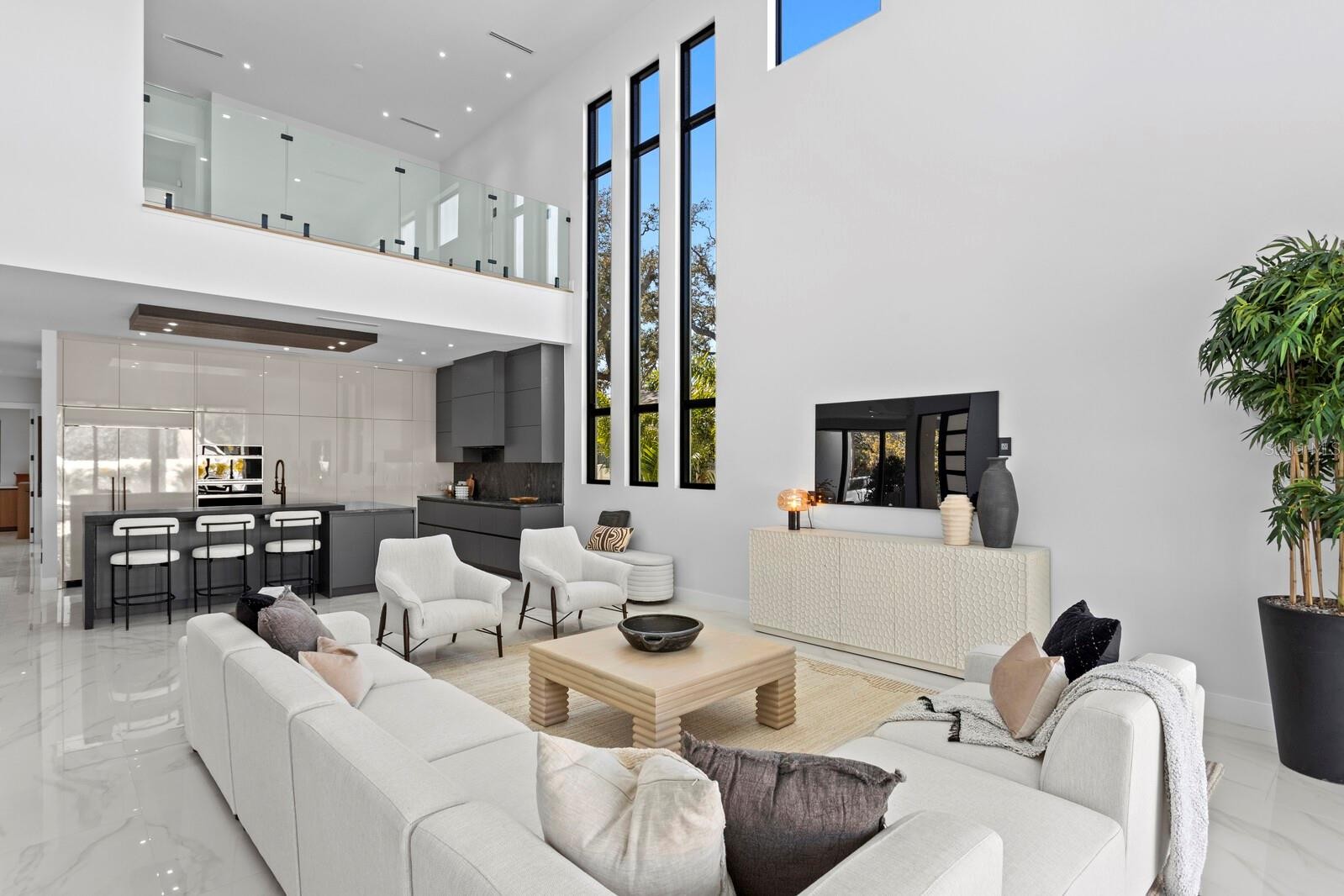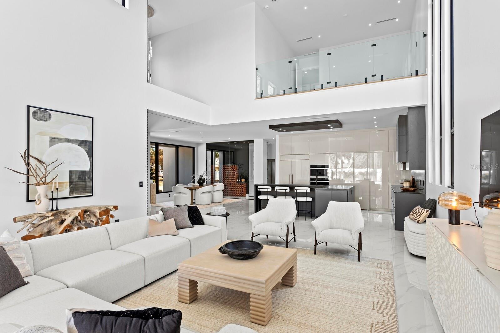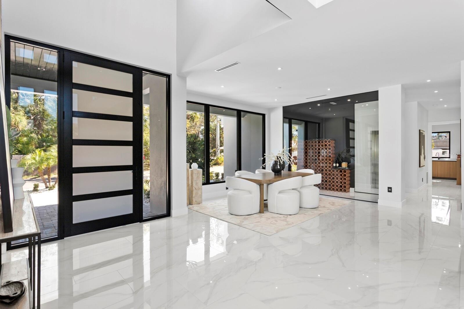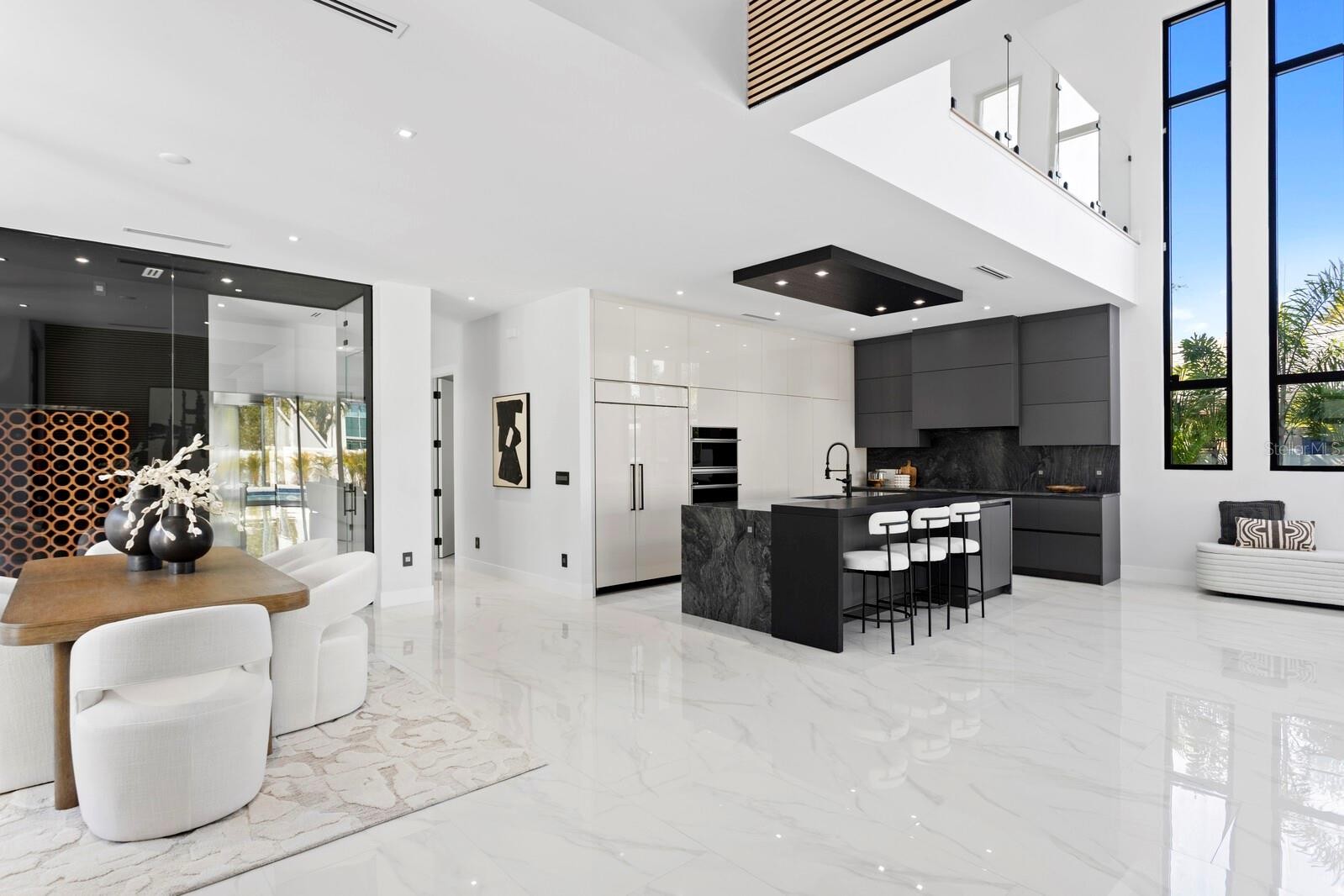 2089 Arlington Street, where architecture meets light, space, and coastal elegance, this newly constructed contemporary residence offers 4,231 square feet of living space and 5,284 total square feet, thoughtfully designed with architectural precision and warm minimalism. Completed in January 2026, this striking two-story home sits on a rare double corner lot and features 5 bedrooms and 6 bathrooms, delivering both scale and sophistication. The open-concept interior is defined by dramatic 22-foot ceilings, expansive custom windows and doors, and an abundance of natural light throughout. The main level is anchored by a statement chef’s kitchen imported from Italy, showcasing custom cabinetry, luxury built-in appliances, a Sub-Zero refrigerator, premium hardware, and top-quality London Fog granite countertops. A concealed secondary kitchen provides additional functionality and discretion, ideal for entertaining and catered events. The primary suite is conveniently located on the ground floor, offering a private retreat with serene views and a spa-inspired bath. Additional bedrooms are generously sized, each with access to a full bathroom. A custom glass wine room adds a refined architectural focal point, while a loft-style family/media lounge on the second level overlooks the main living area, enhancing the home’s open, airy feel. Designed for seamless indoor–outdoor living, oversized sliding doors open to a private resort-style setting with a custom pool and spa, covered terrace, and enhanced landscaping. Architectural exterior lighting highlights the home’s clean lines and modern façade after sunset. Quality and performance are paramount: both levels are constructed of solid concrete block, and three independent HVAC systems serve the ground floor, primary suite, and second floor for optimal comfort and efficiency. Additional features include a private elevator, and all custom-made windows, doors, and cabinetry throughout—evidence of meticulous attention to detail in every finish. Ideally located for effortless travel and coastal lifestyle enjoyment, this home is approximately 12–15 minutes from Sarasota–Bradenton International Airport, about 1 hour 10 minutes from Tampa International Airport, 10–15 minutes to Lido Key, and about 15 minutes to Siesta Key, world-renowned for powder-white sand and Gulf sunsets. Situated outside of a flood zone, this exceptional residence presents a rare opportunity to own a custom-built contemporary home where design, craftsmanship, location, and lifestyle converge.