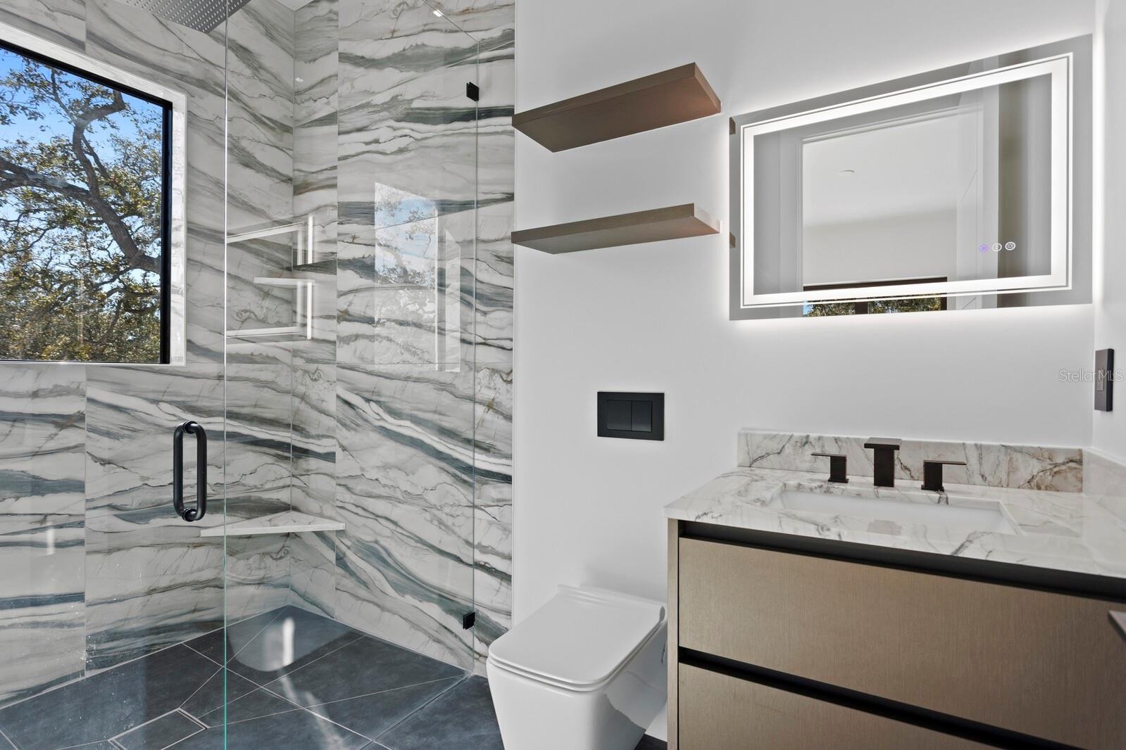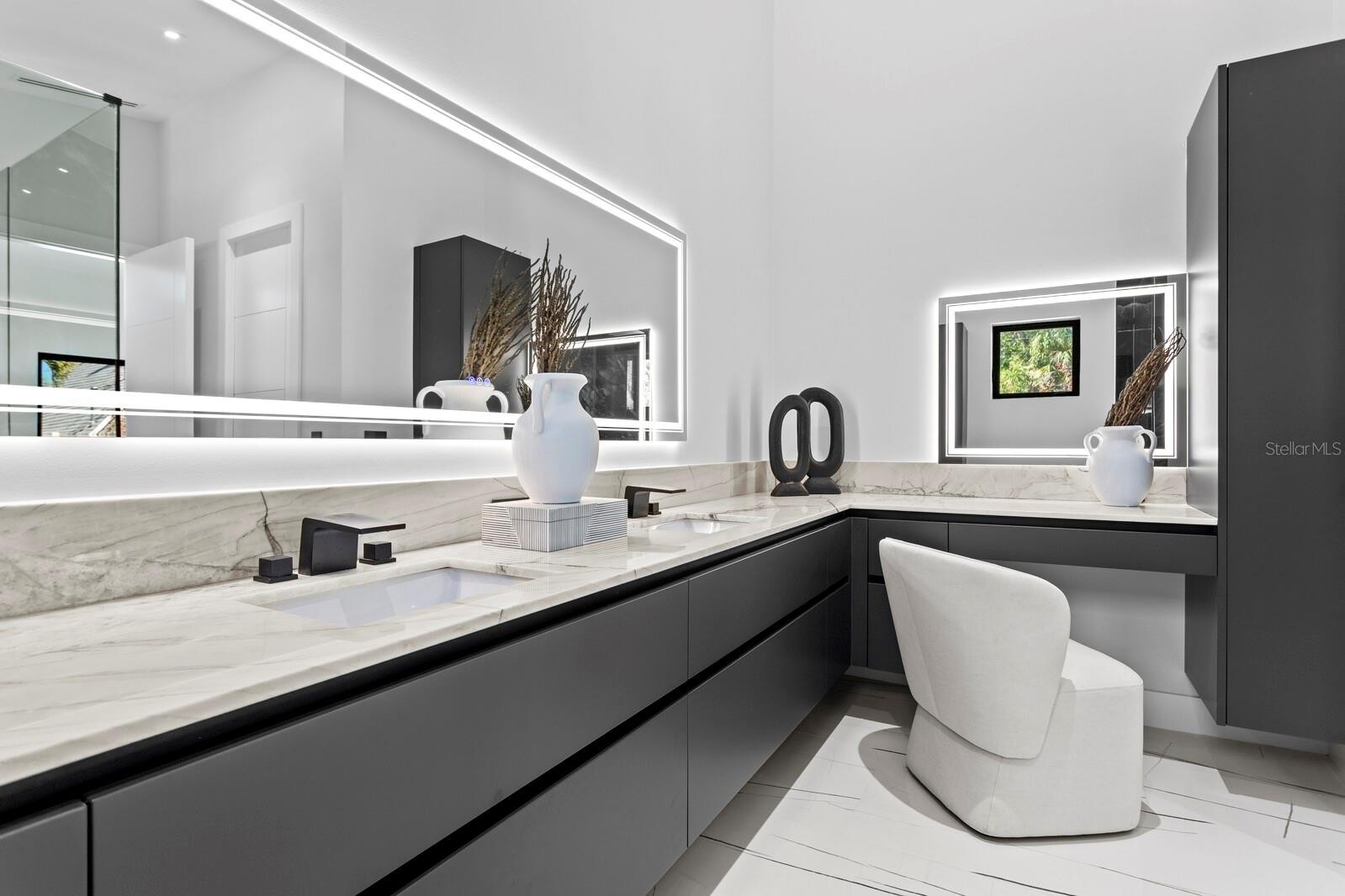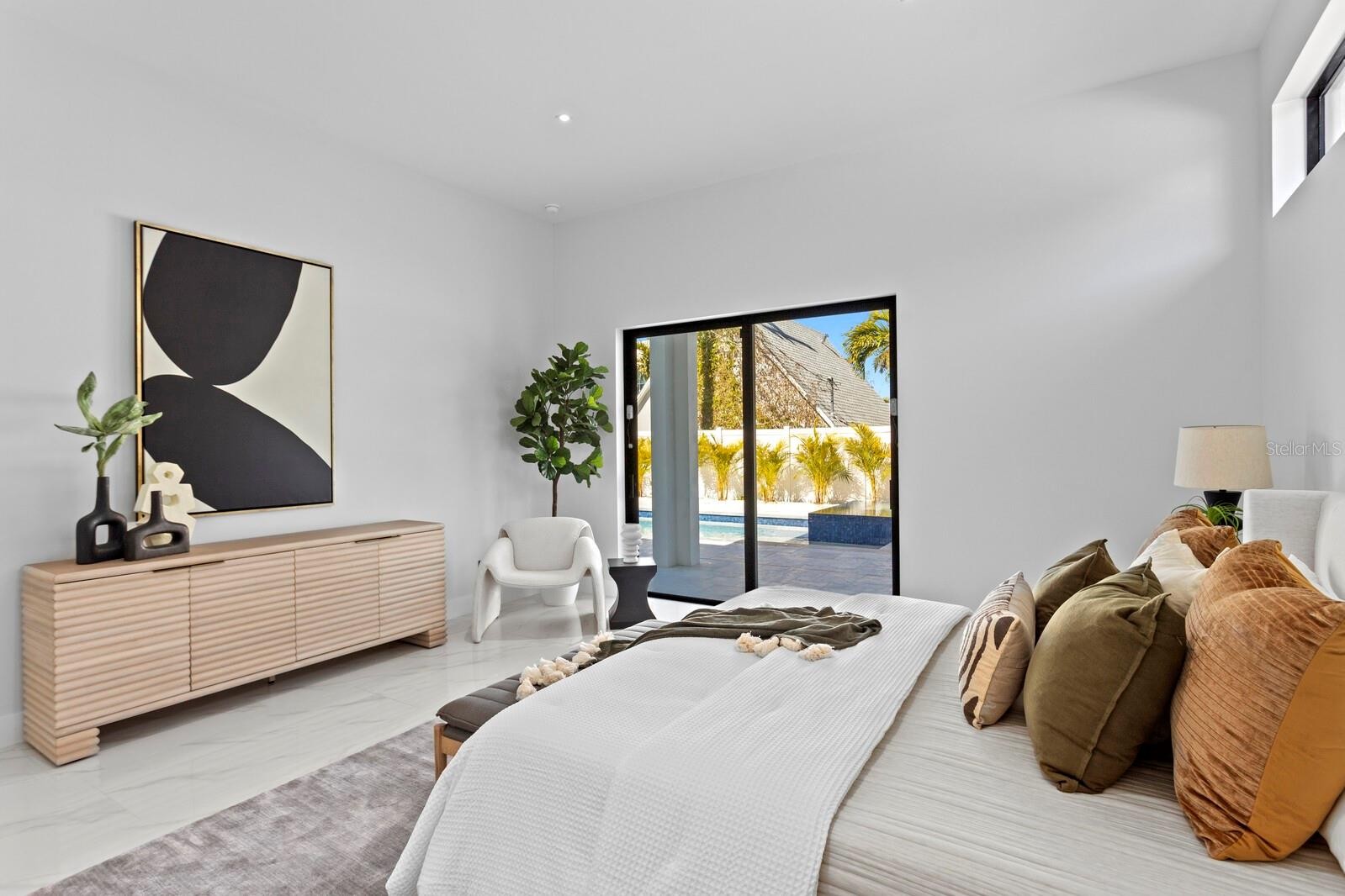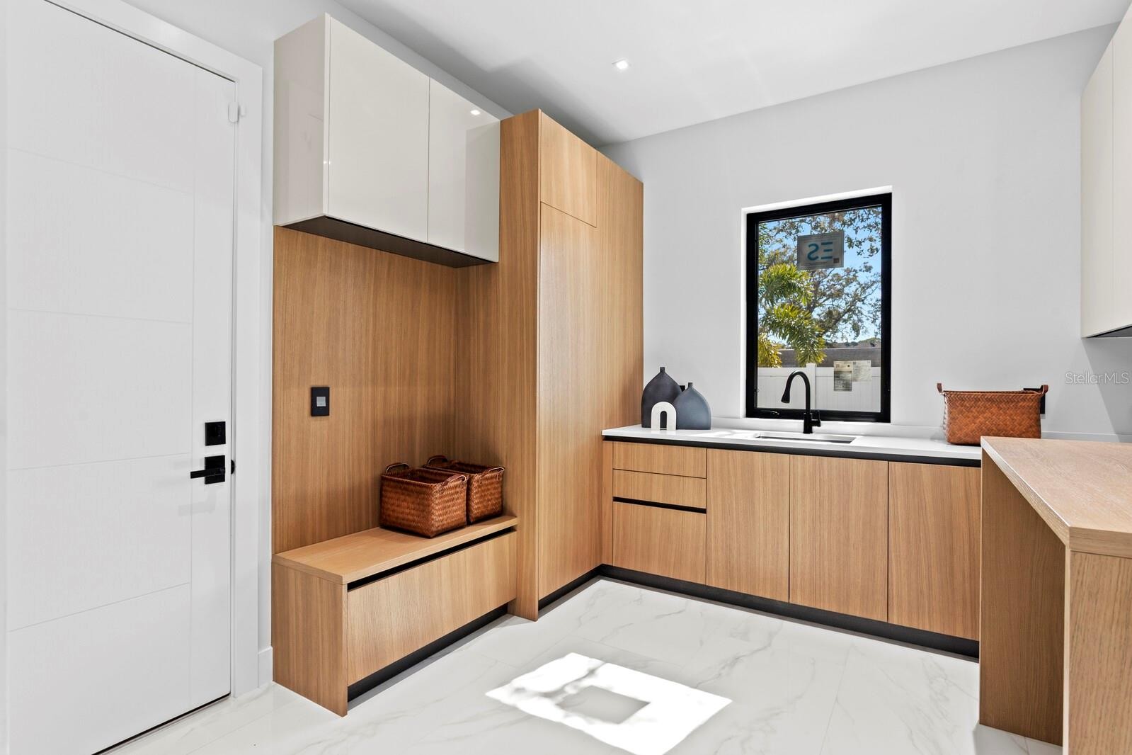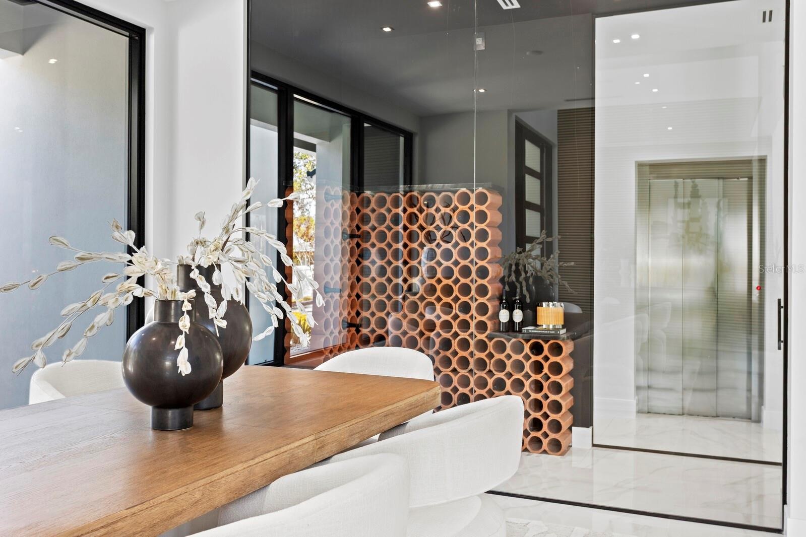 2089 Arlington Street, where architecture meets light, space, and coastal elegance, this newly constructed contemporary residence offers 4,231 square feet of living space and 5,284 total square feet, thoughtfully designed with architectural precision and warm minimalism. Completed in January 2026, this striking two-story home sits on a rare double corner lot and features 5 bedrooms and 6 bathrooms, delivering both scale and sophistication. The open-concept interior is defined by dramatic 22-foot ceilings, expansive custom windows and doors, and an abundance of natural light throughout. The main level is anchored by a statement chef’s kitchen imported from Italy, showcasing custom cabinetry, luxury built-in appliances, a Sub-Zero refrigerator, premium hardware, and top-quality London Fog granite countertops. A concealed secondary kitchen provides additional functionality and discretion, ideal for entertaining and catered events. The primary suite is conveniently located on the ground floor, offering a private retreat with serene views and a spa-inspired bath. Additional bedrooms are generously sized, each with access to a full bathroom. A custom glass wine room adds a refined architectural focal point, while a loft-style family/media lounge on the second level overlooks the main living area, enhancing the home’s open, airy feel. Designed for seamless indoor–outdoor living, oversized sliding doors open to a private resort-style setting with a custom pool and spa, covered terrace, and enhanced landscaping. Architectural exterior lighting highlights the home’s clean lines and modern façade after sunset. Quality and performance are paramount: both levels are constructed of solid concrete block, and three independent HVAC systems serve the ground floor, primary suite, and second floor for optimal comfort and efficiency. Additional features include a private elevator, and all custom-made windows, doors, and cabinetry throughout—evidence of meticulous attention to detail in every finish. Ideally located for effortless travel and coastal lifestyle enjoyment, this home is approximately 12–15 minutes from Sarasota–Bradenton International Airport, about 1 hour 10 minutes from Tampa International Airport, 10–15 minutes to Lido Key, and about 15 minutes to Siesta Key, world-renowned for powder-white sand and Gulf sunsets. Situated outside of a flood zone, this exceptional residence presents a rare opportunity to own a custom-built contemporary home where design, craftsmanship, location, and lifestyle converge.