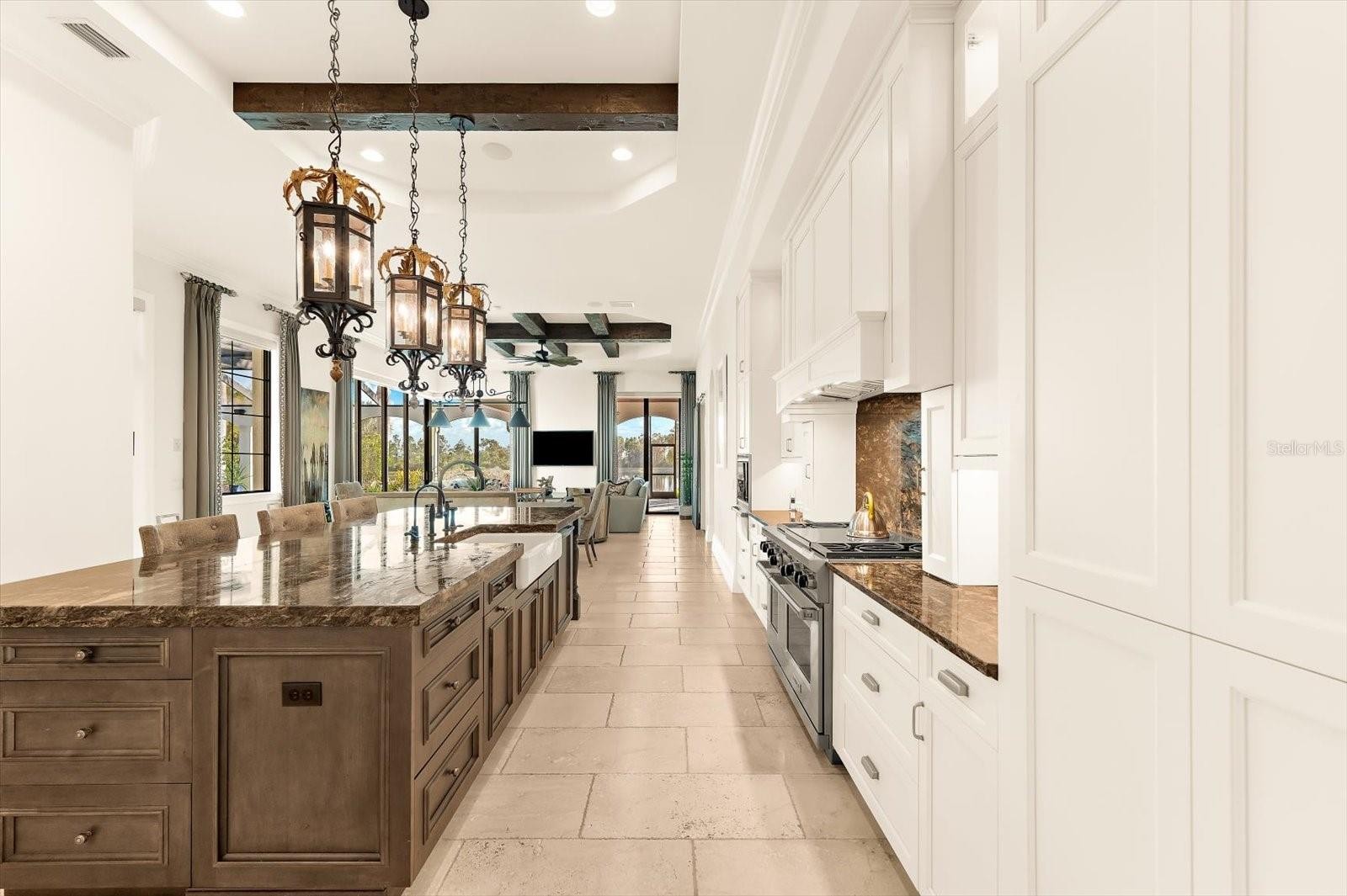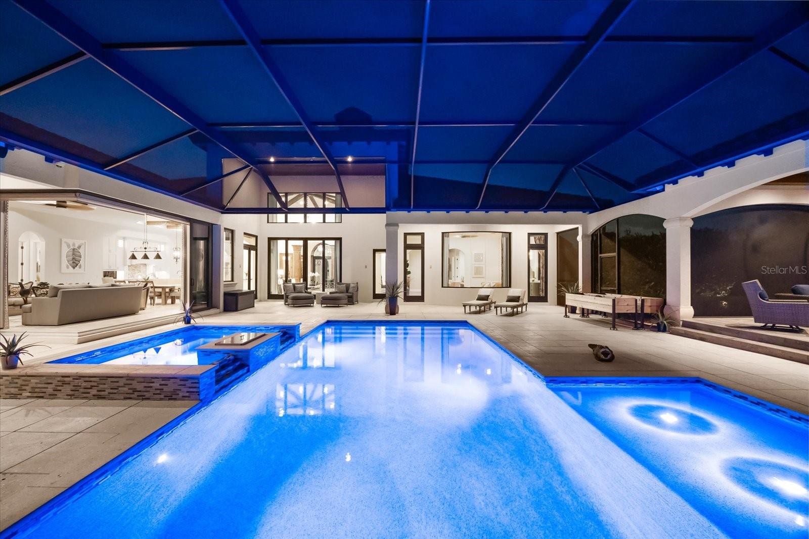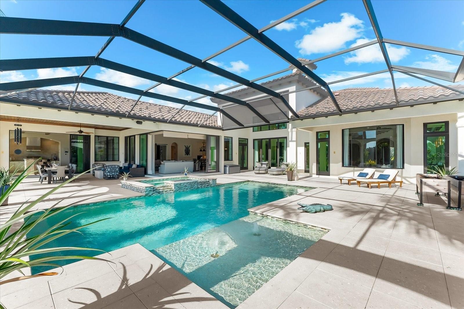 A home like no other, this one-of-a-kind John Cannon estate embodies the art of luxury living in The Concession, one of Lakewood Ranch’s most exclusive gated communities. Set on 1.3 acres of peaceful preserve and water views, this residence blends architectural integrity with thoughtful design, creating an experience that feels both refined and welcoming from the moment you arrive. A grand circular drive leads to double entry doors and a private courtyard with its own fireplace, setting the tone for what awaits inside. Once through the doors, every detail reveals craftsmanship and character; beautiful wood flooring, travertine, and wood accent beams spanning the family room, kitchen, living room, and bonus room. The living room’s statement stone fireplace serves as a dramatic focal point, balancing scale and sophistication. While the formal dining room, adorned with a mica-flecked ceiling, is an experience of its own ideal for intimate evenings or memorable gatherings. At the heart of the home, the gourmet kitchen is a chef’s dream, offering Sub-Zero and Wolf appliances, an oversized entertaining island, extensive counter and cabinet space, and a walk-in pantry designed for function and style. Nearby, a climate-controlled wine storage room serves as a striking architectural statement, showcasing your collection with sophistication. The primary suite is a true sanctuary, featuring two custom walk-in closets and a spa-inspired bath designed for serenity—with dual vanities, a freestanding soaking tub, a walk-in shower, and a tranquil waterfall feature that enhances the sense of relaxation. Two additional ensuite bedrooms provide comfort and privacy, while the spacious fourth bedroom is part of an attached casita complete with kitchenette, private entrance, and lanai access, creating the perfect private quarters for guests, extended family, or live-in arrangements. Designed for effortless indoor-outdoor living, the home includes smart home automation, Sonos audio, a richly appointed office, home gym, and a versatile game or bonus room with bar and indoor/outdoor grill area. Expansive sliders open to an outdoor living area defined by cypress-paneled ceilings and graceful architectural columns, creating the feeling of a true extension of the interior spaces, a seamless blend of design and lifestyle that makes this a home like no other. Outdoors, the experience becomes truly unforgettable. The gazebo offers a place to unwind in the evenings before the fireplace, as the glow of firelight reflects across the custom-designed pool with fire features, sun shelves, and a large spa. Framed by serene preserve and lake views, this thoughtfully designed retreat balances beauty, privacy, and sophistication in perfect harmony. The Concession is an elevated luxury neighborhood that is quiet, private, and surrounded by natural beauty, yet just moments from the best of Lakewood Ranch and Sarasota. Residents enjoy proximity to premier shopping, dining, and community events, as well as easy access to Florida’s Gulf Coast beaches, top-rated airports, UTC, and downtown Sarasota. A showcase of elegance, craftsmanship, and livable luxury, this residence redefines what it means to live beautifully in The Concession.