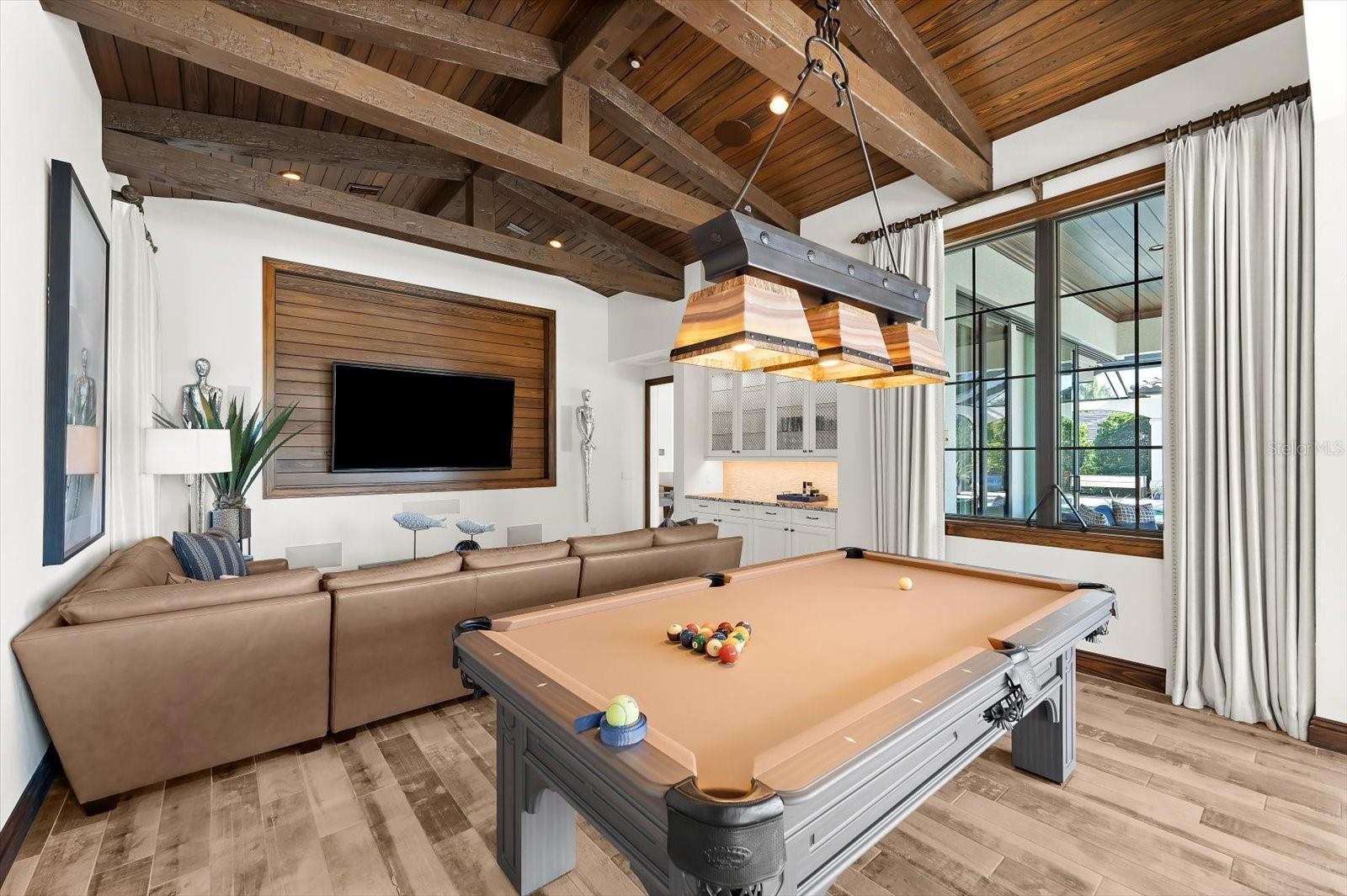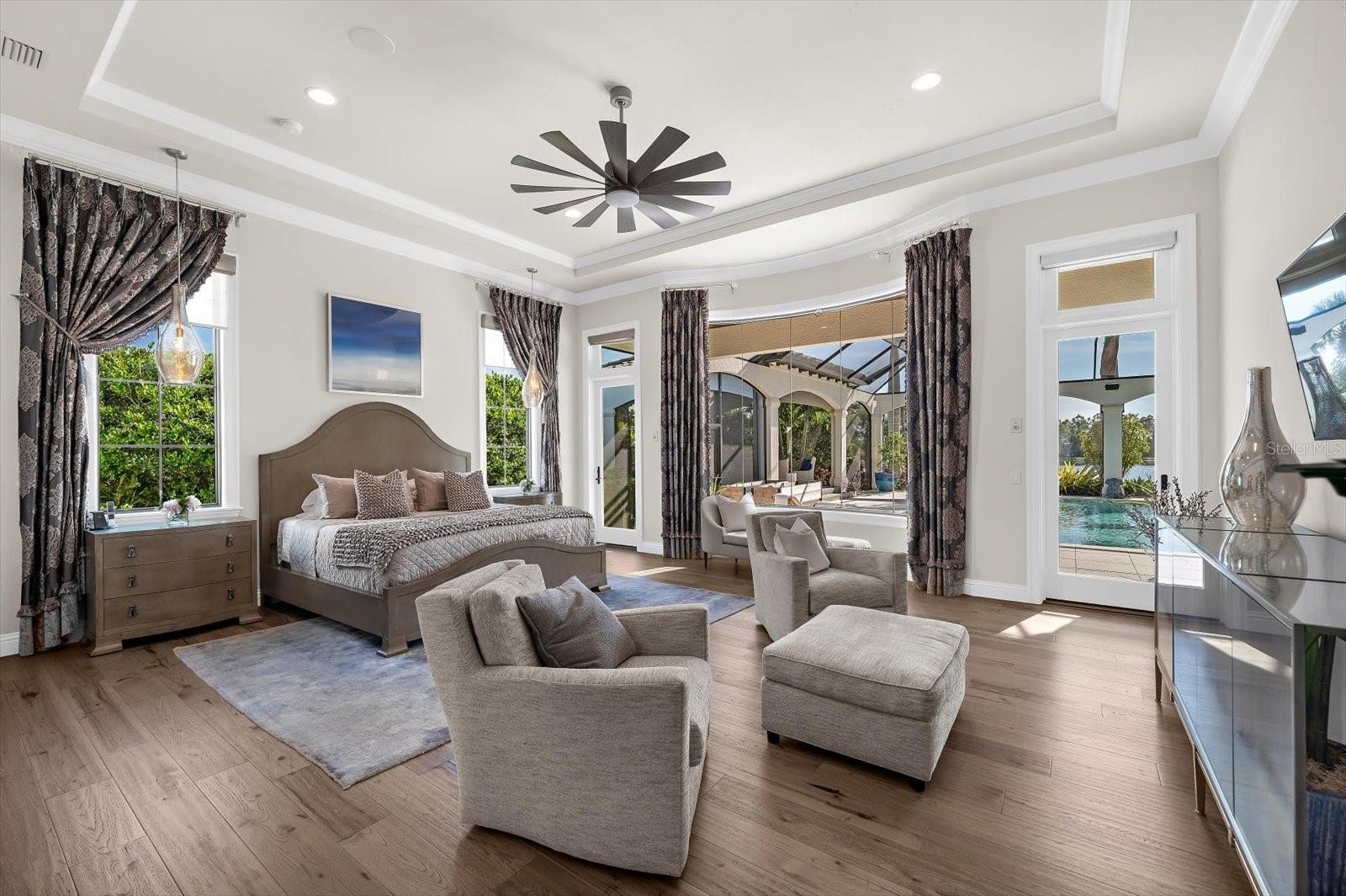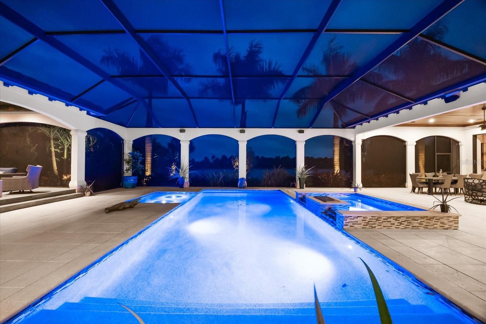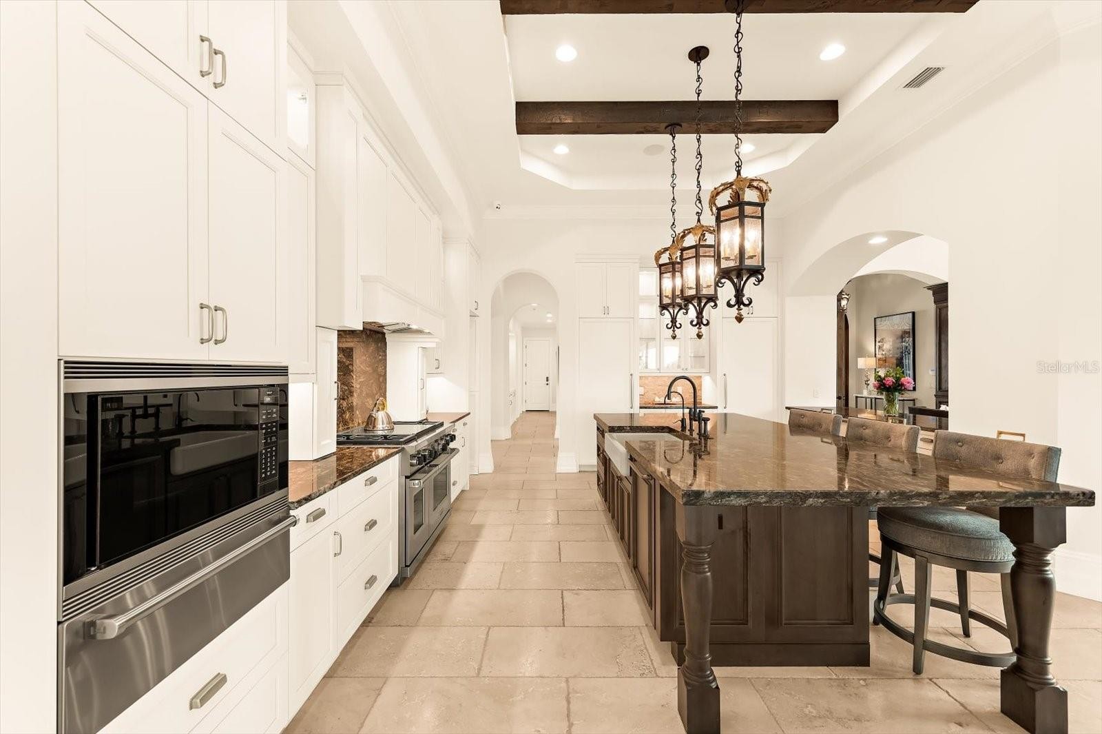 A home like no other, this one-of-a-kind John Cannon estate embodies the art of luxury living in The Concession, one of Lakewood Ranch’s most exclusive gated communities. Set on 1.3 acres of peaceful preserve and water views, this residence blends architectural integrity with thoughtful design, creating an experience that feels both refined and welcoming from the moment you arrive. A grand circular drive leads to double entry doors and a private courtyard with its own fireplace, setting the tone for what awaits inside. Once through the doors, every detail reveals craftsmanship and character; beautiful wood flooring, travertine, and wood accent beams spanning the family room, kitchen, living room, and bonus room. The living room’s statement stone fireplace serves as a dramatic focal point, balancing scale and sophistication. While the formal dining room, adorned with a mica-flecked ceiling, is an experience of its own ideal for intimate evenings or memorable gatherings. At the heart of the home, the gourmet kitchen is a chef’s dream, offering Sub-Zero and Wolf appliances, an oversized entertaining island, extensive counter and cabinet space, and a walk-in pantry designed for function and style. Nearby, a climate-controlled wine storage room serves as a striking architectural statement, showcasing your collection with sophistication. The primary suite is a true sanctuary, featuring two custom walk-in closets and a spa-inspired bath designed for serenity—with dual vanities, a freestanding soaking tub, a walk-in shower, and a tranquil waterfall feature that enhances the sense of relaxation. Two additional ensuite bedrooms provide comfort and privacy, while the spacious fourth bedroom is part of an attached casita complete with kitchenette, private entrance, and lanai access, creating the perfect private quarters for guests, extended family, or live-in arrangements. Designed for effortless indoor-outdoor living, the home includes smart home automation, Sonos audio, a richly appointed office, home gym, and a versatile game or bonus room with bar and indoor/outdoor grill area. Expansive sliders open to an outdoor living area defined by cypress-paneled ceilings and graceful architectural columns, creating the feeling of a true extension of the interior spaces, a seamless blend of design and lifestyle that makes this a home like no other. Outdoors, the experience becomes truly unforgettable. The gazebo offers a place to unwind in the evenings before the fireplace, as the glow of firelight reflects across the custom-designed pool with fire features, sun shelves, and a large spa. Framed by serene preserve and lake views, this thoughtfully designed retreat balances beauty, privacy, and sophistication in perfect harmony. The Concession is an elevated luxury neighborhood that is quiet, private, and surrounded by natural beauty, yet just moments from the best of Lakewood Ranch and Sarasota. Residents enjoy proximity to premier shopping, dining, and community events, as well as easy access to Florida’s Gulf Coast beaches, top-rated airports, UTC, and downtown Sarasota. A showcase of elegance, craftsmanship, and livable luxury, this residence redefines what it means to live beautifully in The Concession.