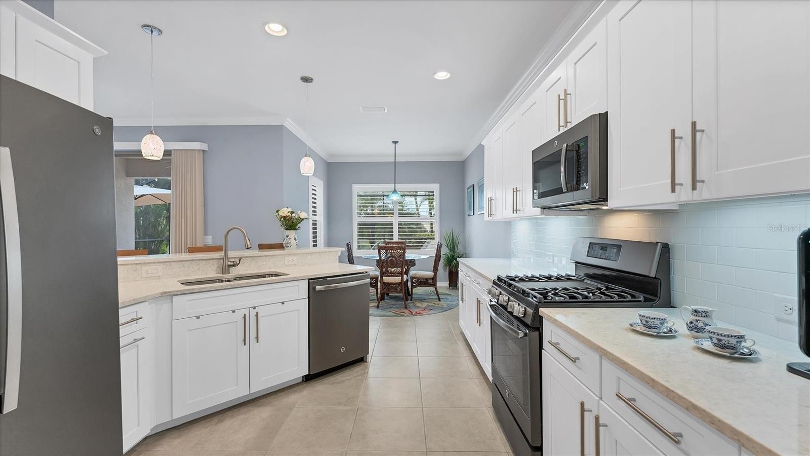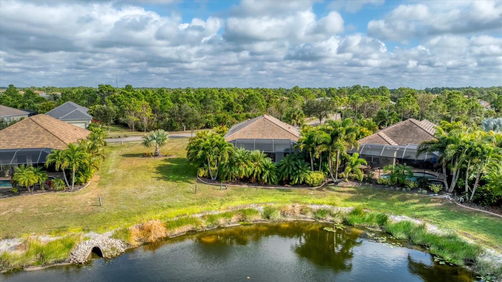 This luxurious lakefront pool home offers an unparalleled living experience, on an oversized lot with generous easements providing ample space and privacy on a peaceful lakefront setting. The exterior boasts a seamless rain gutter system, designer coach lighting and concrete landscape curbing, enhancing its curb appeal. For peace of mind, the residence is equipped with motorized Storm Smart hurricane shutters on the lanai and manual slide-in screens on the windows, protecting your investment and ensuring safety during inclement weather. Additionally, a whole-house Generac Generator provides uninterrupted power. Go inside to discover a meticulously maintained interior featuring tile and hardwood flooring throughout, complemented by elegant plantation shutters and custom blinds. Custom crown molding and wood trim add a touch of sophistication to every room. The den, accessible through French glass doors, offers a private space for work or relaxation. The kitchen has been thoughtfully updated with granite countertops, tile backsplash, resurfaced cabinets, convenient pullout shelves and soft-close drawers, creating a functional and stylish culinary environment. Outdoor living is redefined on this tranquil paver patio with a beautiful heated in-ground saltwater pool and spa, natural gas stub for grilling and screened-in lanai, the ideal space for relaxation or entertaining day in and day out. A sliding pocket door seamlessly connects the interior to the expansive lanai and pool area. Further enhancements include an installed paver walkway and driveway, a whole-house water filtration and softener system, and designer lighting and fans. Custom California closets provide exceptional organization and storage solutions, ensuring a clutter-free and elegant living space. The entire home, inside and out, offers a pristine and move-in-ready condition. In Grand Palm, an amenity rich community offering a full fitness center, activity coordinator, several community pools, pickleball, tennis, clubhouse, and miles of recreational and biking trails. You’re minutes from historic downtown Venice and Interstate 75 making travel plans nice and easy. Living the life, you’ve earned can be more than just a dream, so schedule your private showing today!