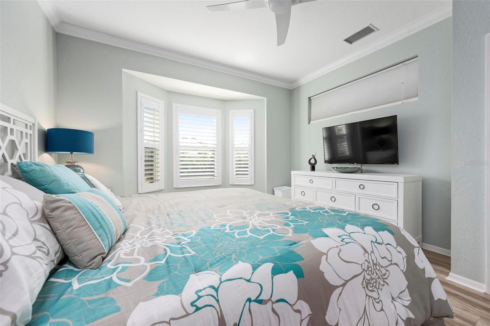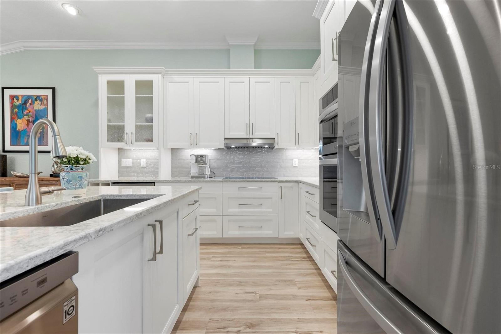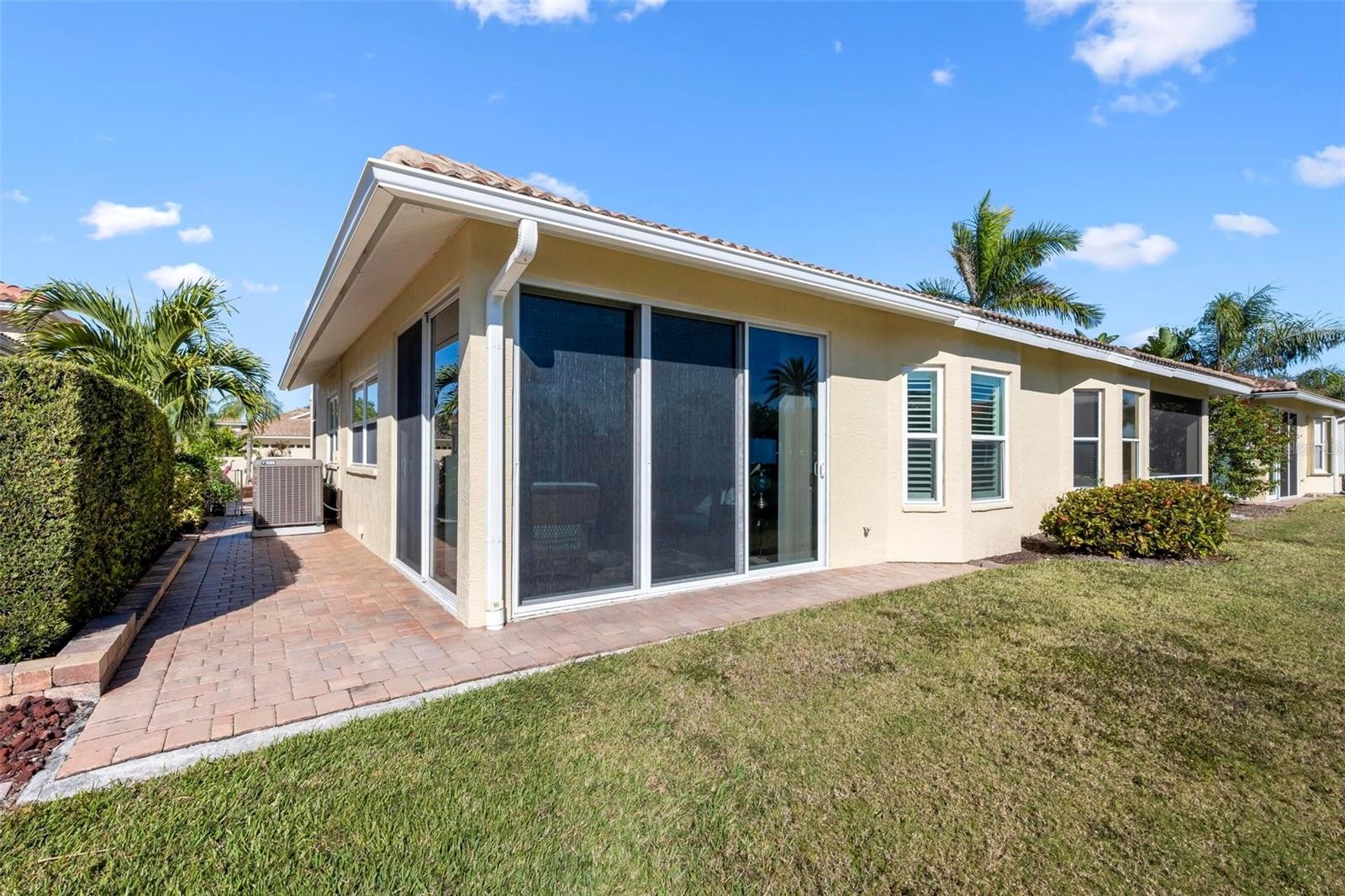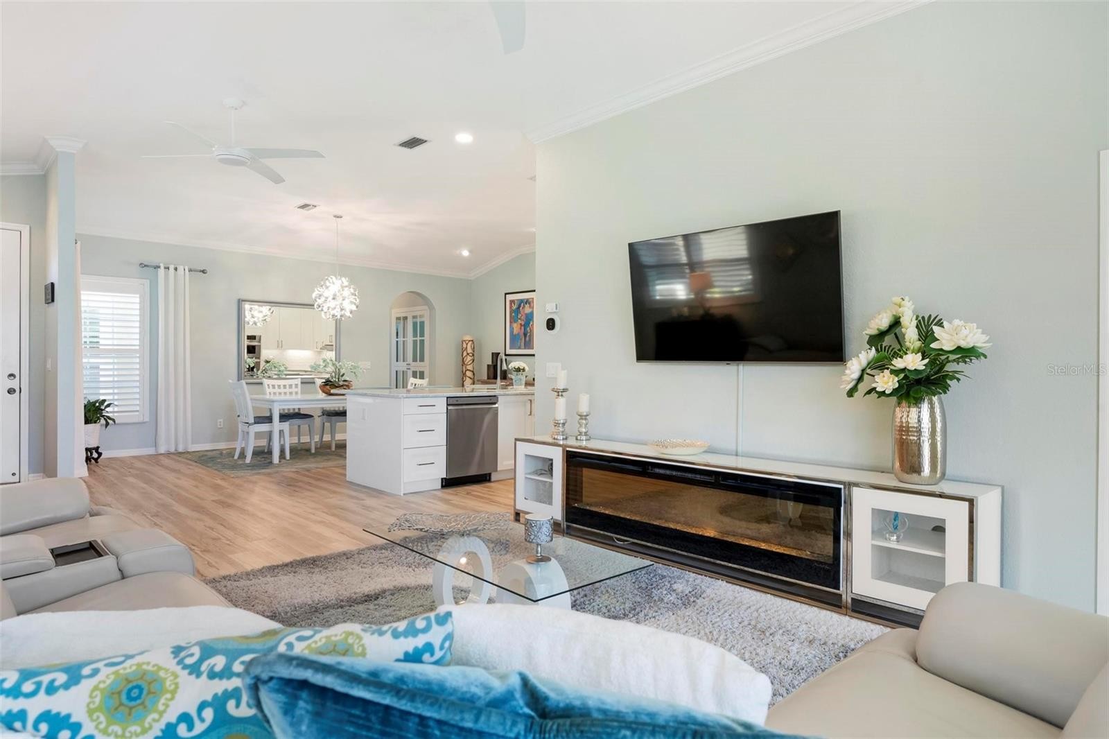 Exquisitely renovated 2 bed/2bth villa showcasing tranquil pond views. This impeccable residence features all new flooring, crown molding, plantation shutters, curated lighting & ceiling fans. The chef kit. is beautifully appointed w/quartz, built in bev. cooler, LG stainless, induction cooktop, soft close cabinet/drawers. upper & lower cab. lighting. perfect for both intimate gatherings & upscale entertaining. A private front courtyard w/sidewalk leading to pond creates a gracious arrival, while the glassed enclosure w/screens and dedicated AC unit offers breathtaking water views. The baths boast spa-like featured tiled showers & quartz vanities. Additional upgrades include New HVAC, All new impact windows & sliders, New water heater. The 2 car garage has electric vehicle charger, new epoxy flooring and ample custom cabinetry. This exceptional Villa delivers sophisticated, low-maintenance living in a serene & picturesque setting. This is an absolute show stopper.